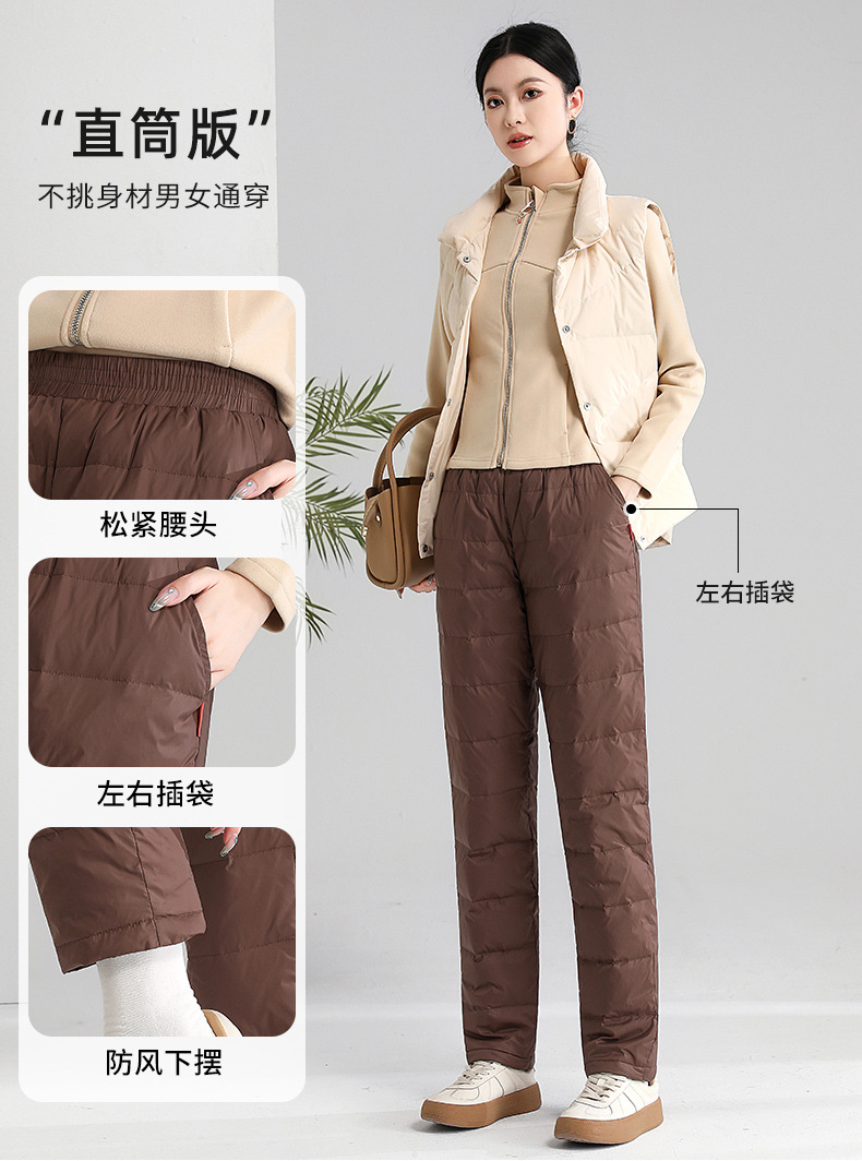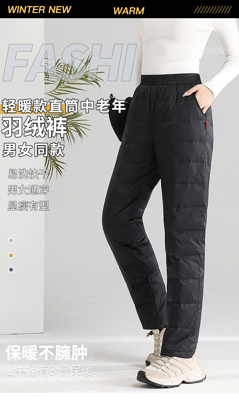 新国标90白鸭绒实拍老年直筒冬季保暖羽绒裤1307