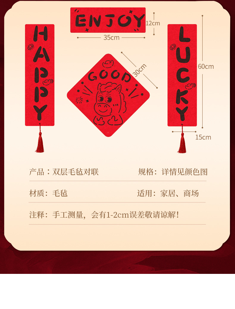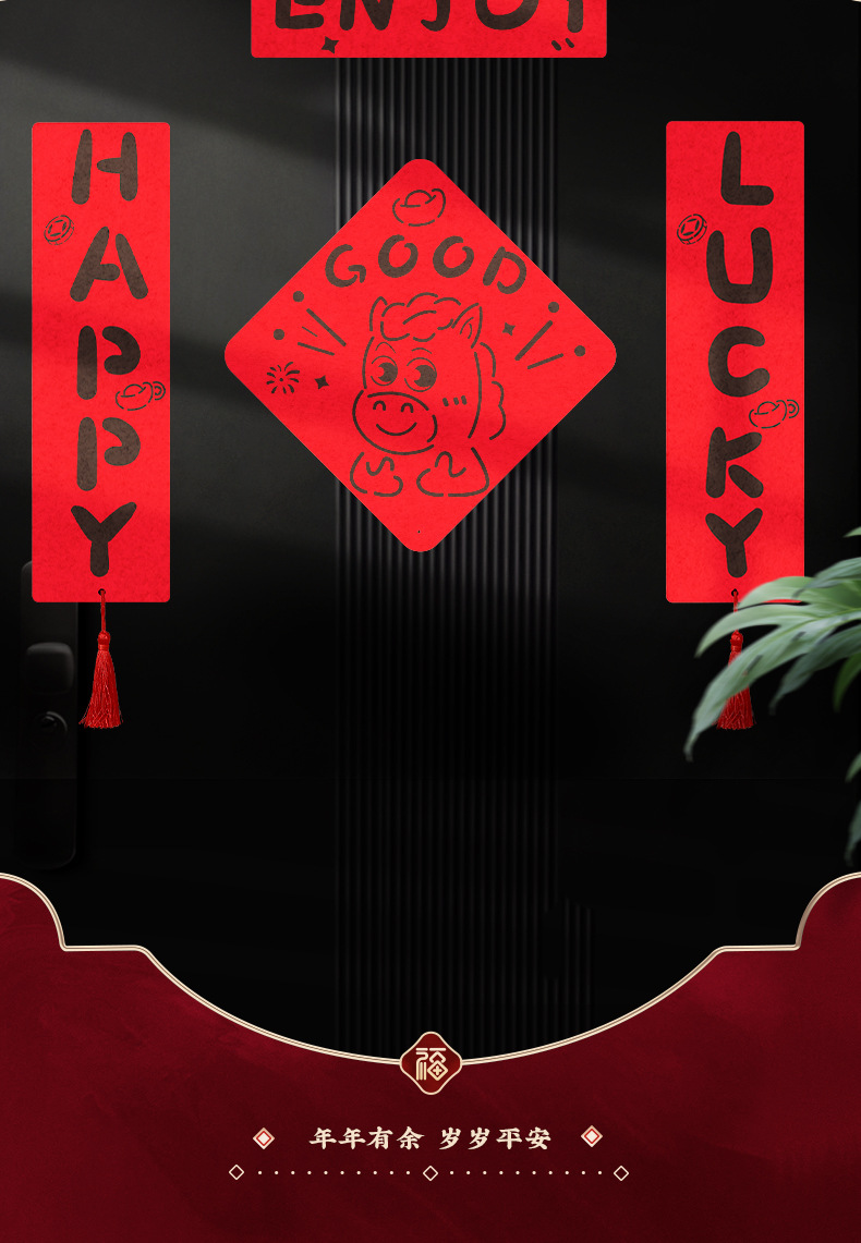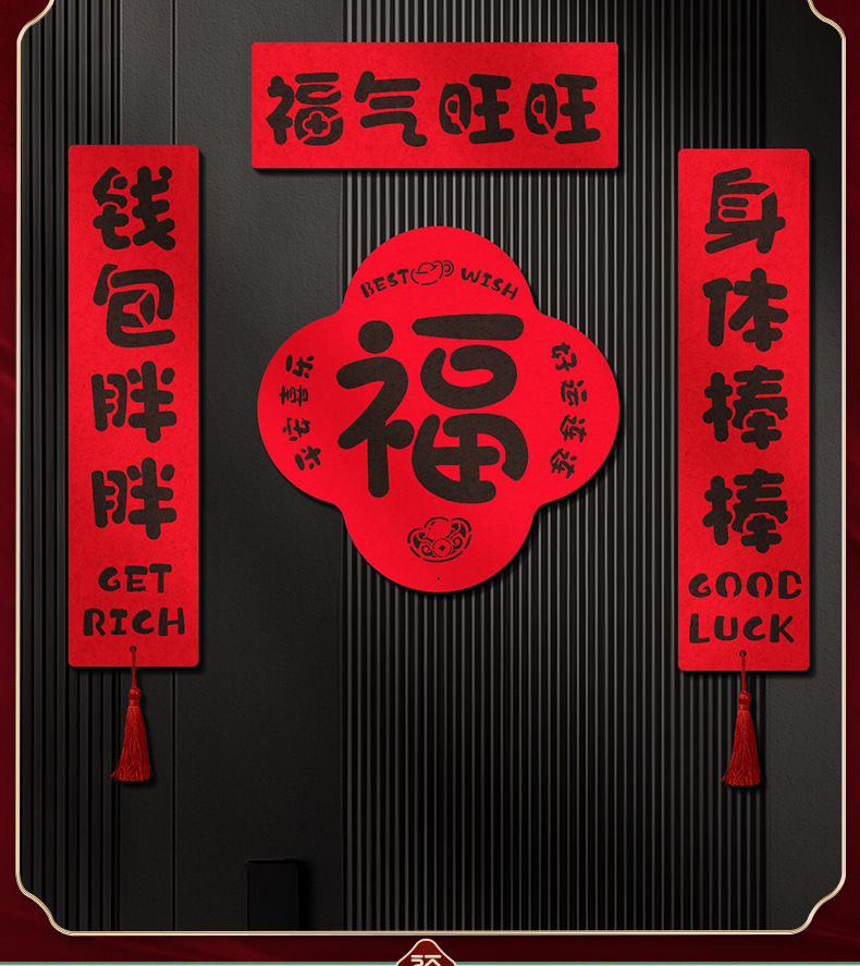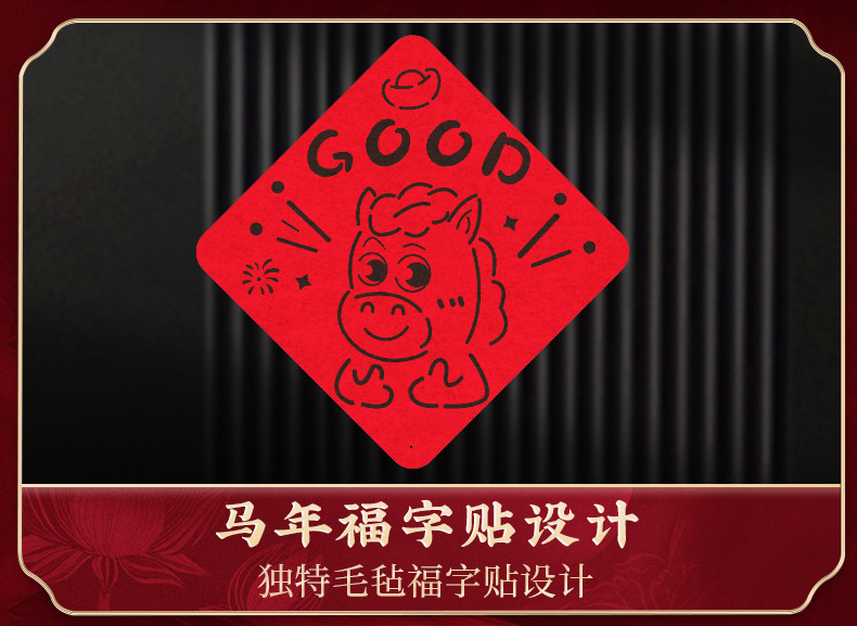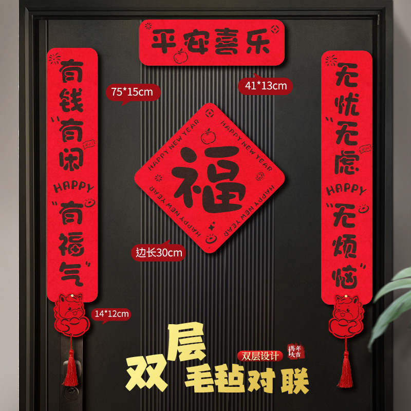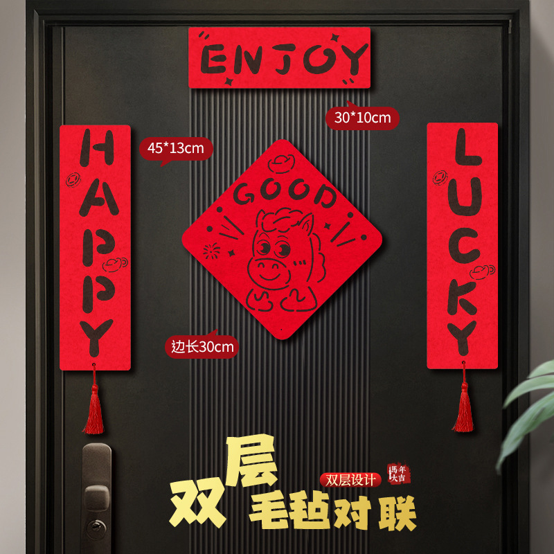 好运爆棚马年对联毛毡2026家用新年磁吸春联搬家入宅立体门贴年货