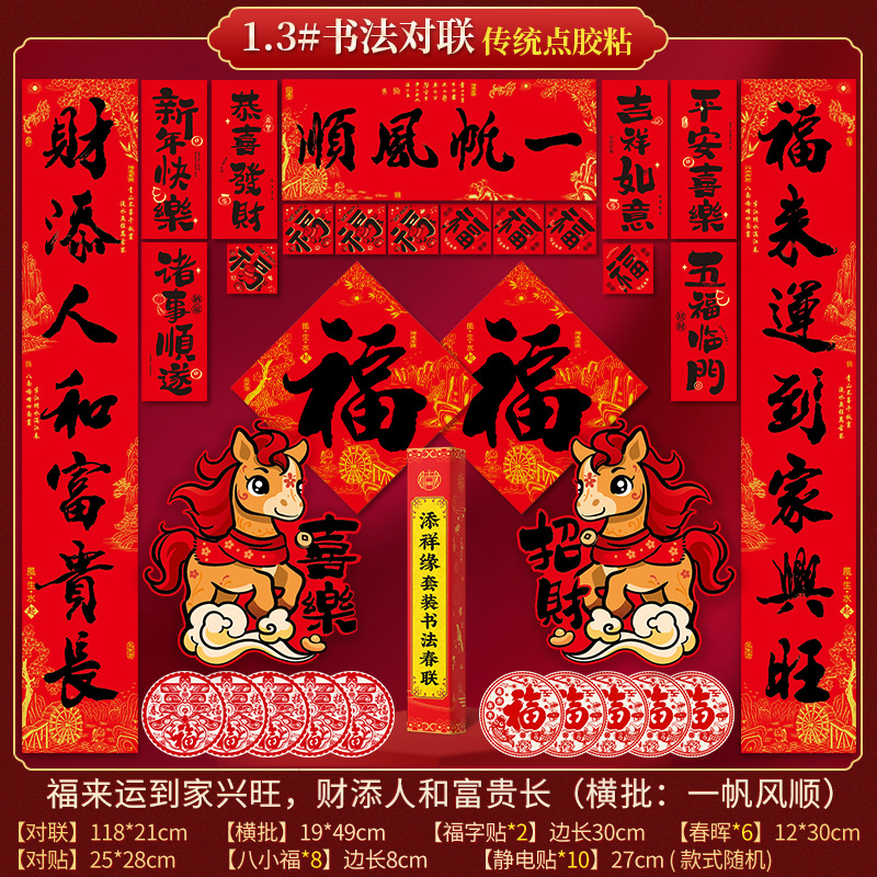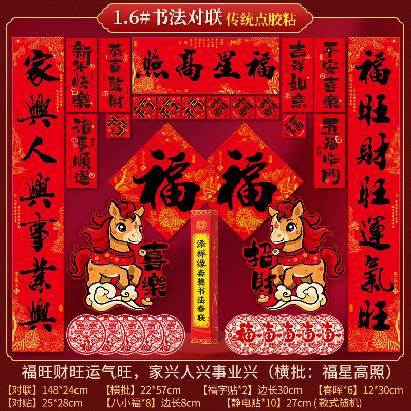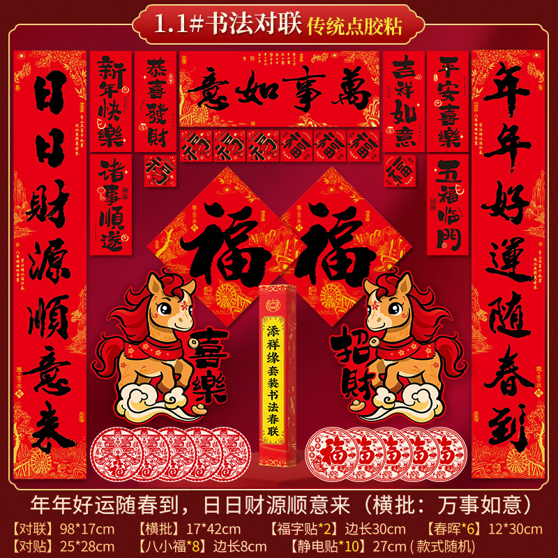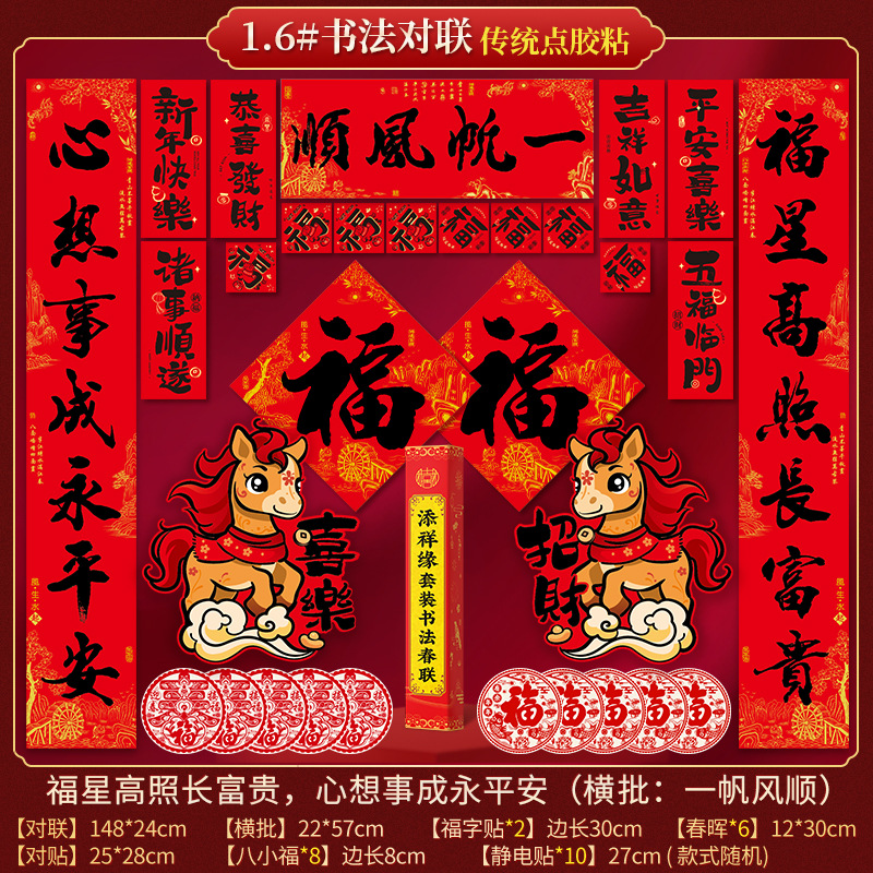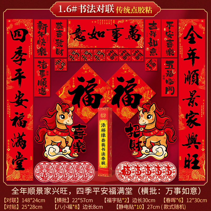 2026马年对联春联批货新款家用黑字书法对贴新年过年春节年货批发
