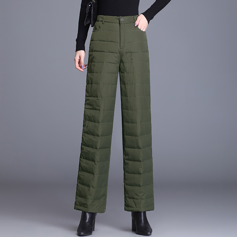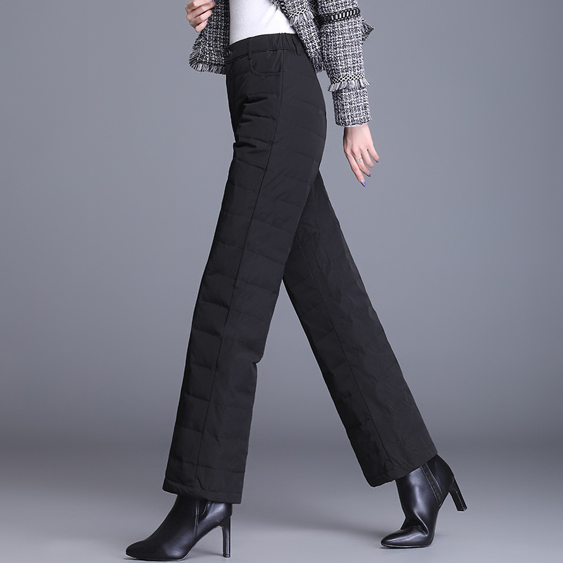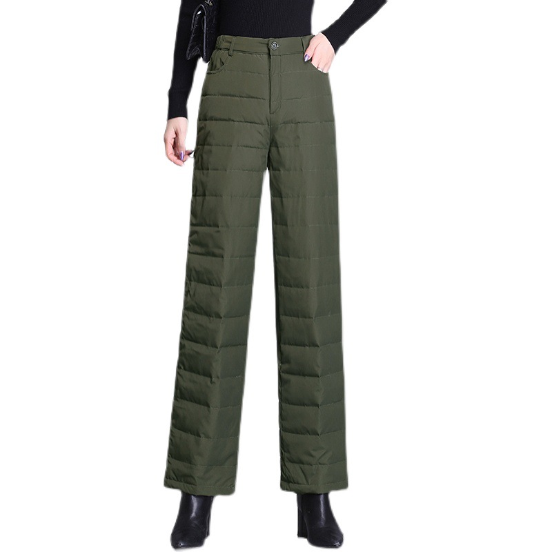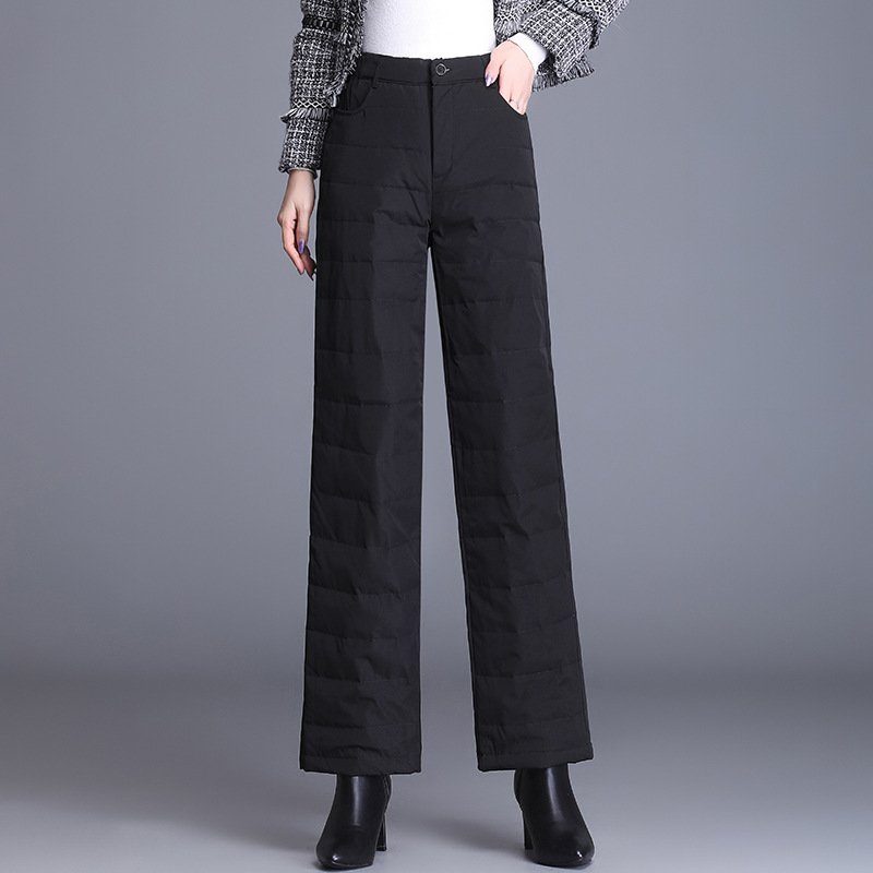 实拍羽绒棉裤女外穿冬季新款宽松加厚保暖大码高腰直筒阔腿裤长裤