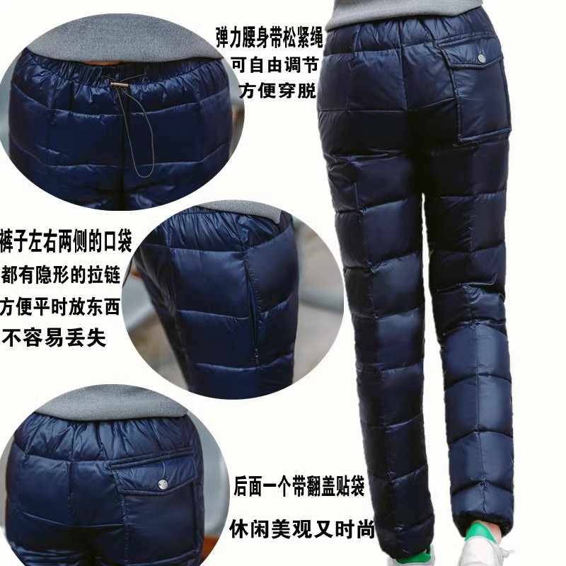 2023秋冬新款羽绒裤男女外穿高腰加厚白鸭绒修身大码保暖羽绒裤子