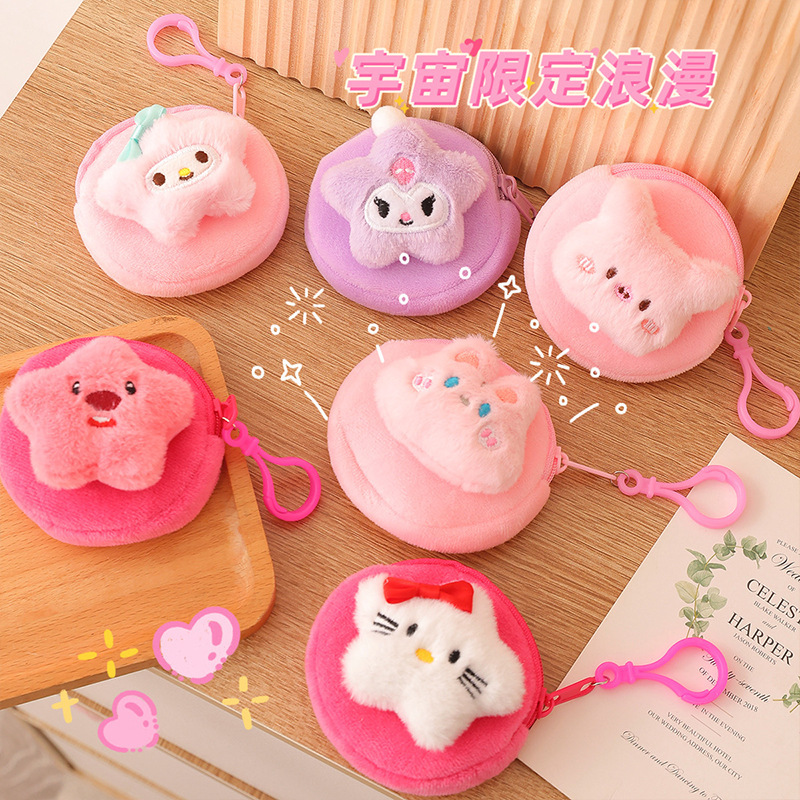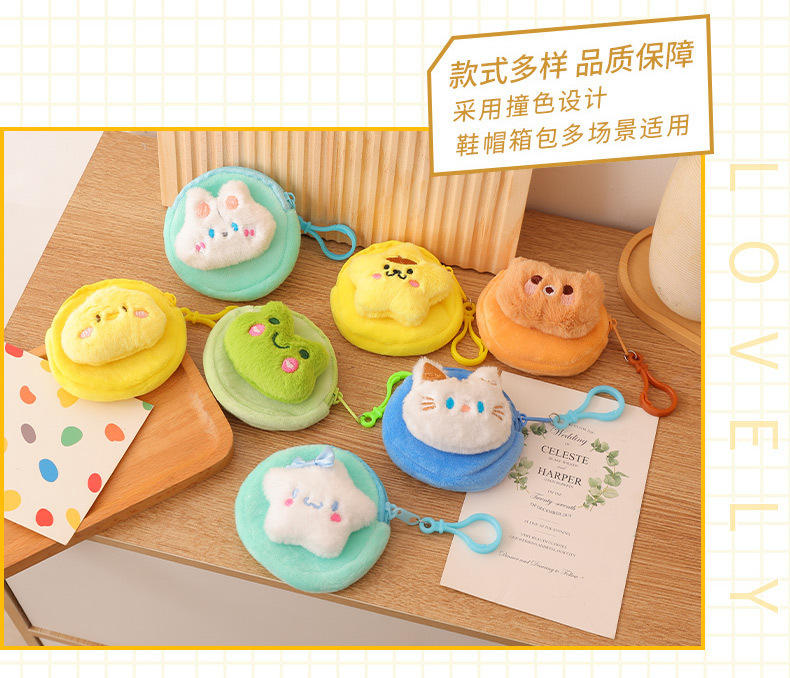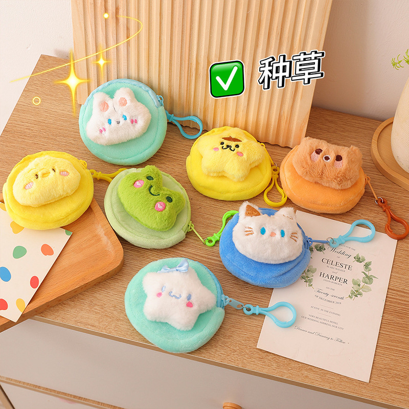 卡通零钱包可爱少女心毛绒可挂包包迷你零钱硬币耳机线收纳包礼物