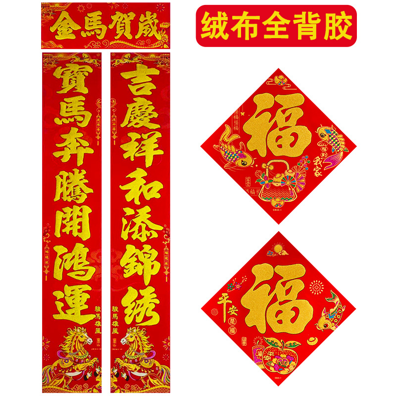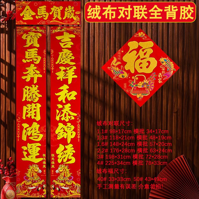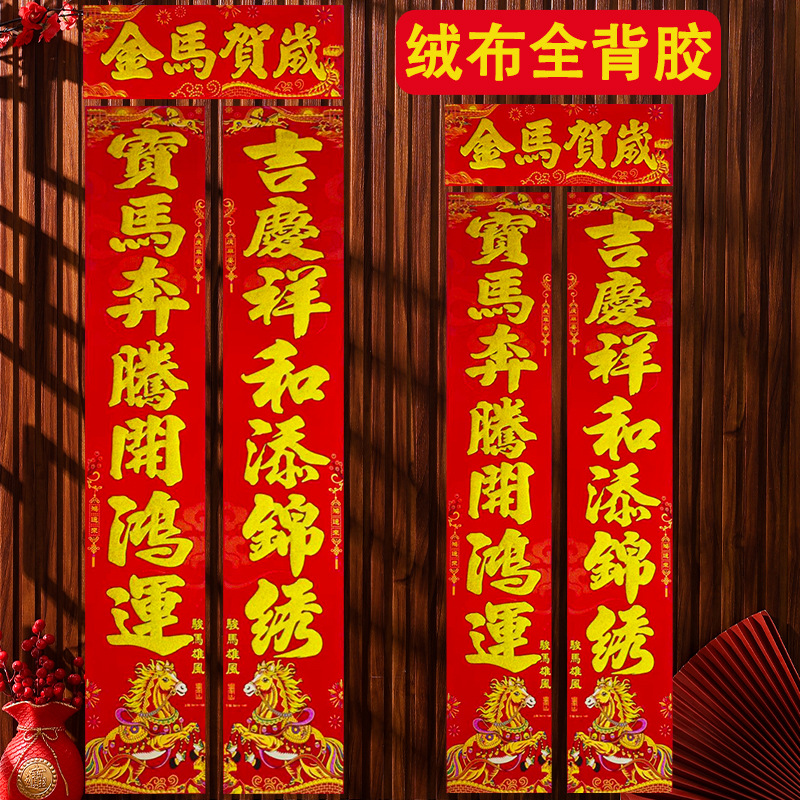 2026马年全背胶绒布对联福字入户门春节过年大门自粘胶绒布春联