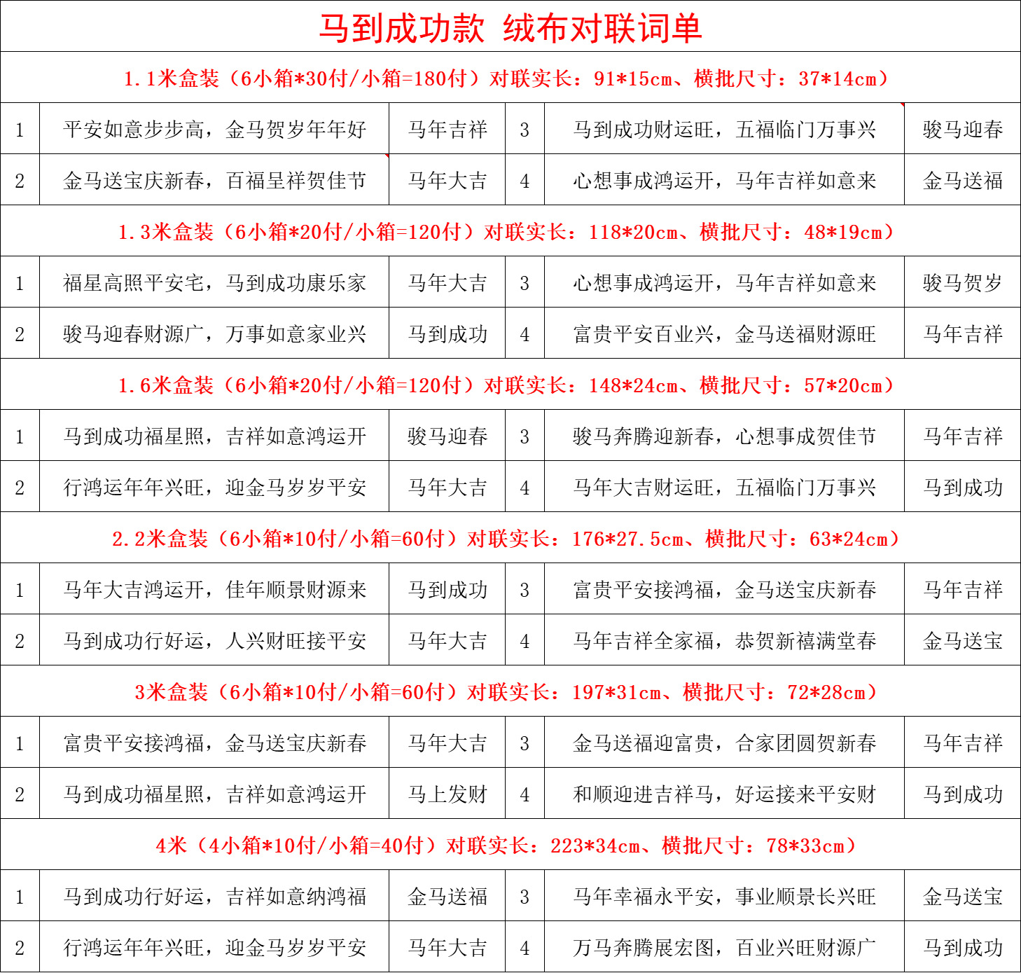 | 加厚(绒布全背胶生肖款)对联1.3# | USD $3.25 | 12120 pair available |