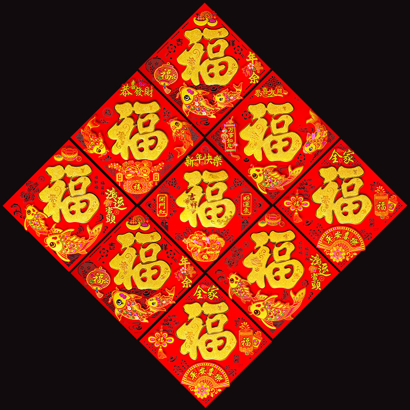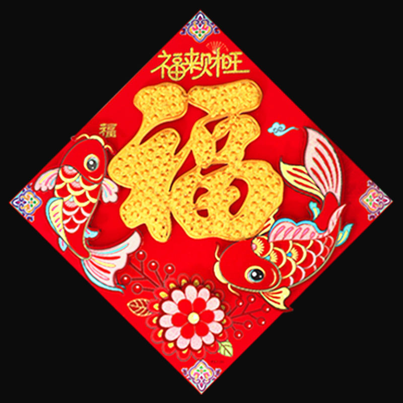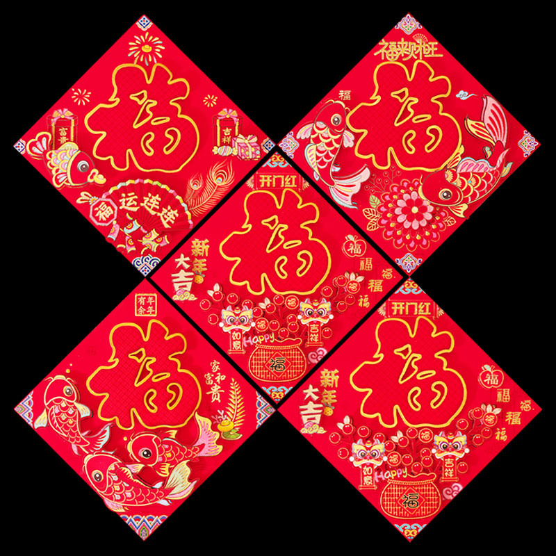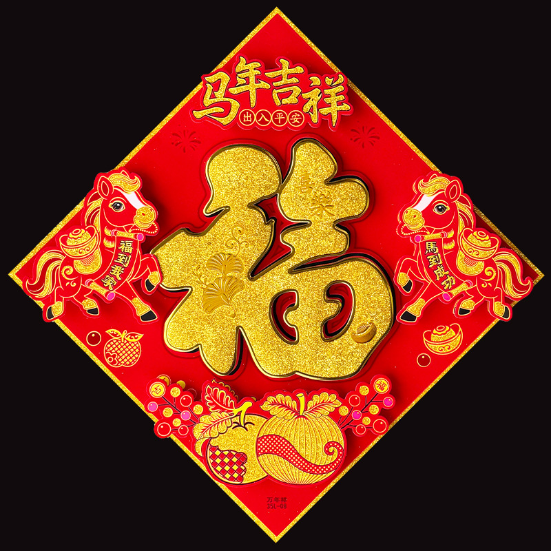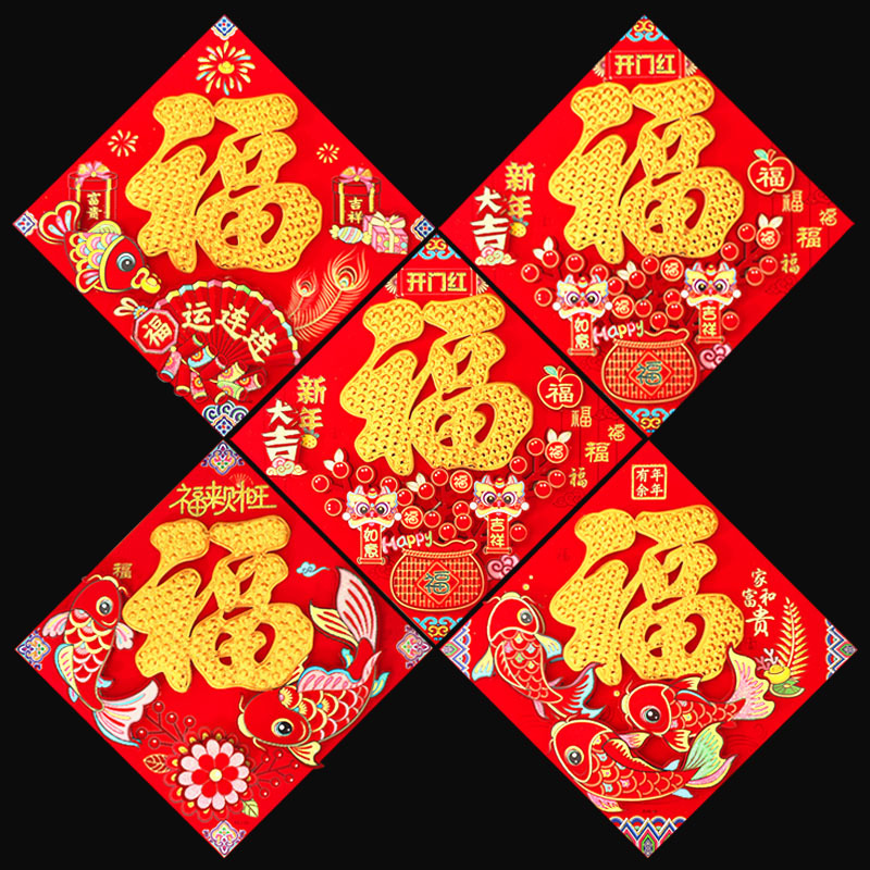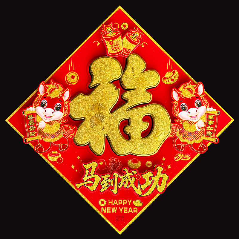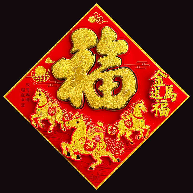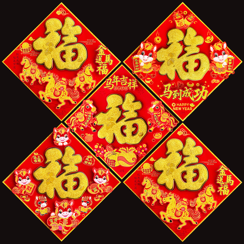 福字2026马年门贴植绒立体福新年春节用品贴纸对联厂家批发福字帖