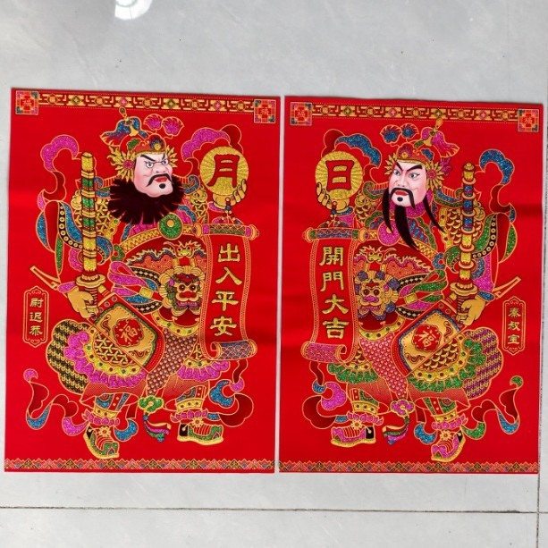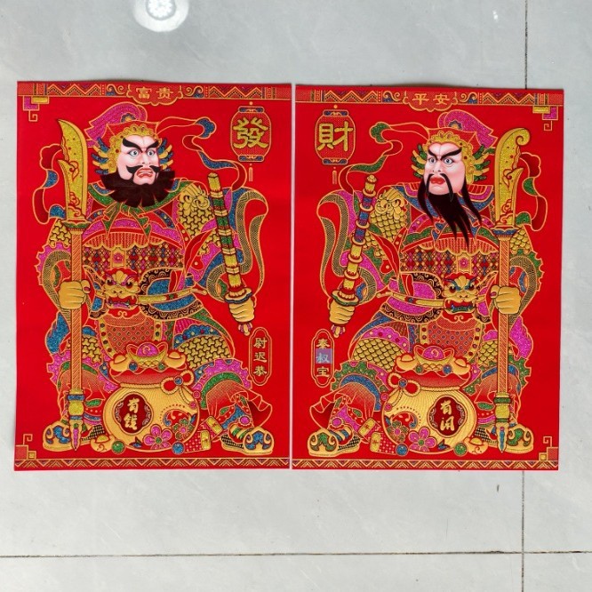 门神 厂家直销四开植绒烫金门神 新年春节门贴财神年货用品批发
