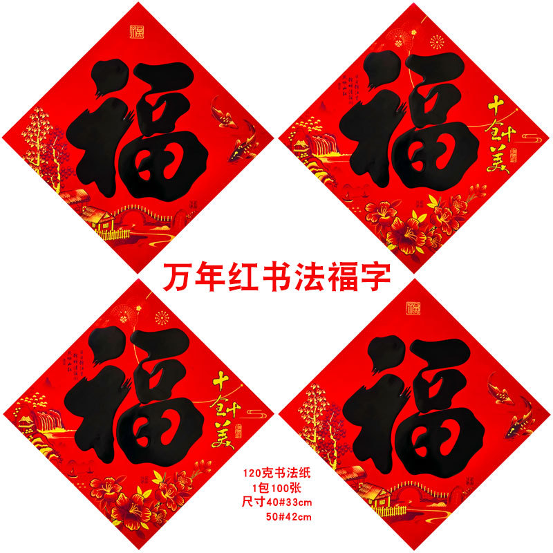 新年万年红书法福字门贴春节平面烫金黑字福字贴大门装饰福贴批发
