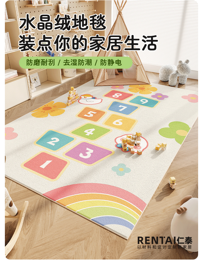 儿童卧室地毯游戏阅读区爬行垫客厅阳台免洗可擦地垫城市交通地毯