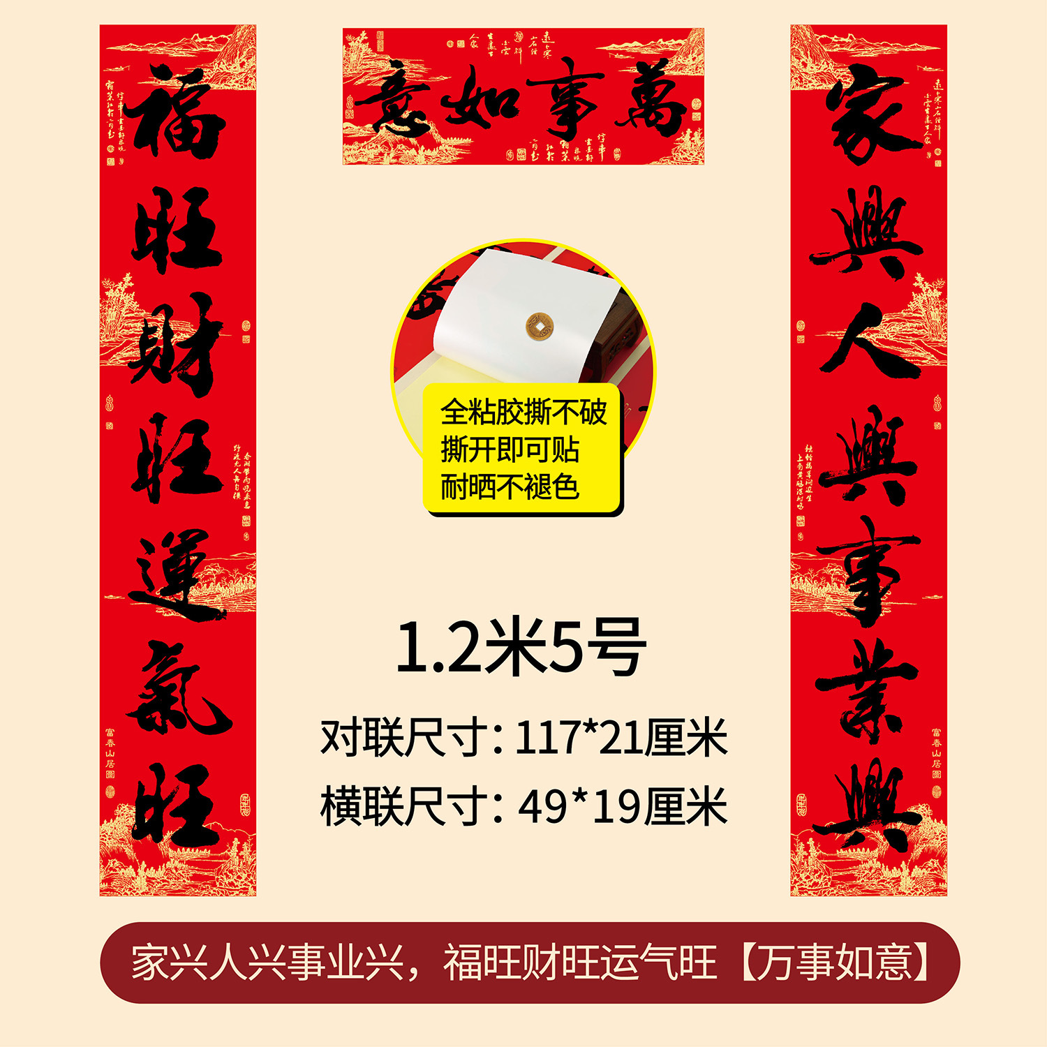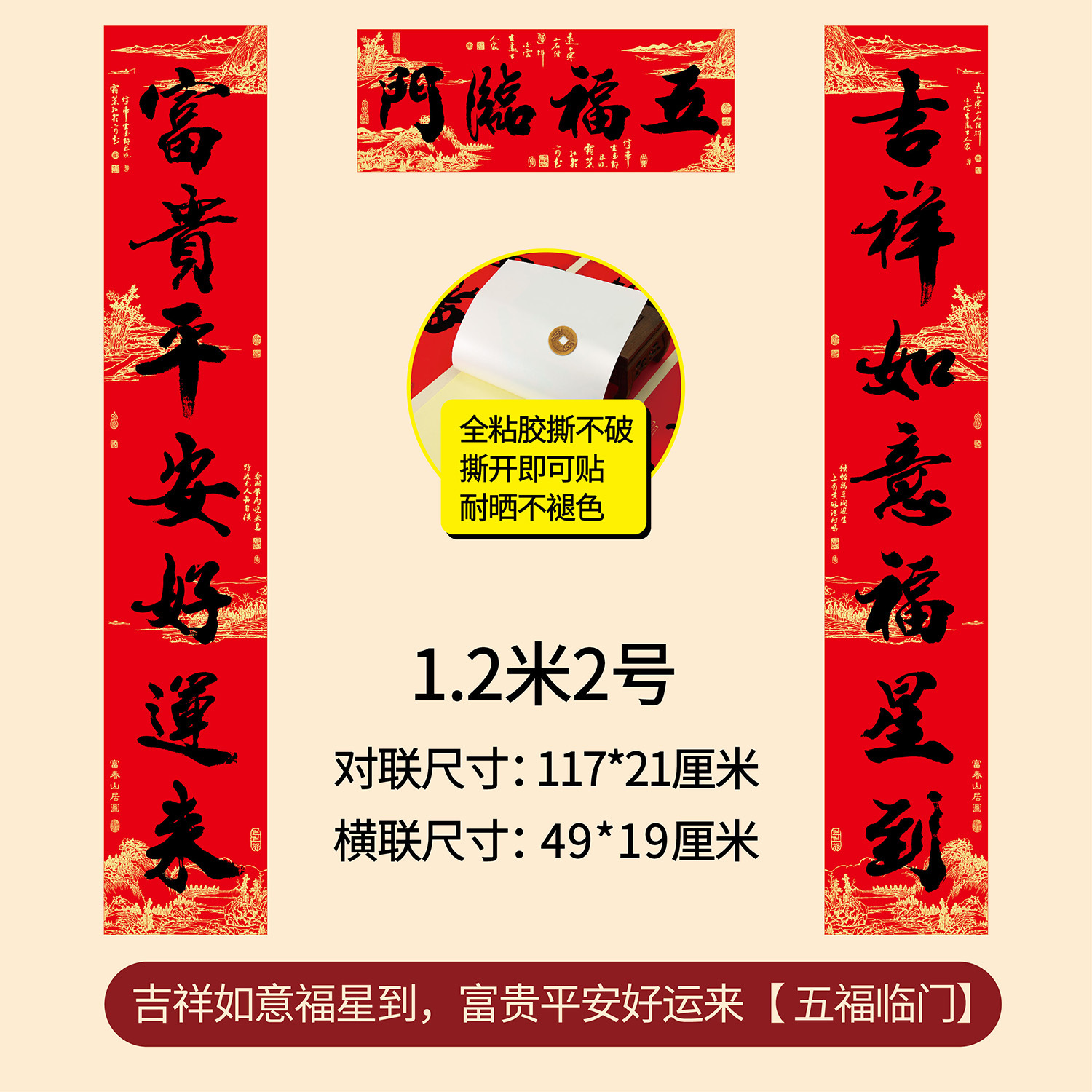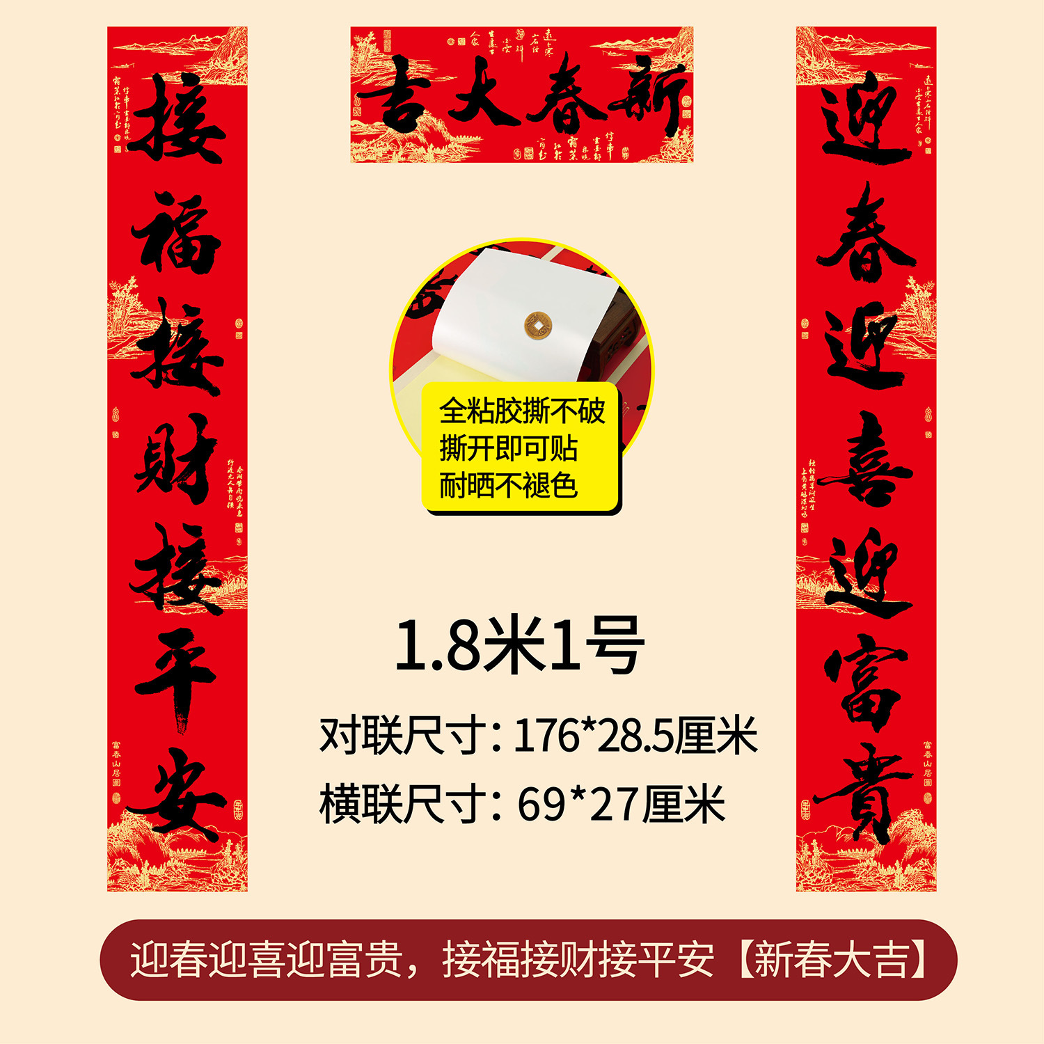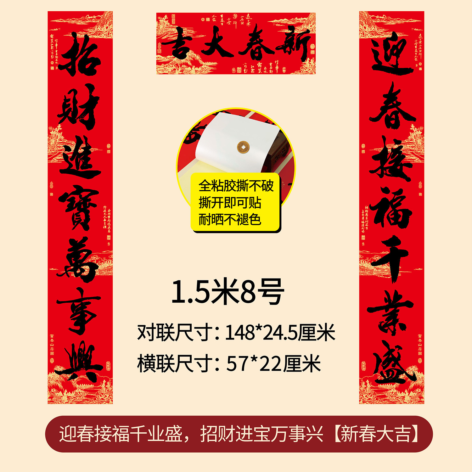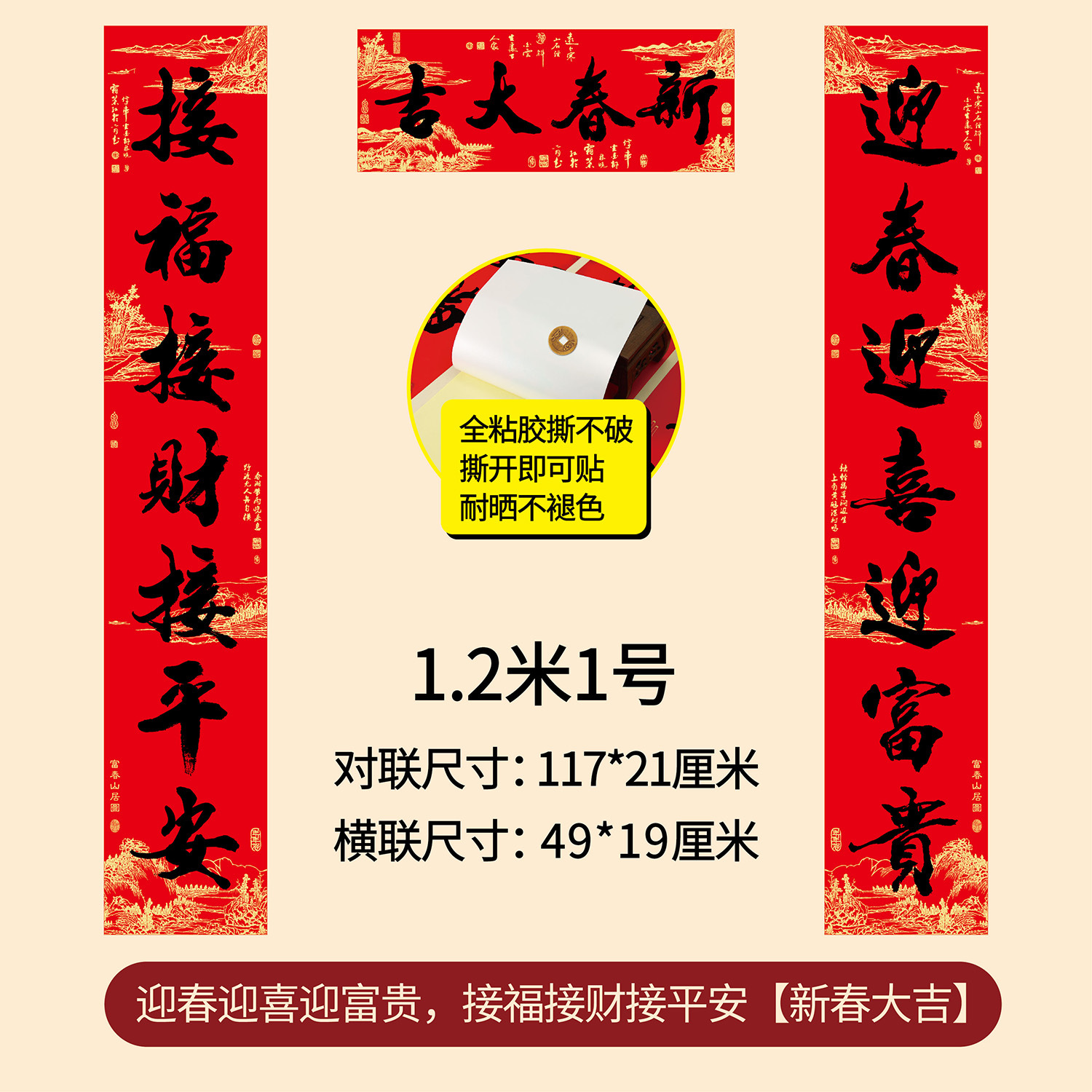 新年春节全年红背胶春联 耐晒不褪色撕不破大门对联厂家年货批发