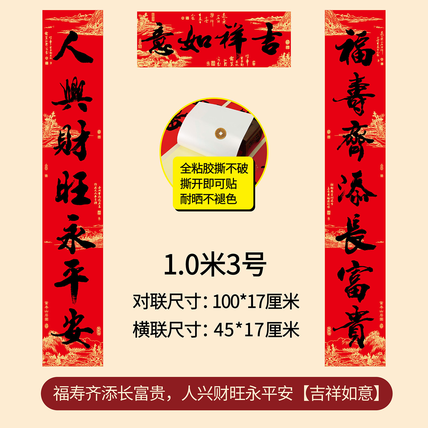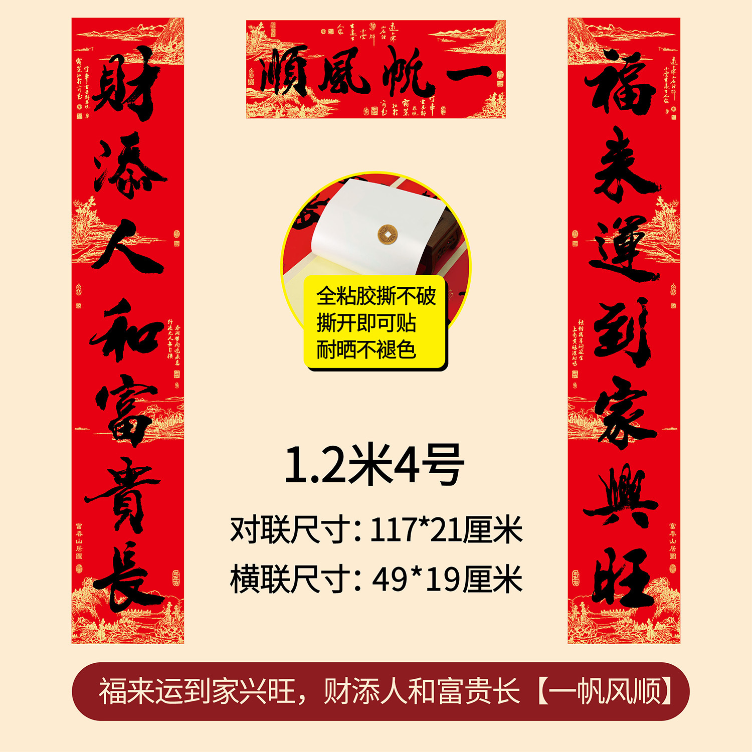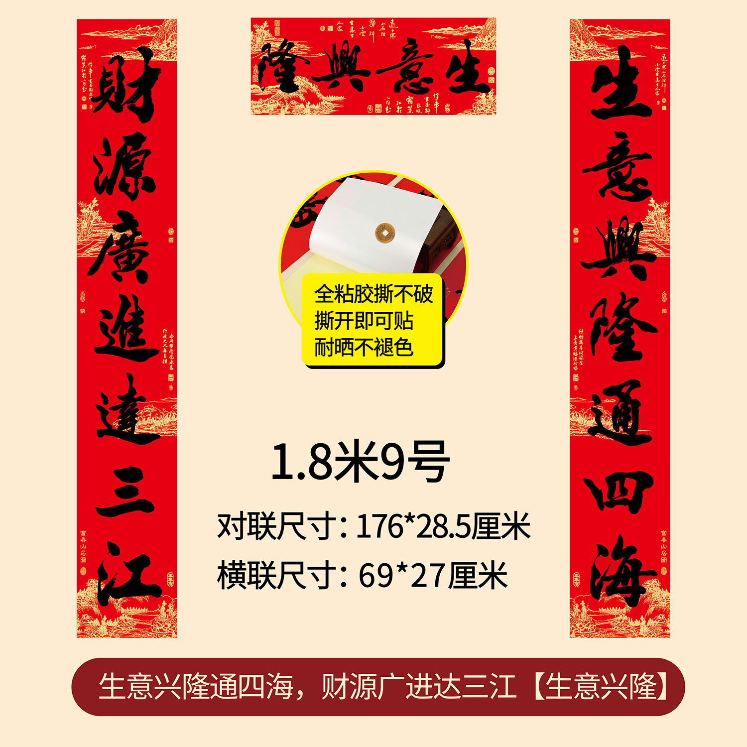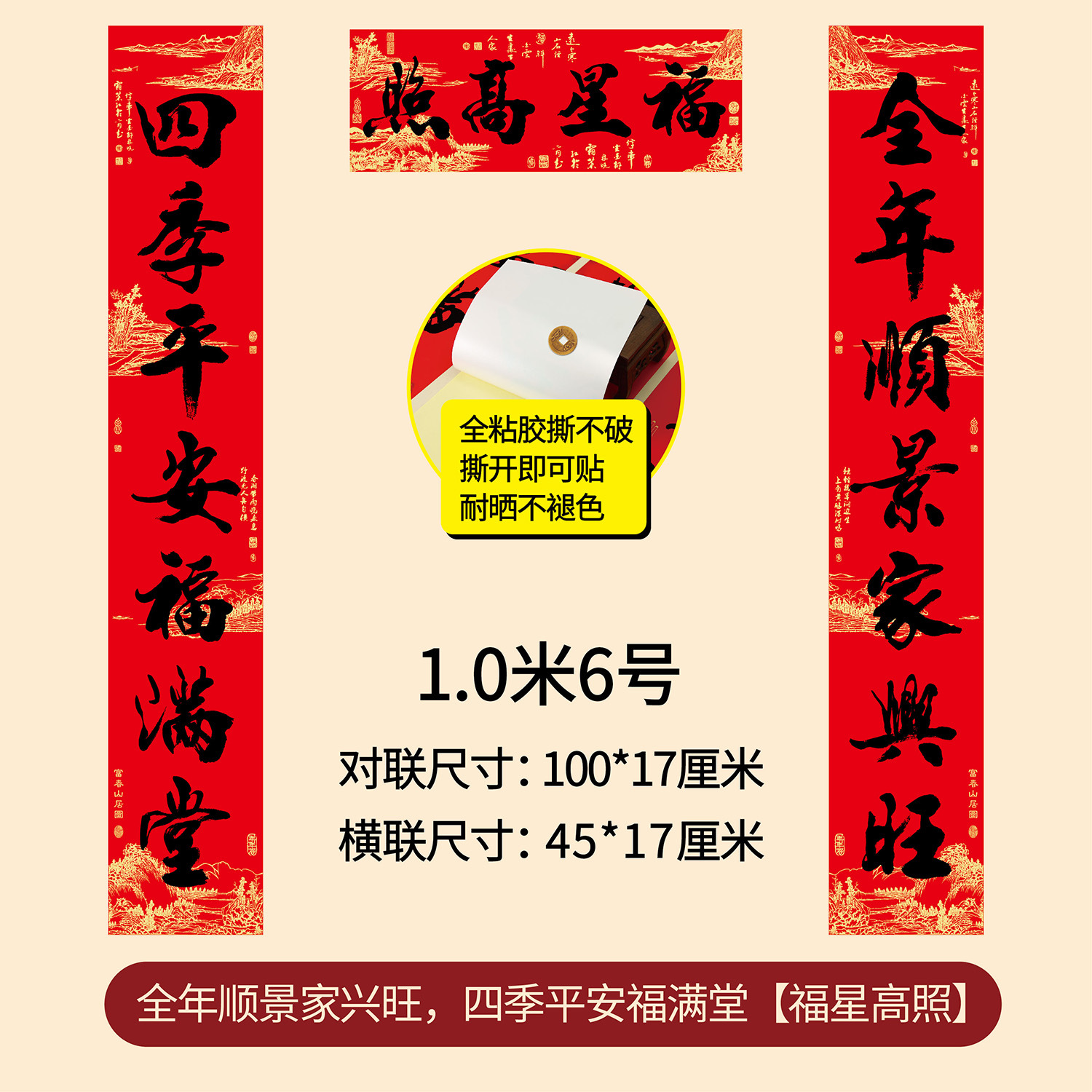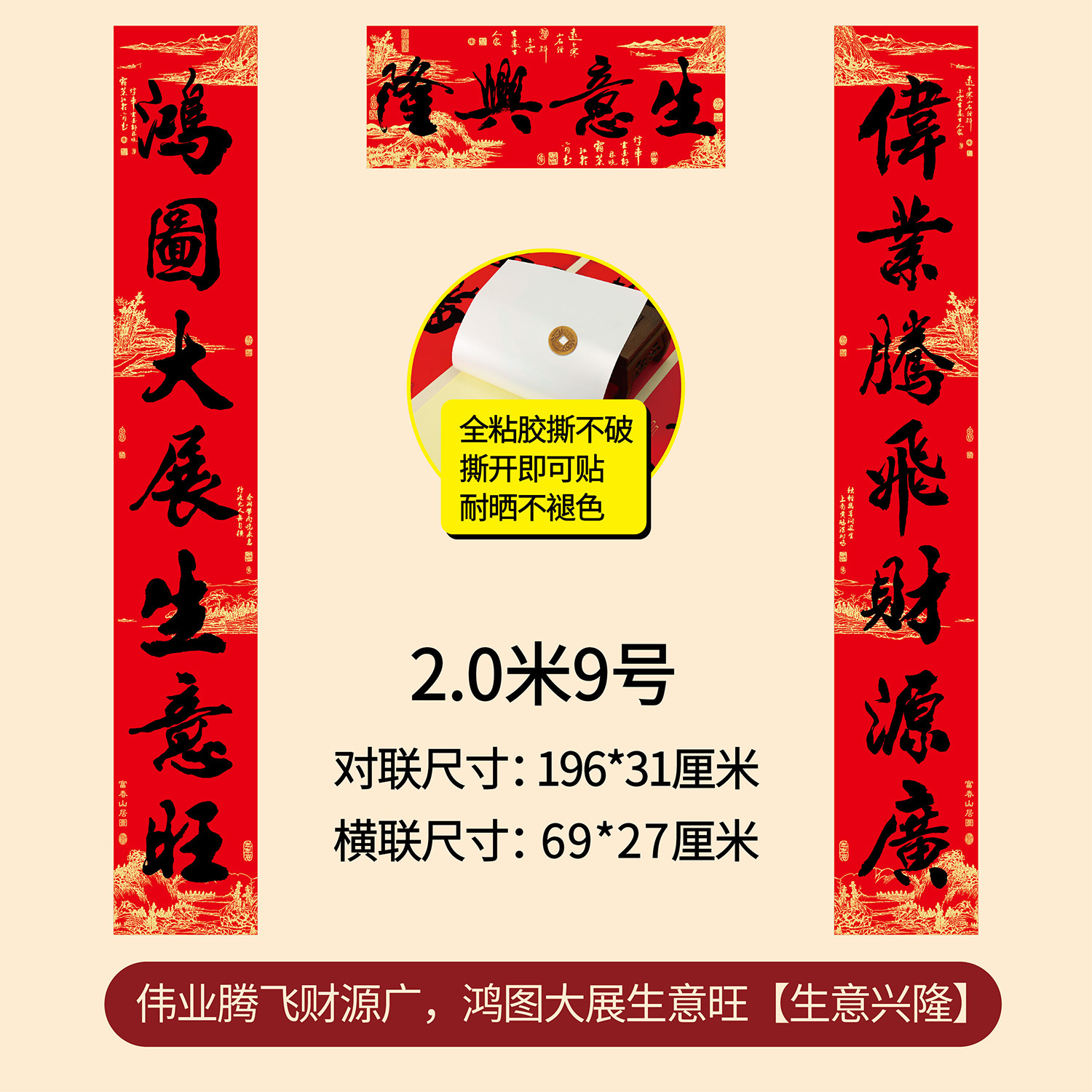 新年春节全年红背胶春联 耐晒不褪色撕不破大门对联厂家年货批发