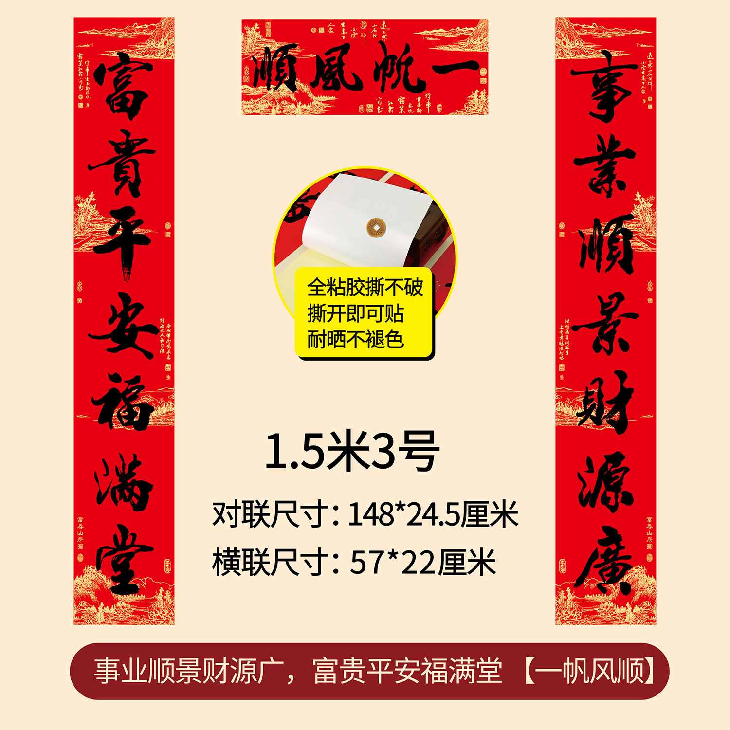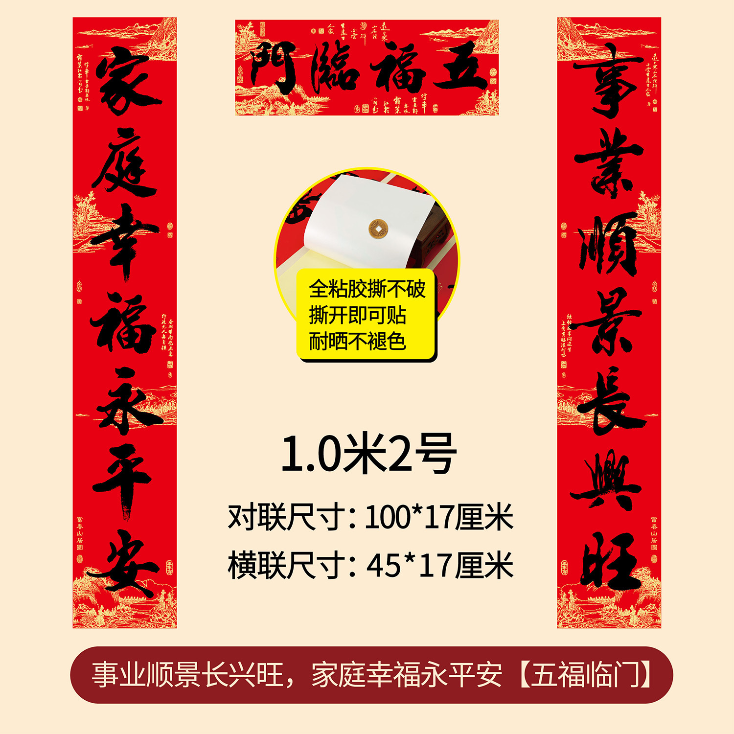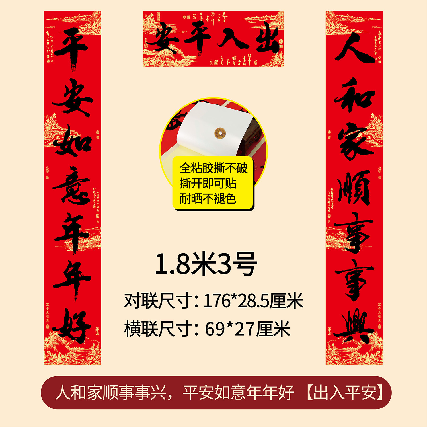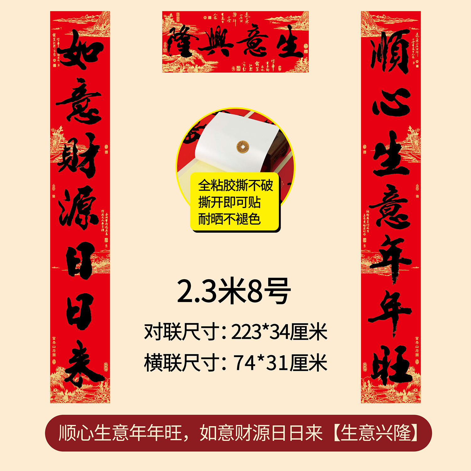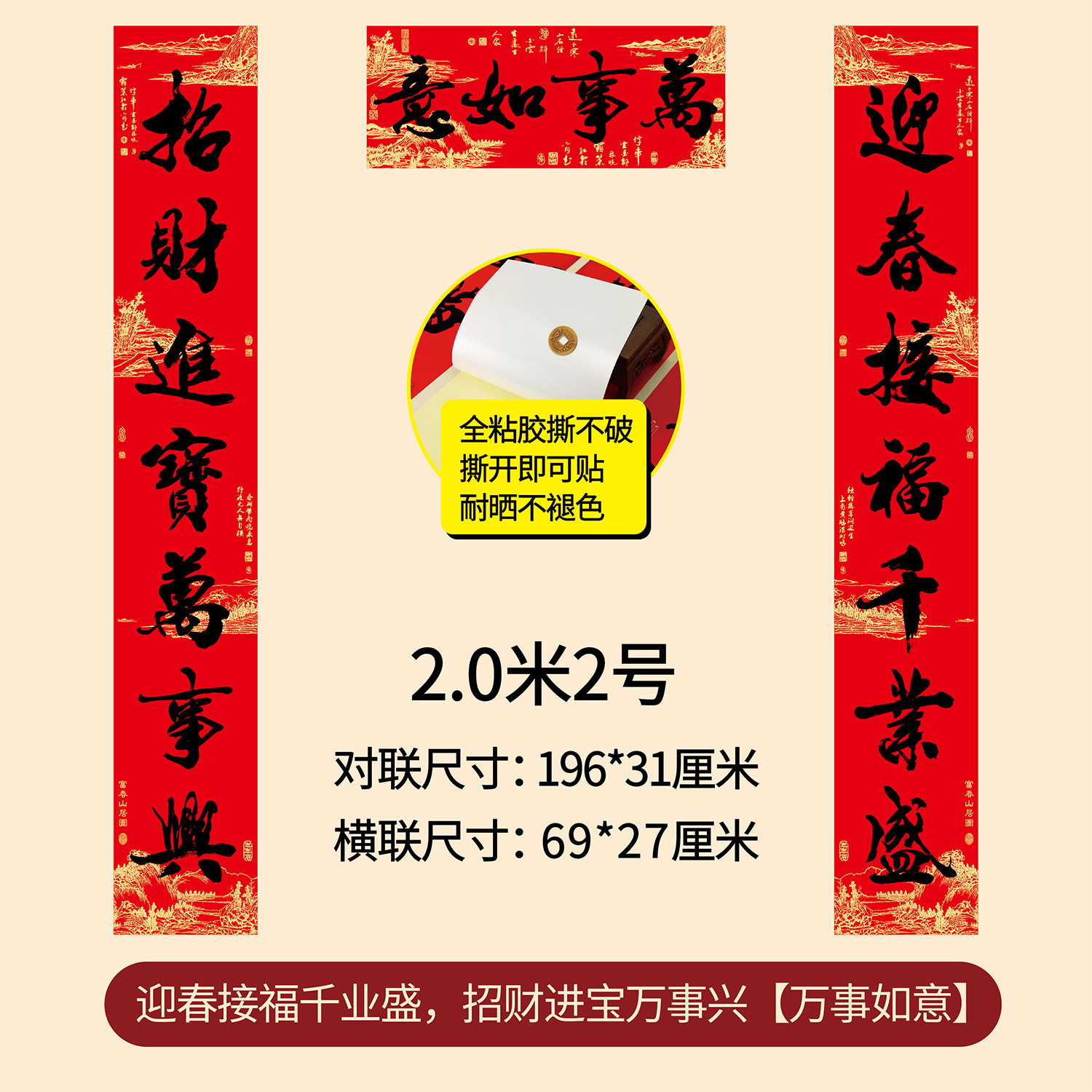 新年春节全年红背胶春联 耐晒不褪色撕不破大门对联厂家年货批发