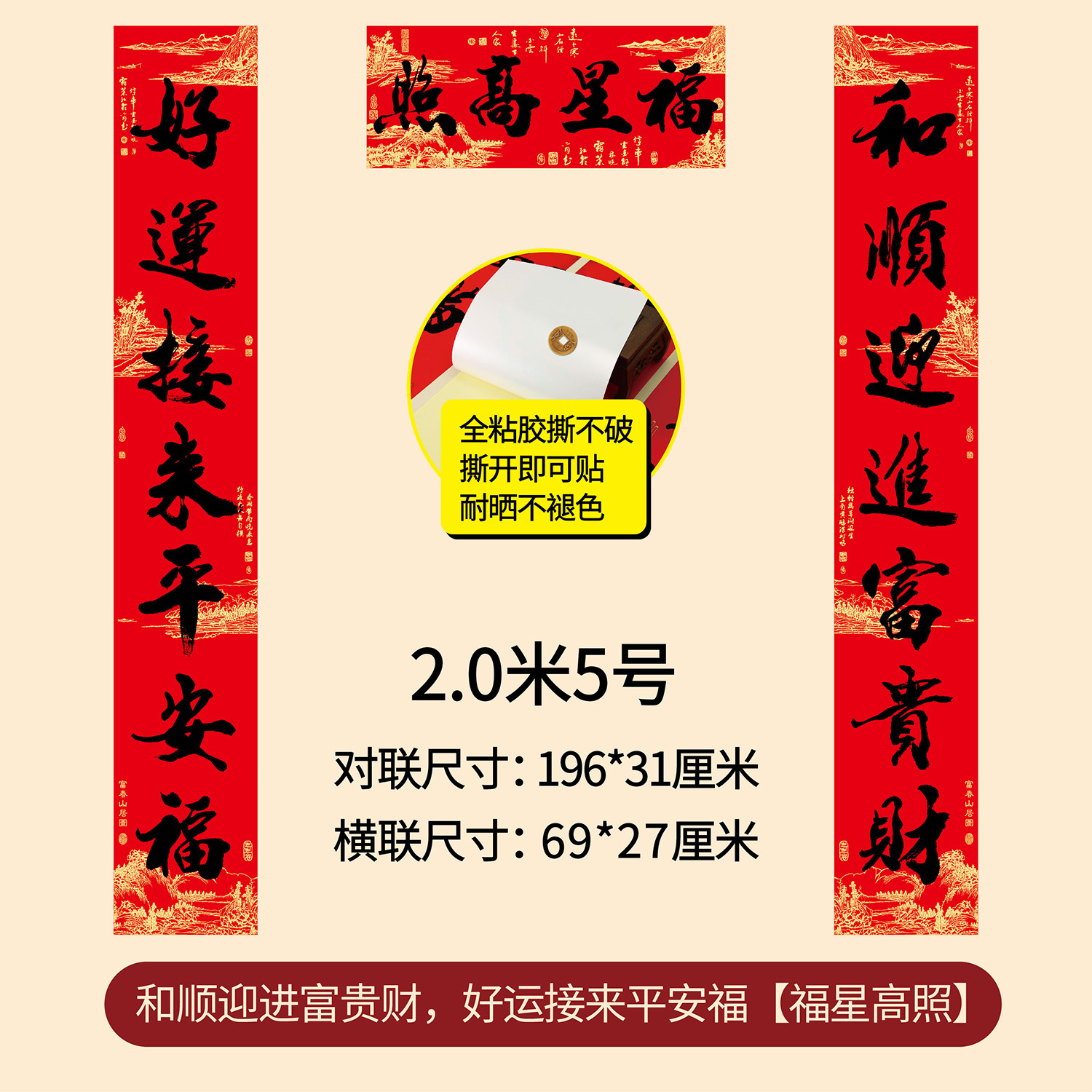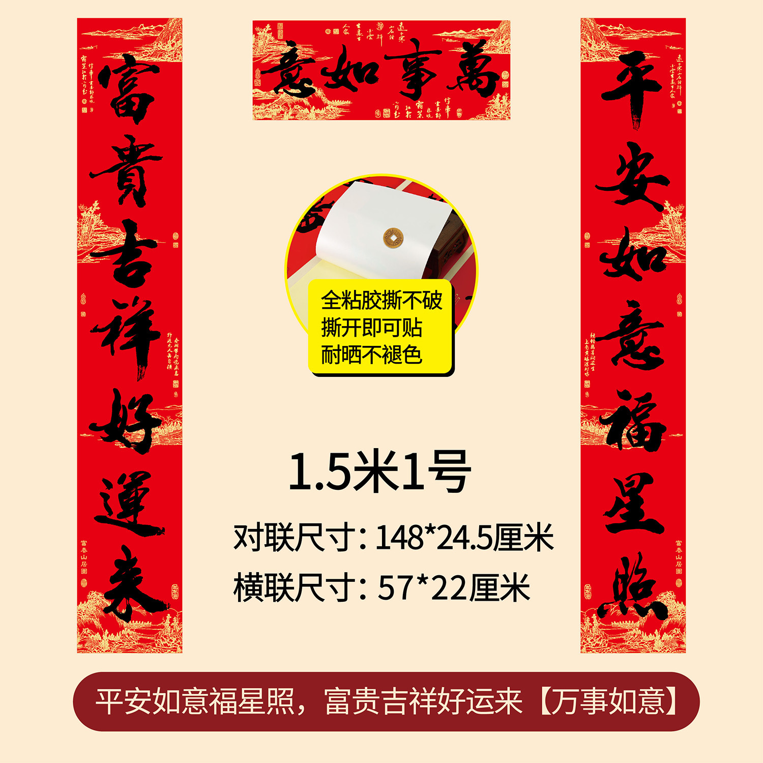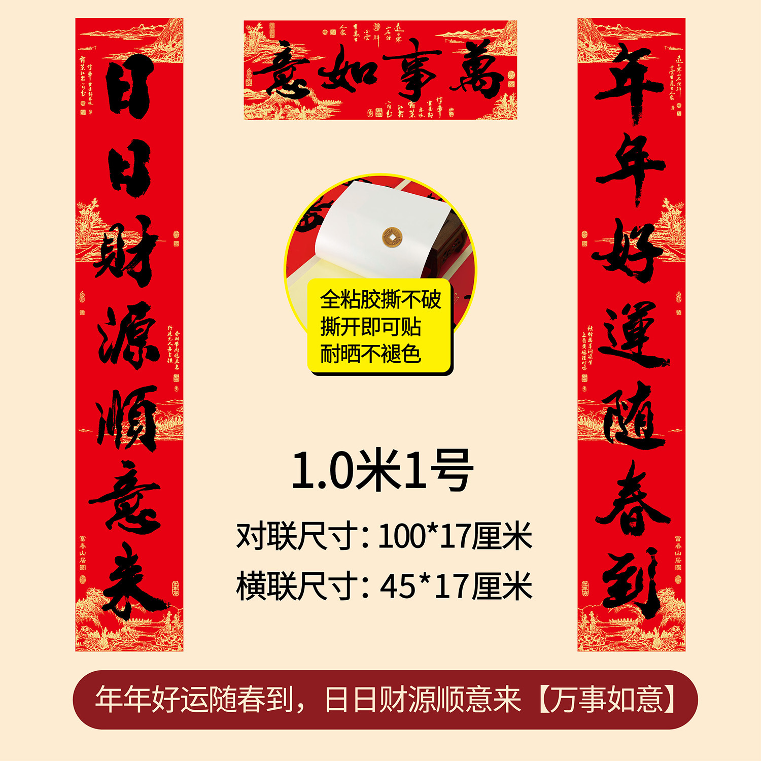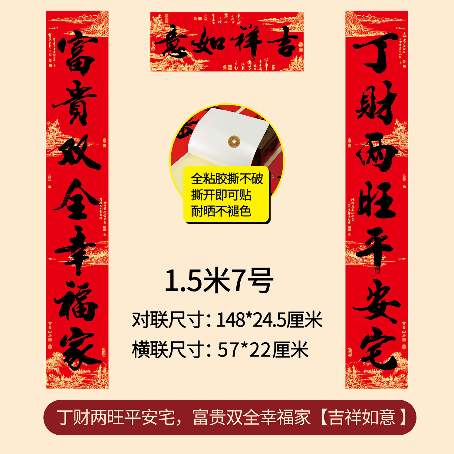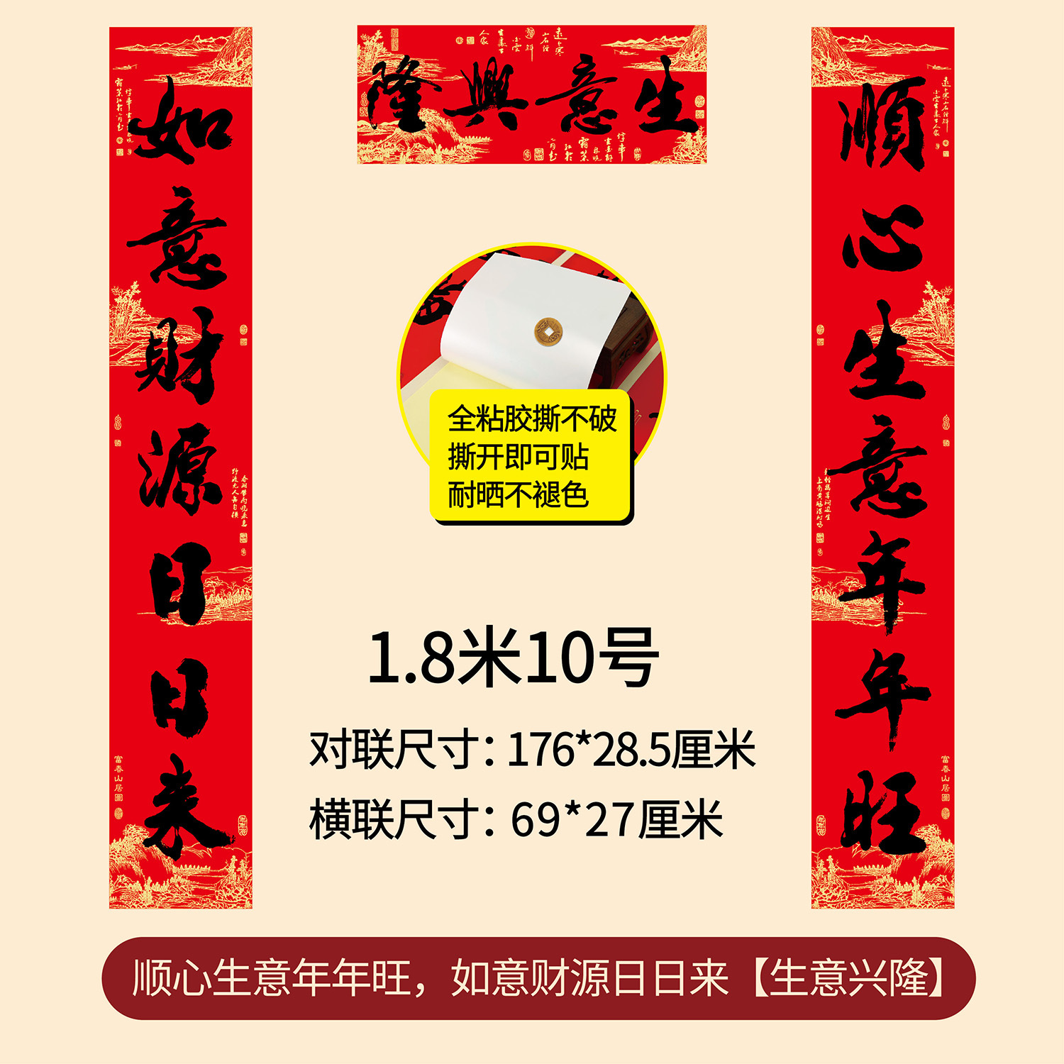 新年春节全年红背胶春联 耐晒不褪色撕不破大门对联厂家年货批发