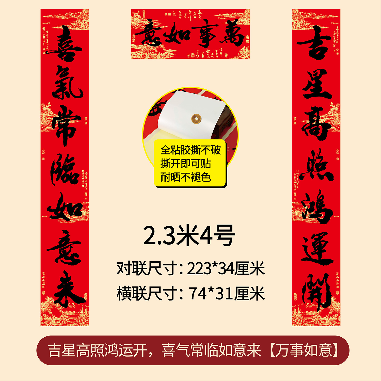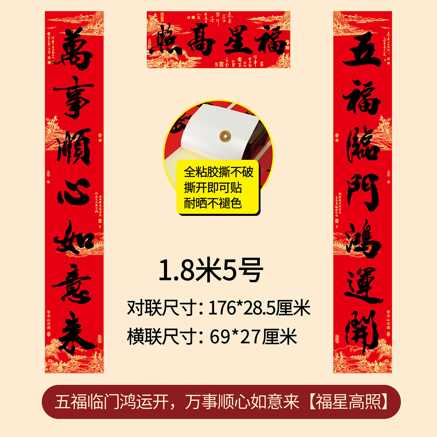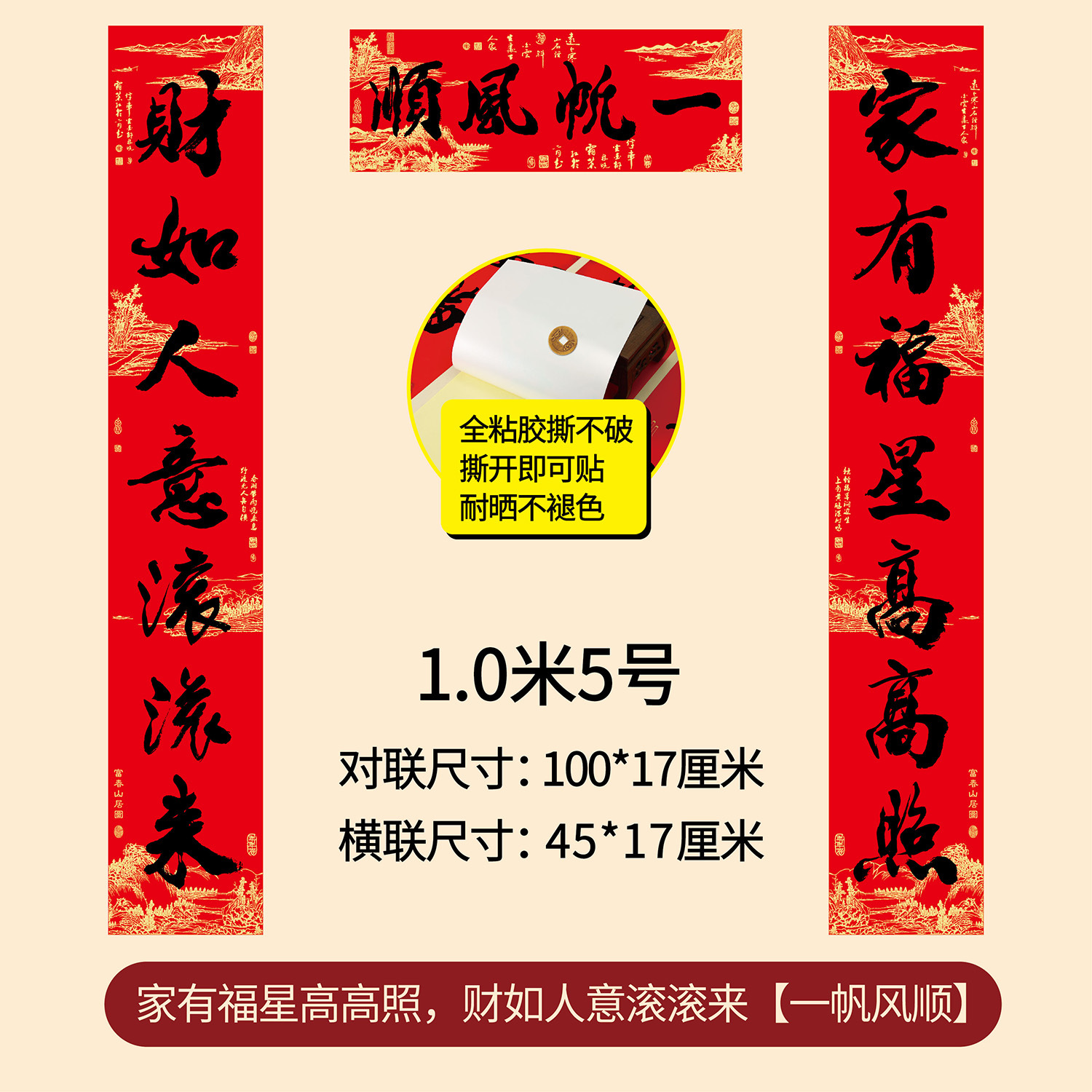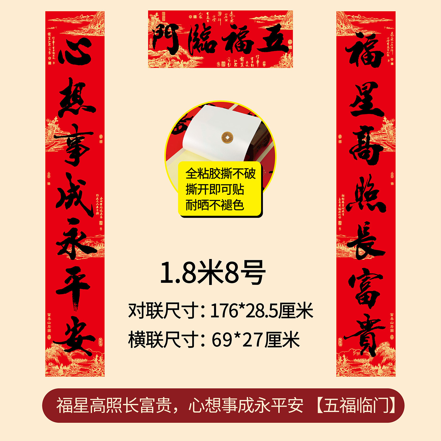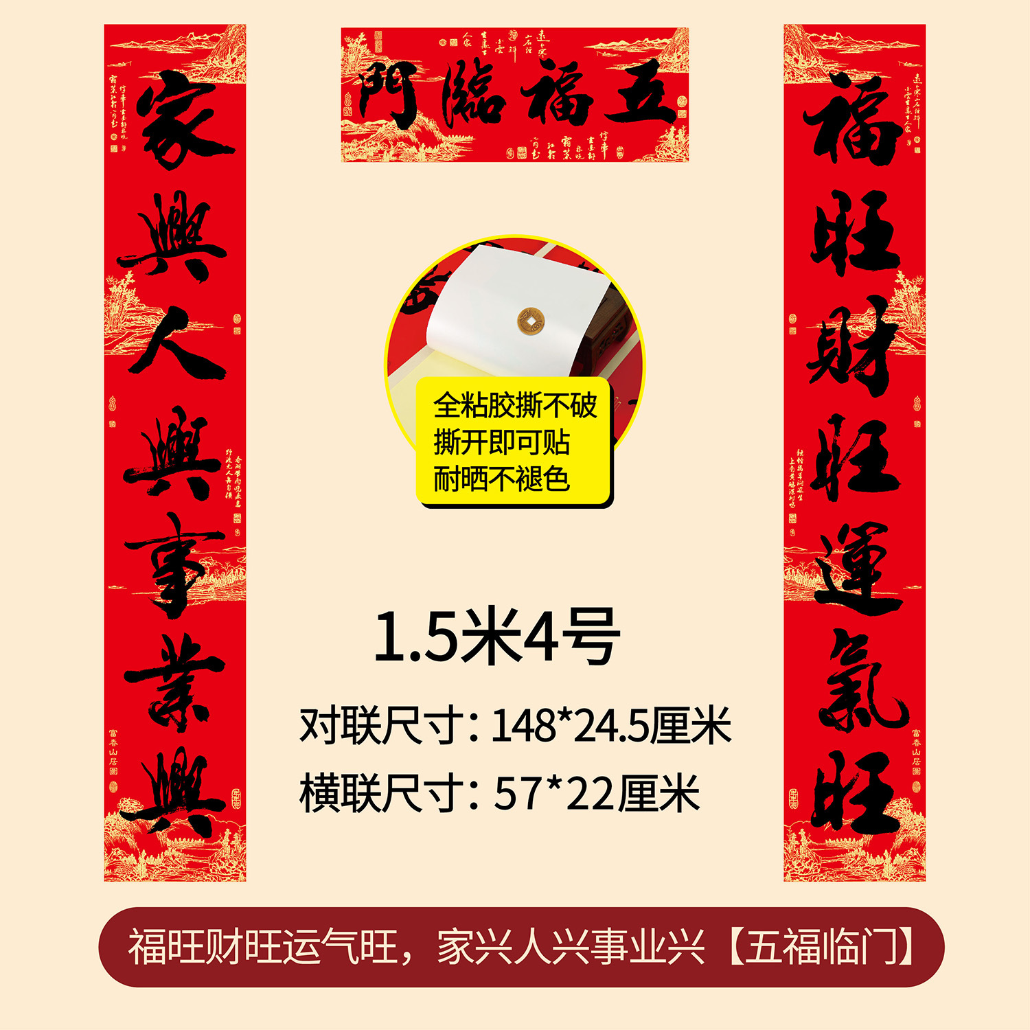 新年春节全年红背胶春联 耐晒不褪色撕不破大门对联厂家年货批发
