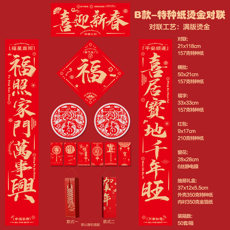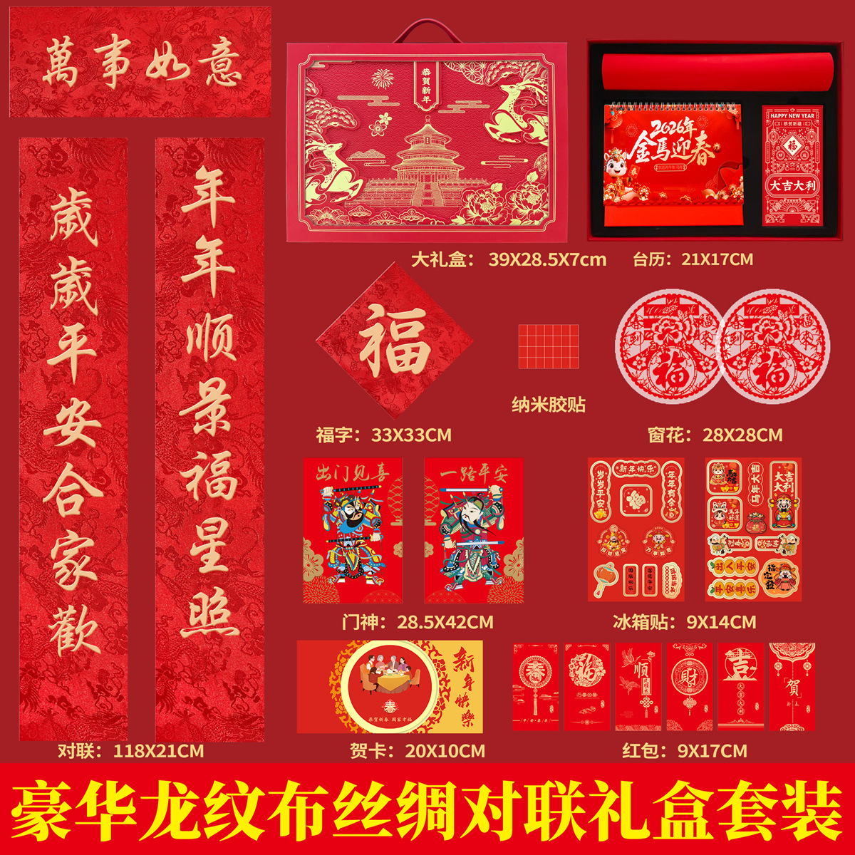 2026马年创意对联定制丝绸春联大礼盒豪华套装春节定做礼包印LOGO