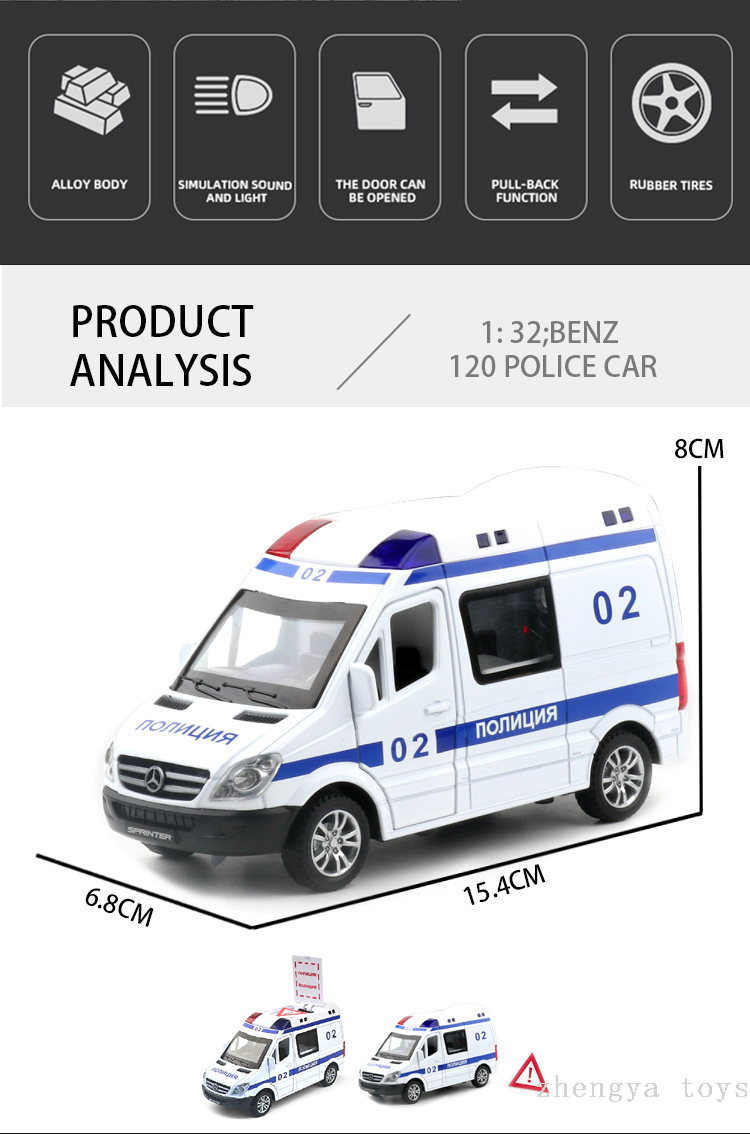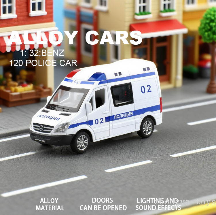 1:32俄文奔驰120警车仿真合金车模汽车模型金属玩具车摆件玩具
