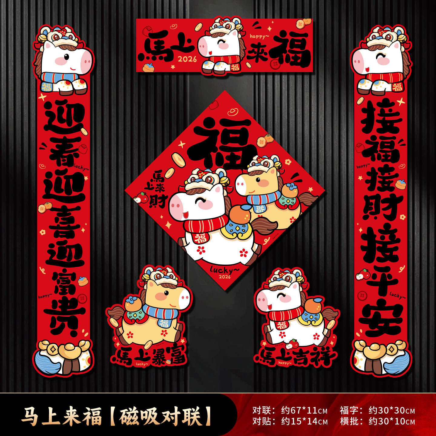 磁吸对联2026新款马年新年装饰吸铁石春联过年春节大门福字磁力贴