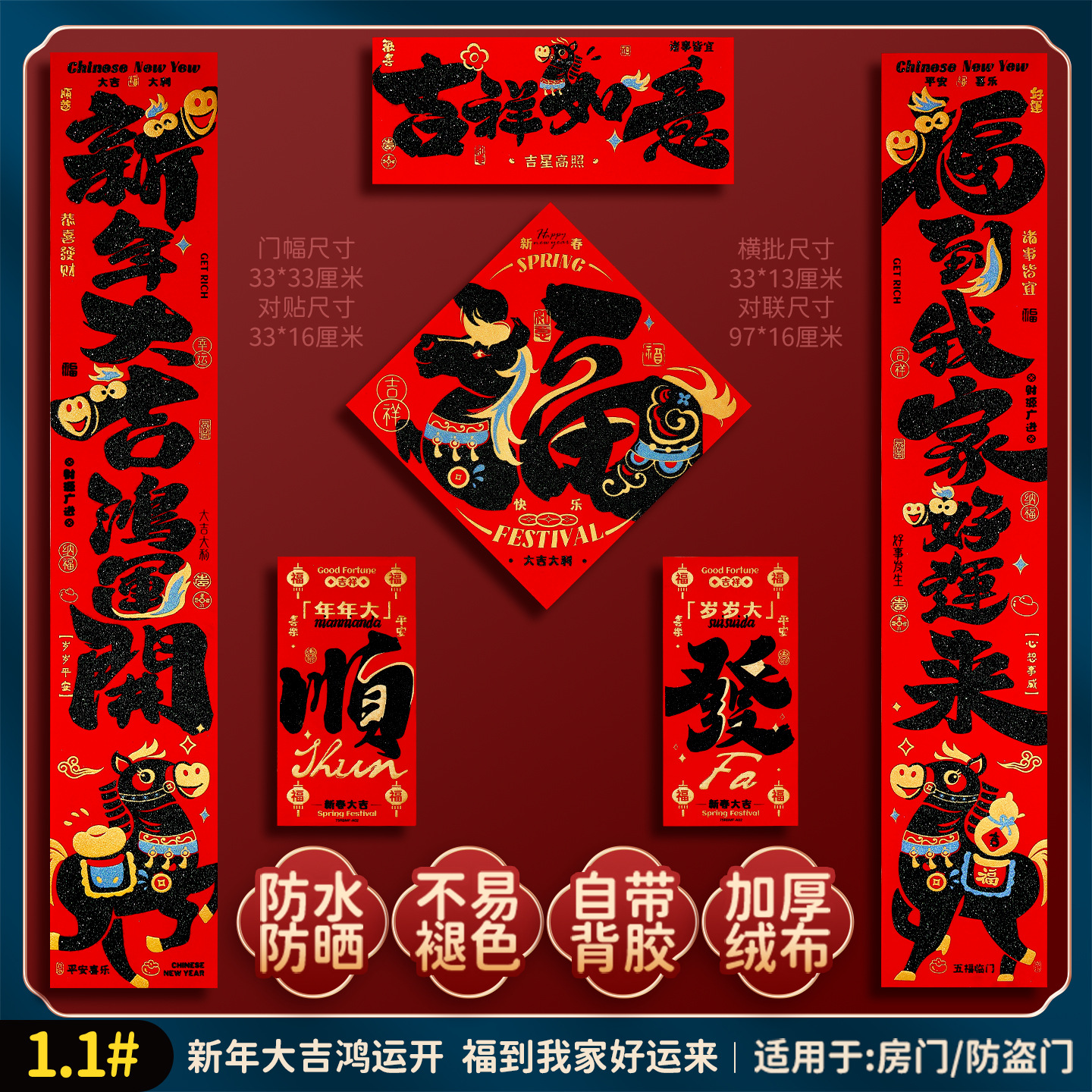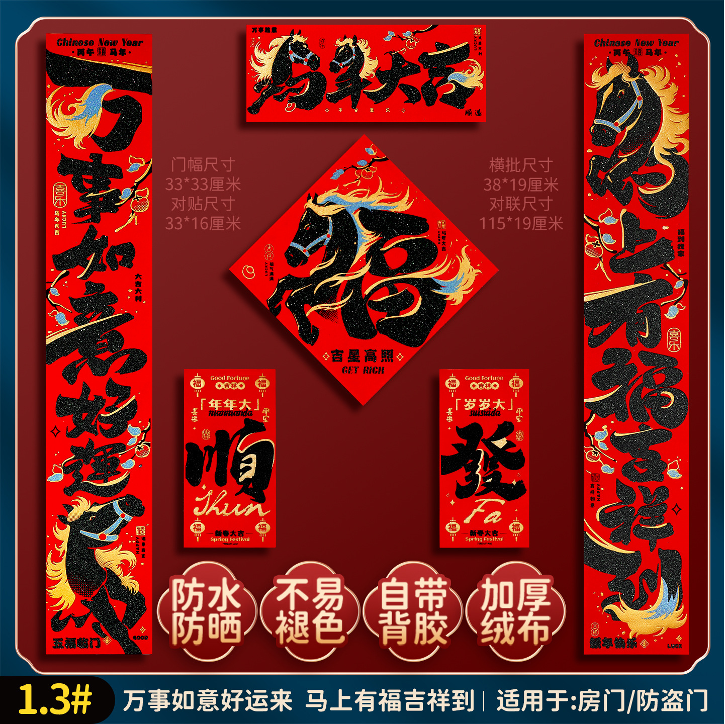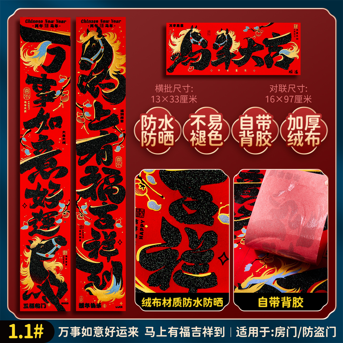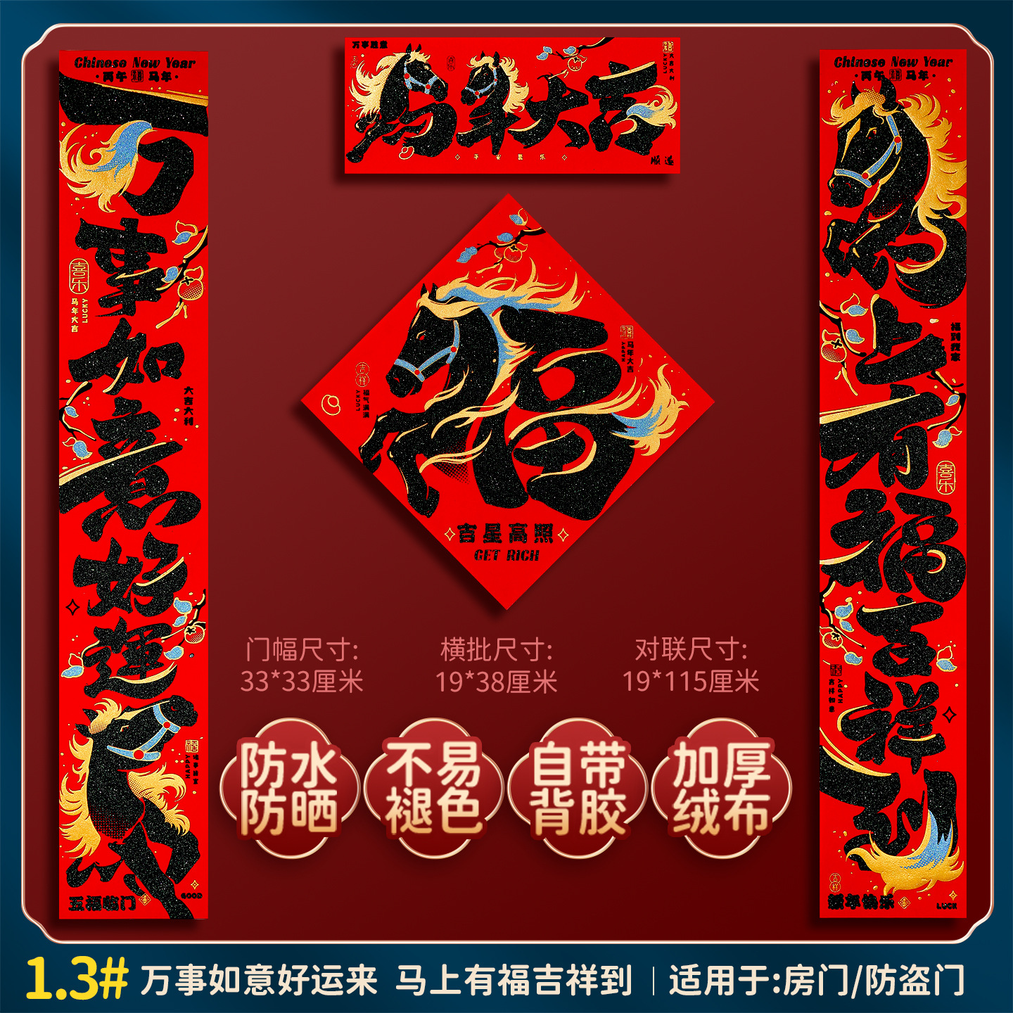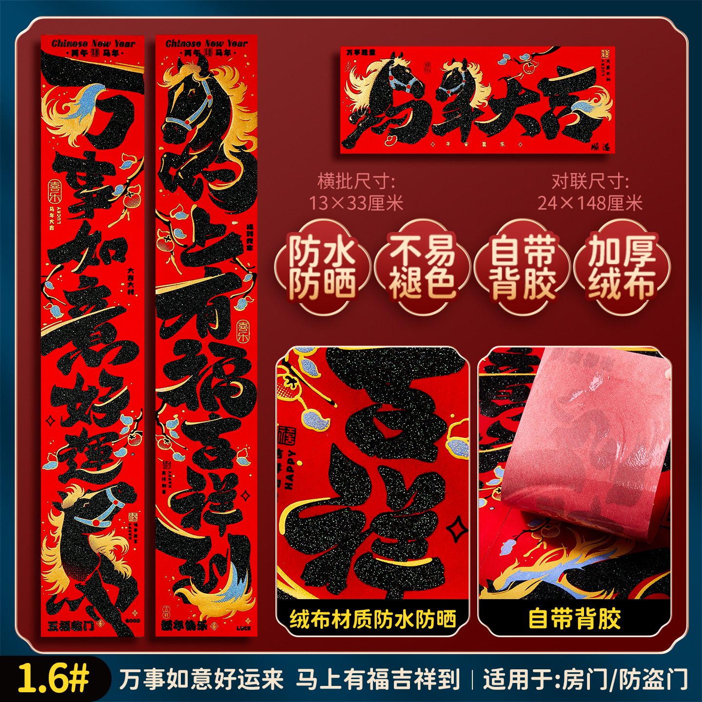 2026马年福字门贴新款创意绒布对联家用过年春联新年装饰春节布置