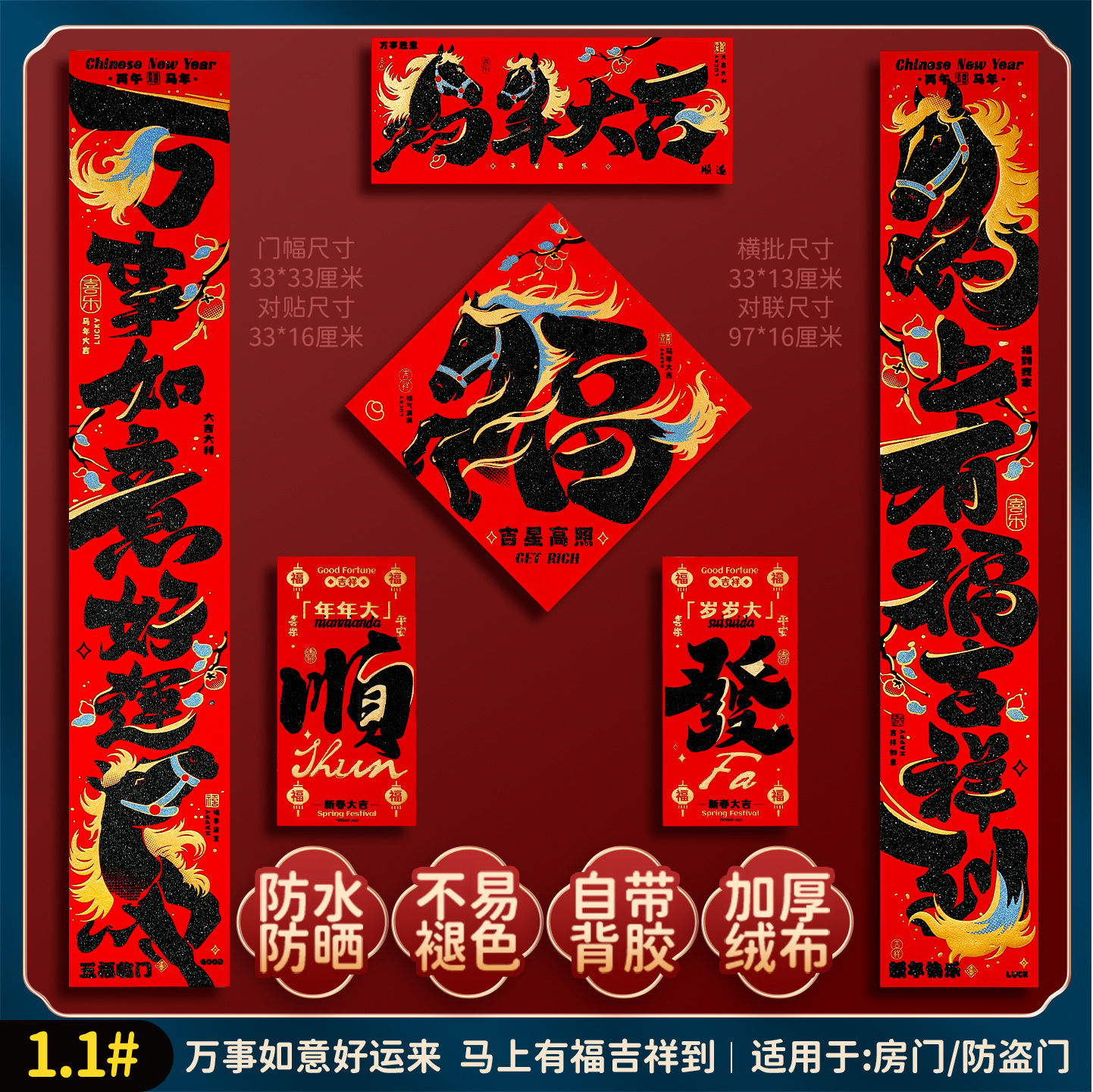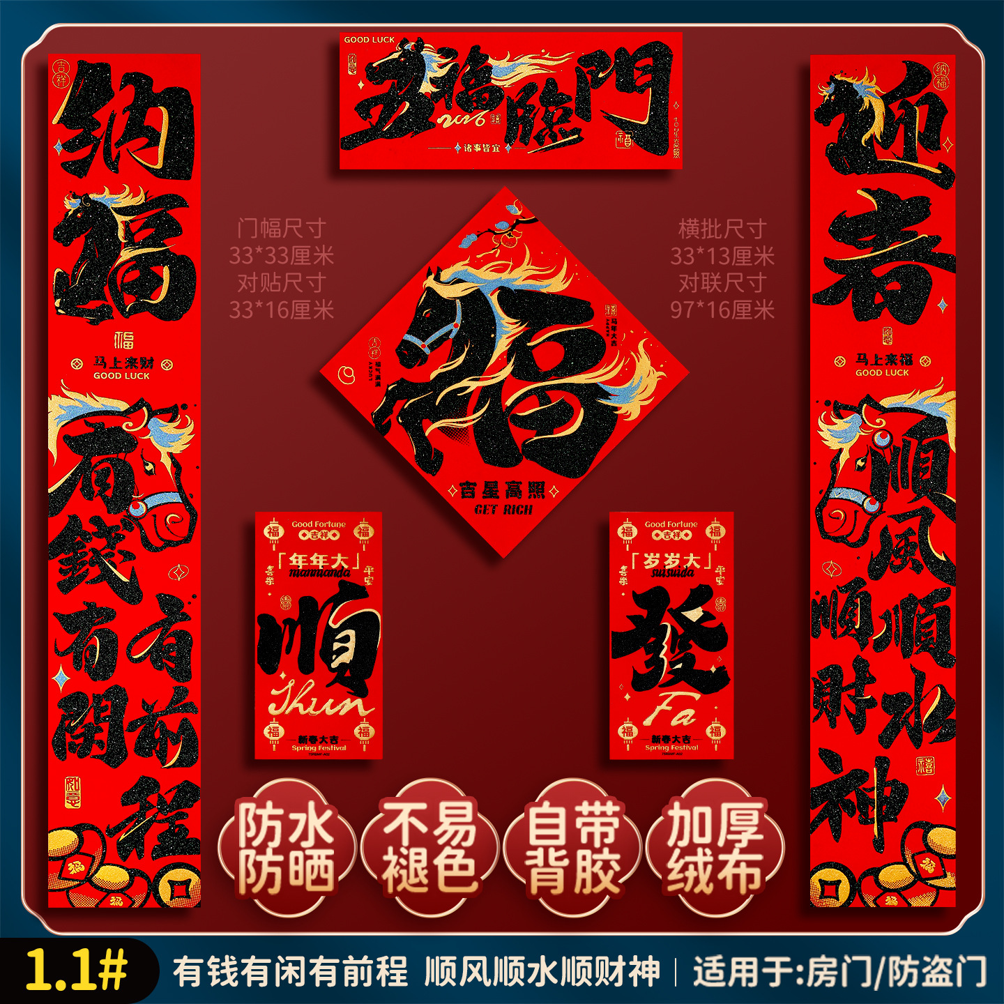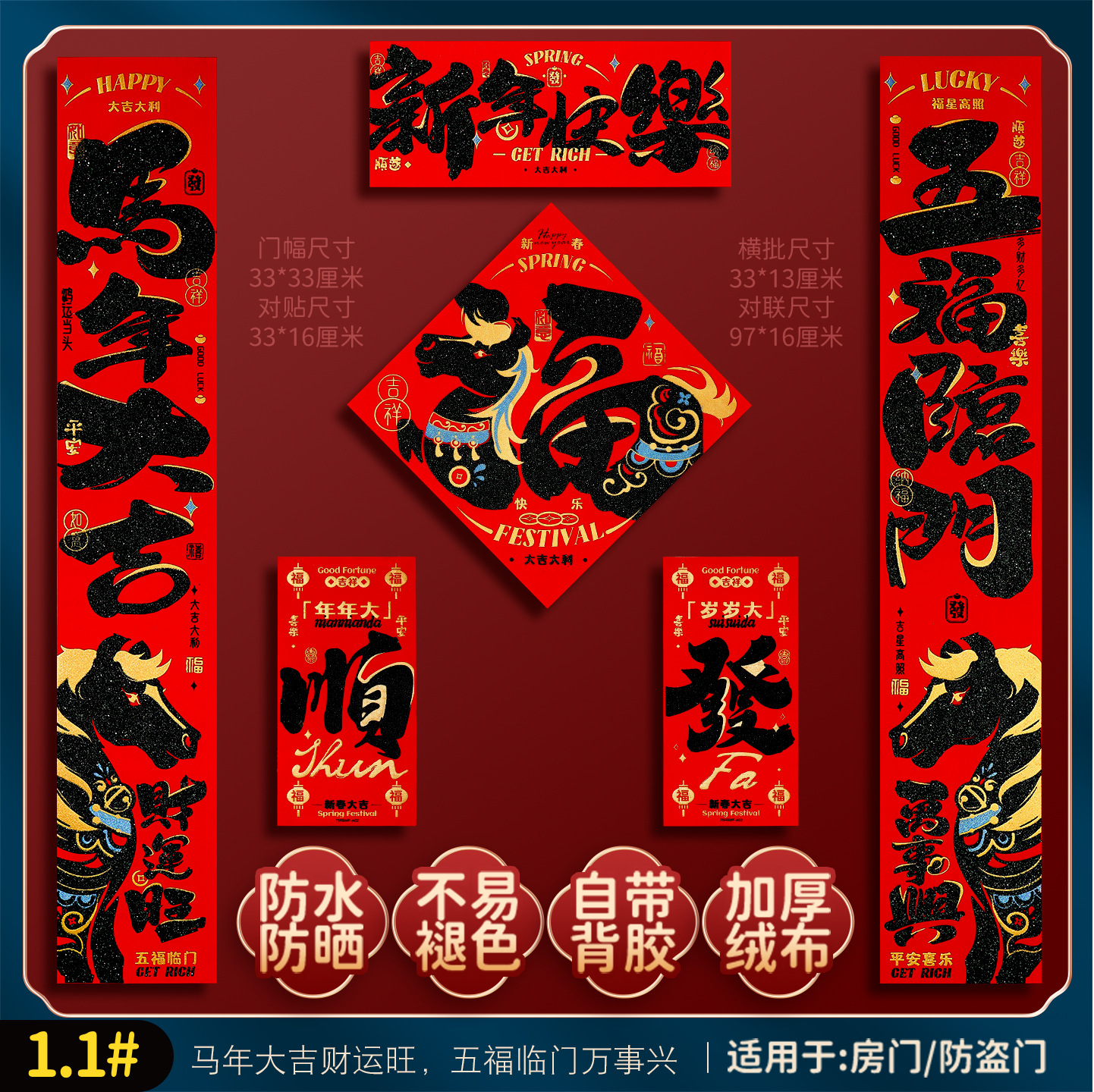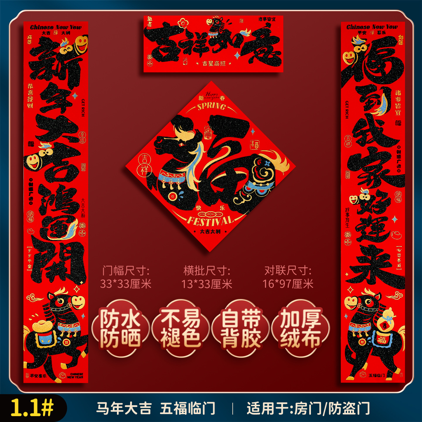2026马年福字门贴新款创意绒布对联家用过年春联新年装饰春节布置
