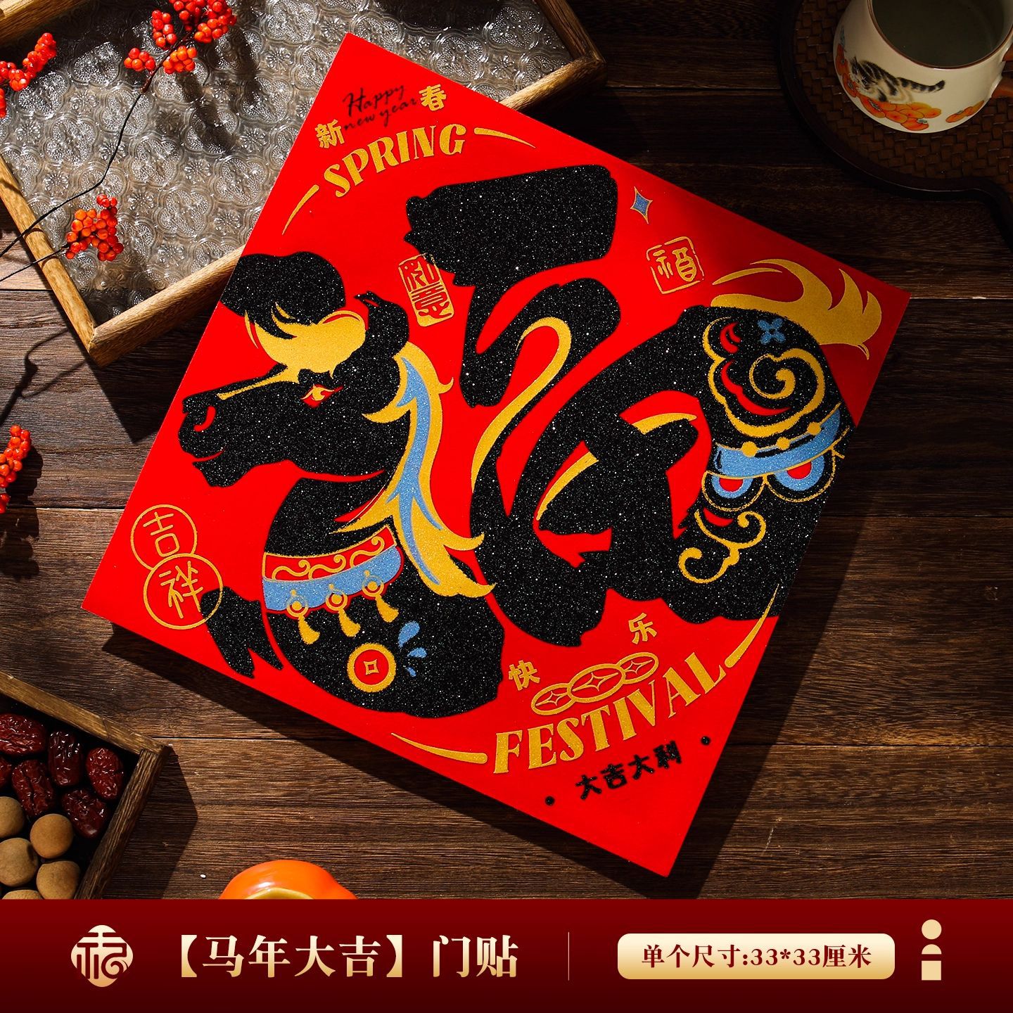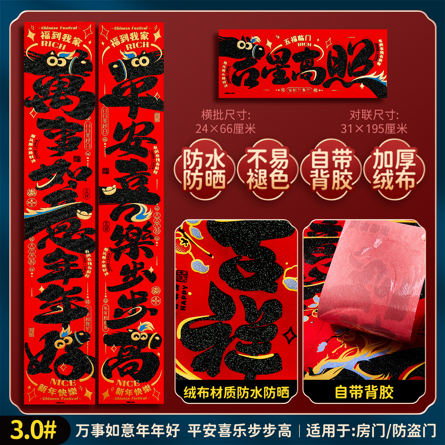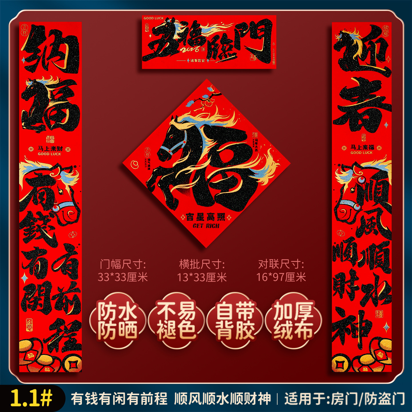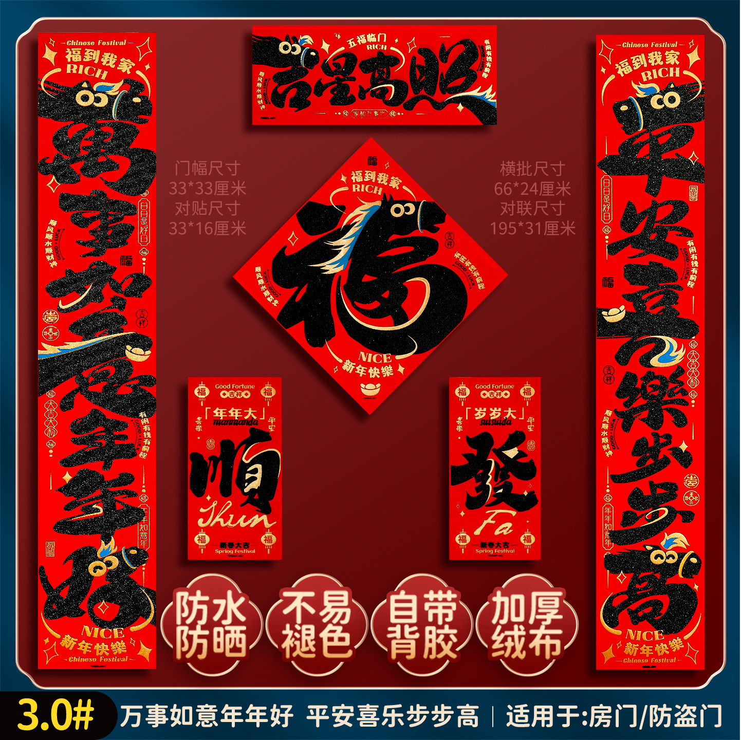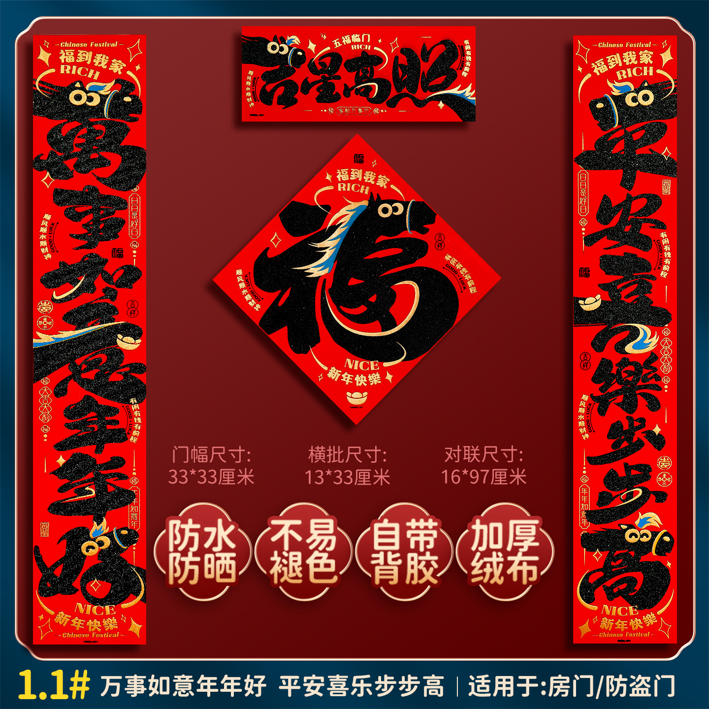 2026马年福字门贴新款创意绒布对联家用过年春联新年装饰春节布置