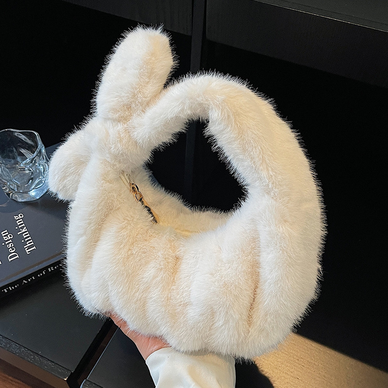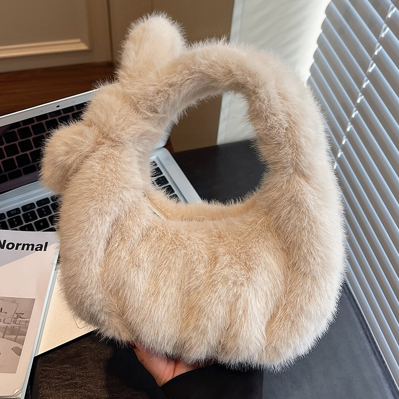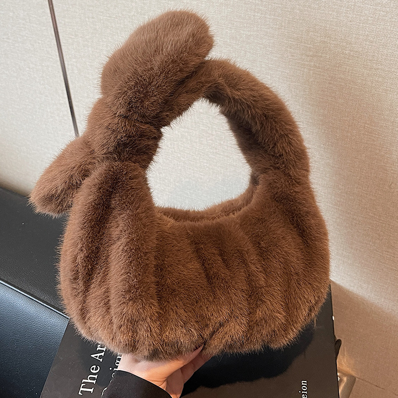 网红ins小众手拎包包女2025秋冬新款毛绒时尚百搭手提包女