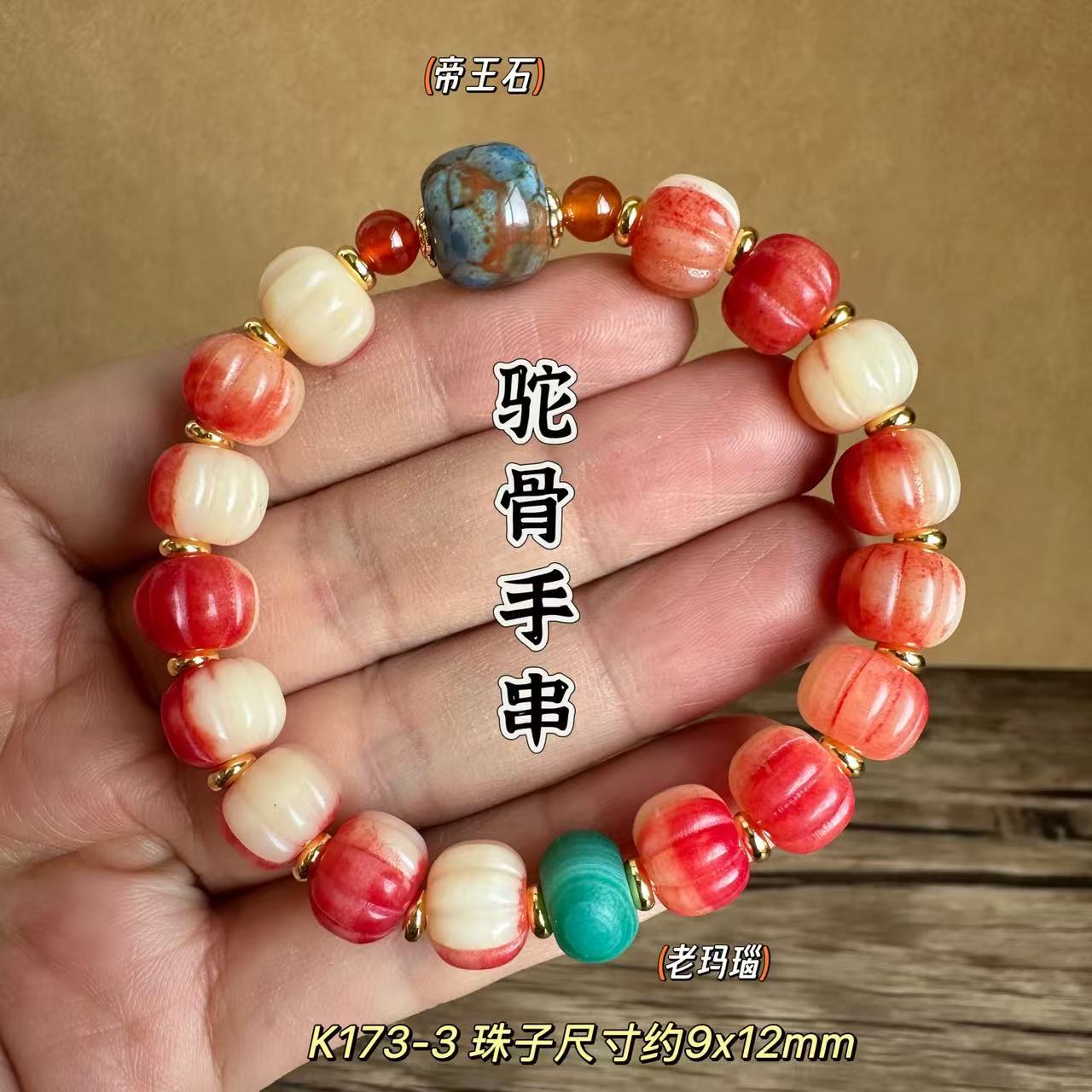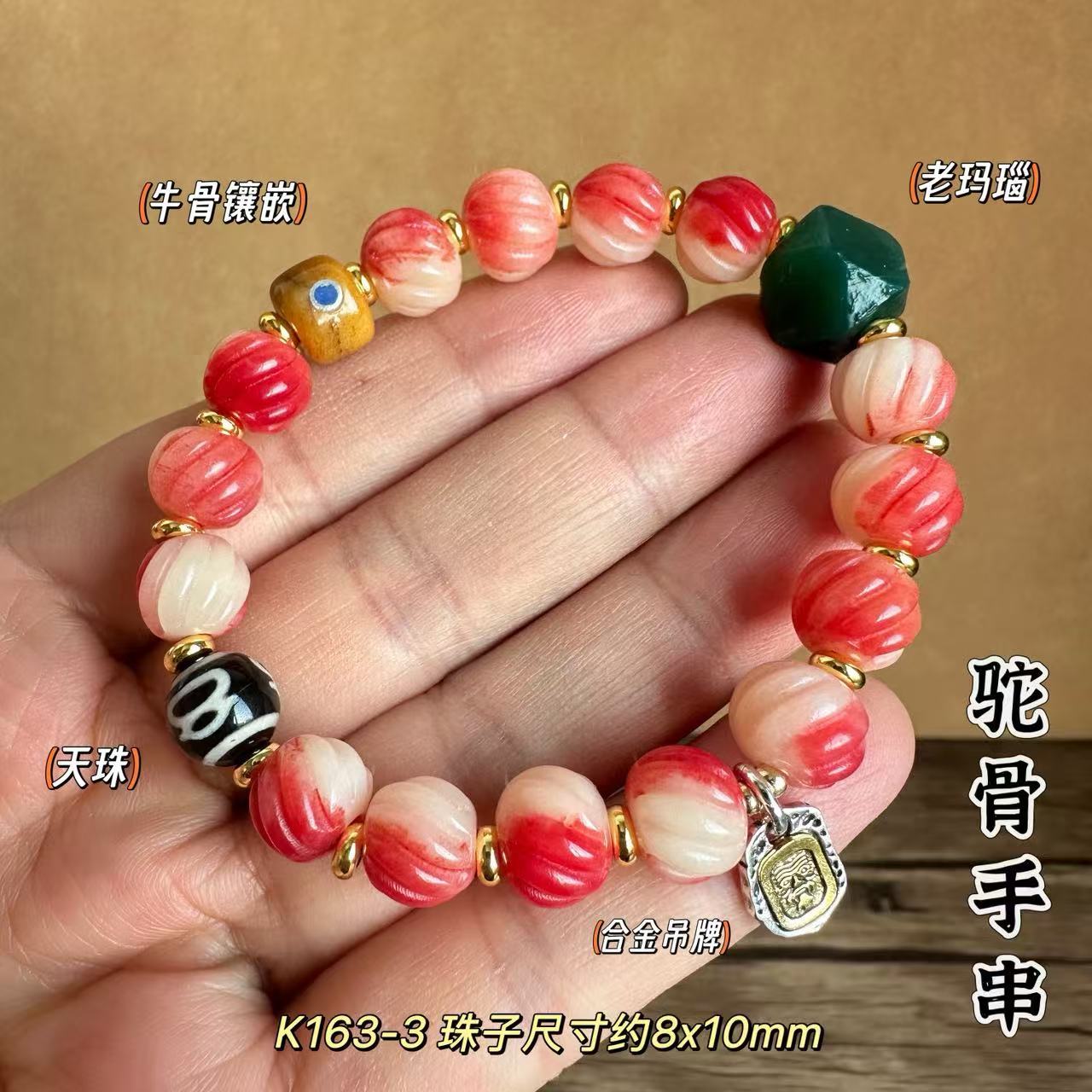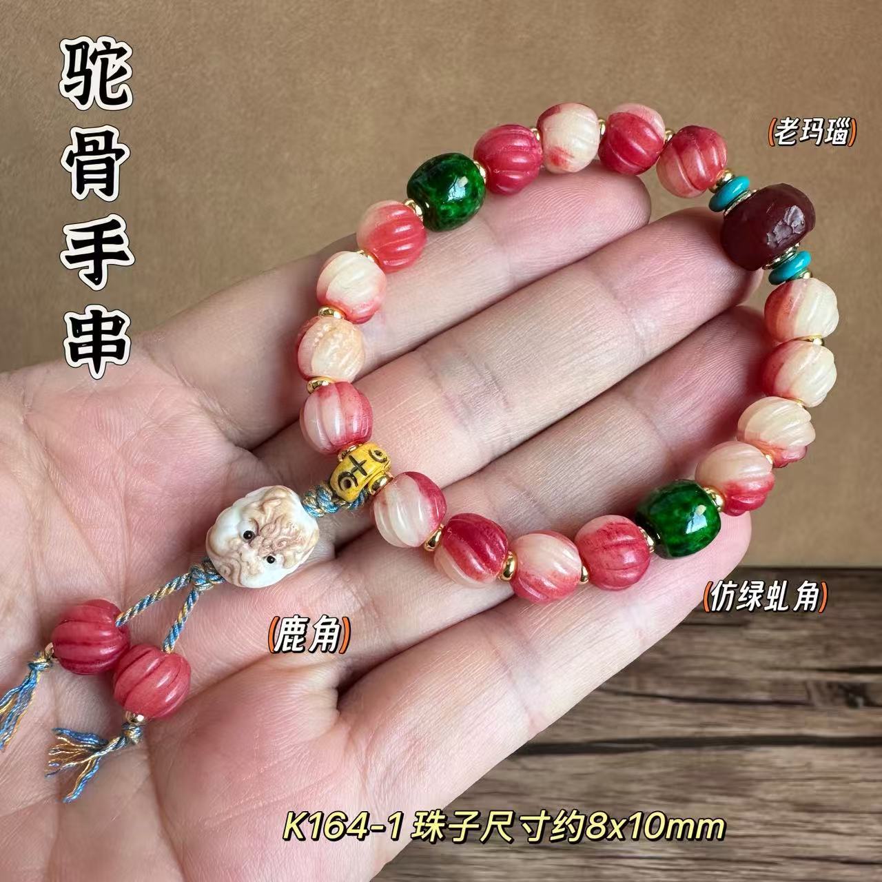 藏式血料驼骨手串批发西藏回流牦牛骨手链民族风手饰单圈文玩骨头