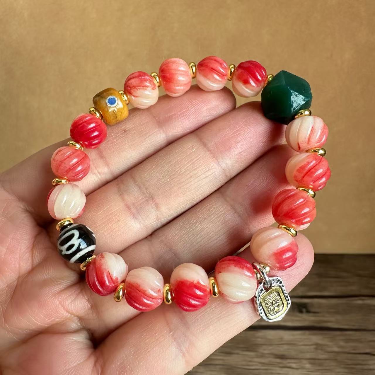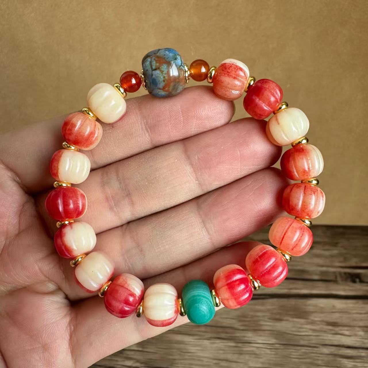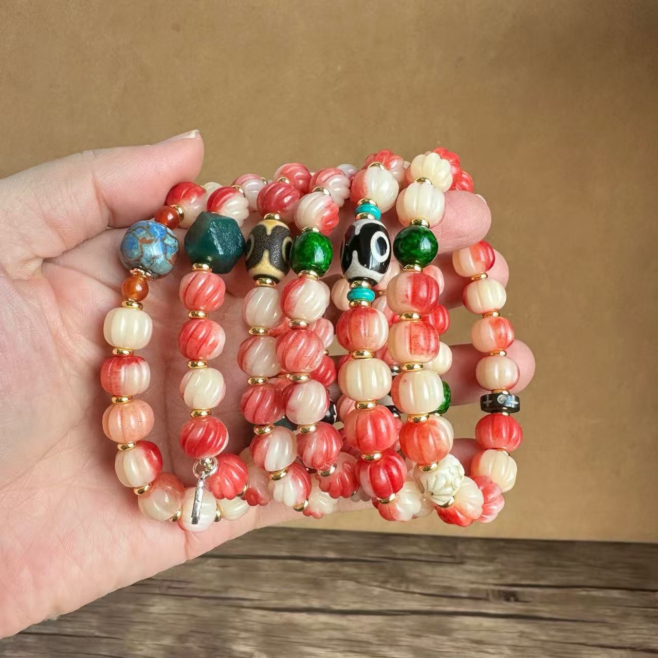 藏式血料驼骨手串批发西藏回流牦牛骨手链民族风手饰单圈文玩骨头