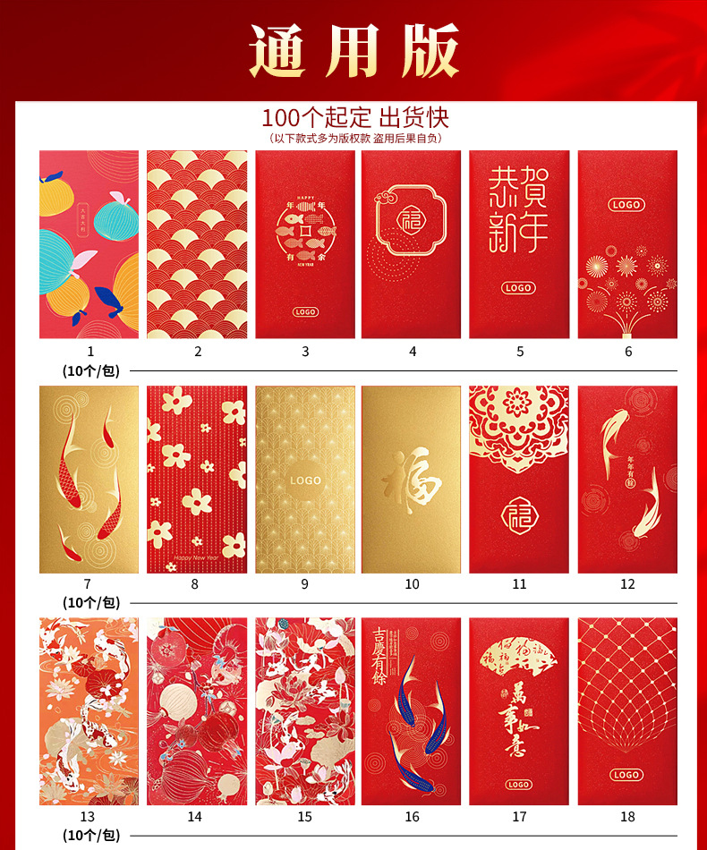 红包定制logo高档红包袋定做新年结婚企业印字烫金万元利是封订做