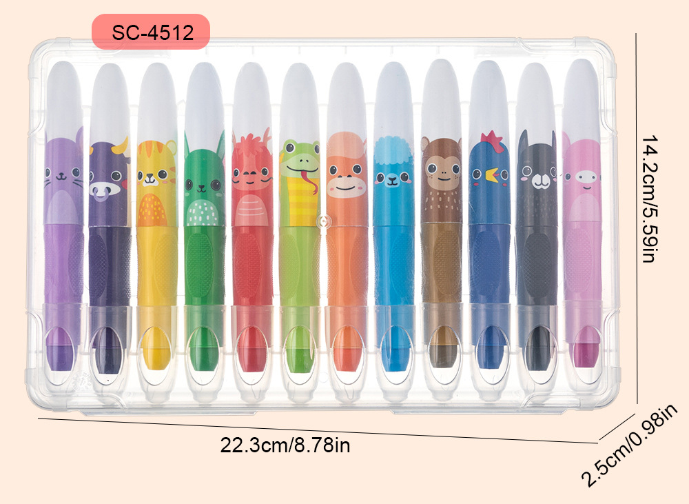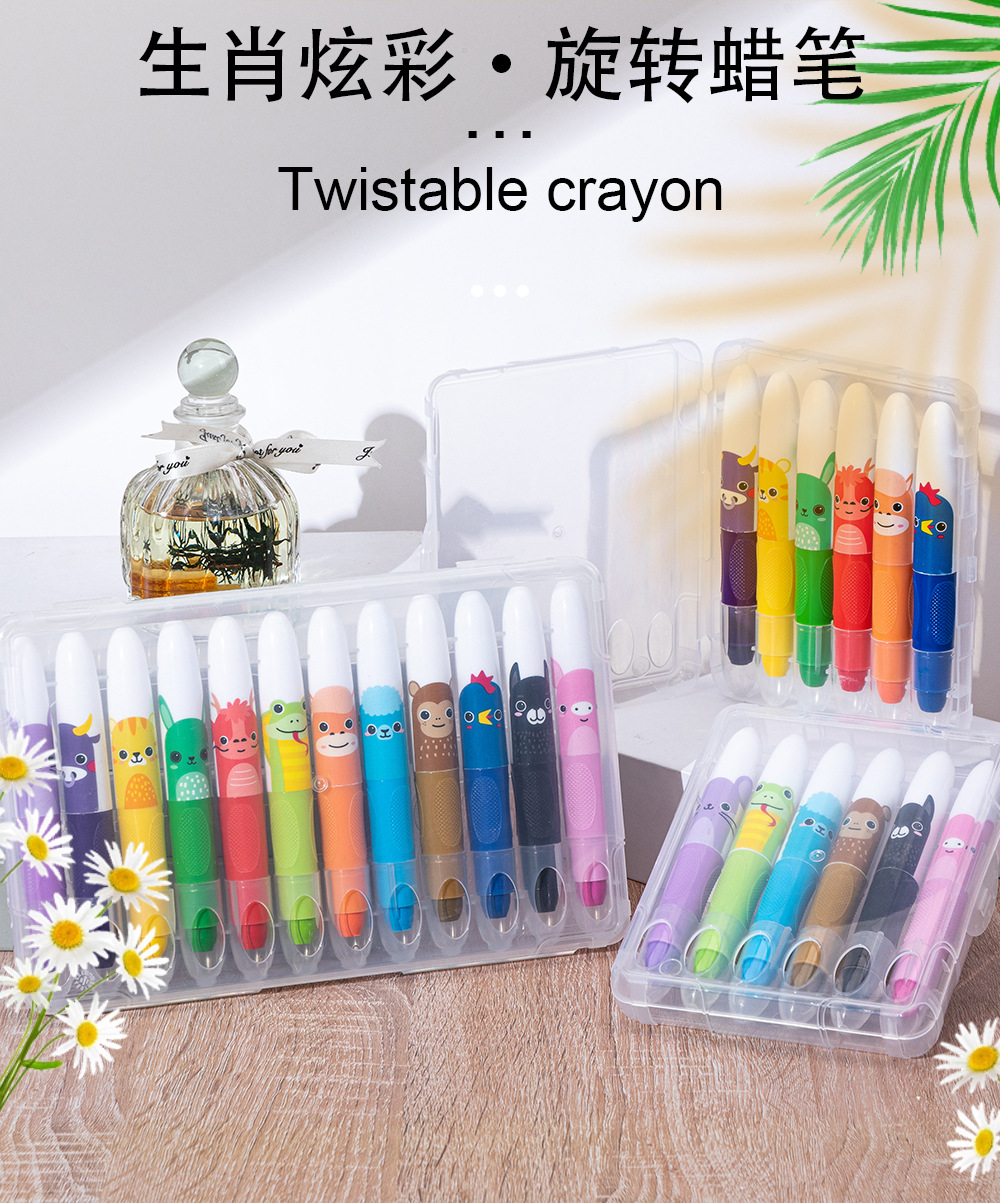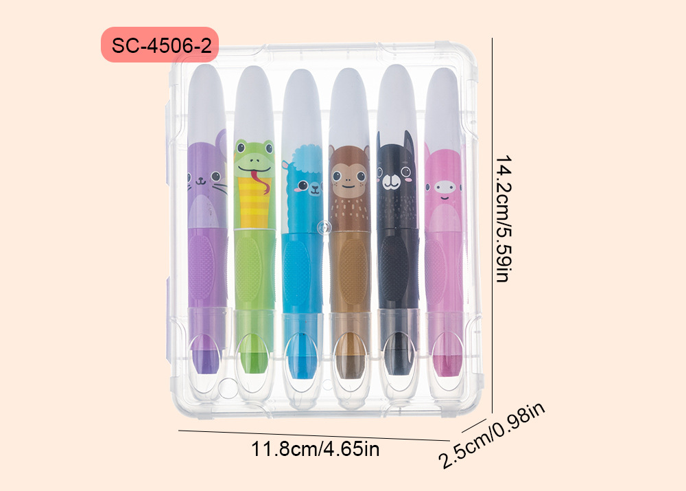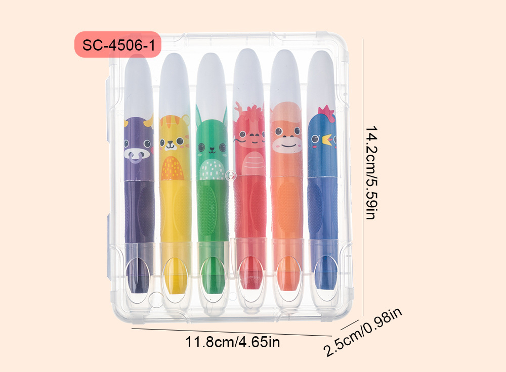 跨境热销水溶性炫彩棒6色12色儿童旋转蜡笔不脏手可擦油画棒定制