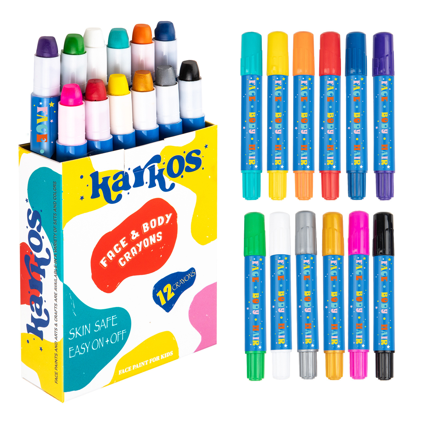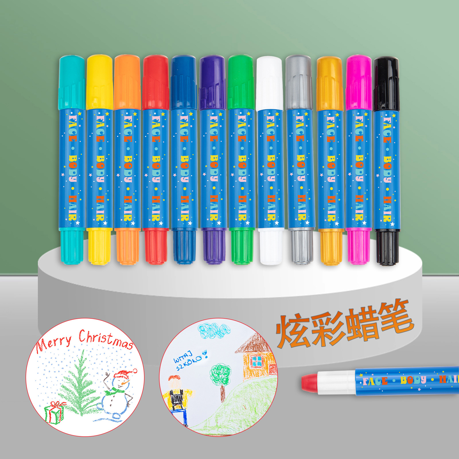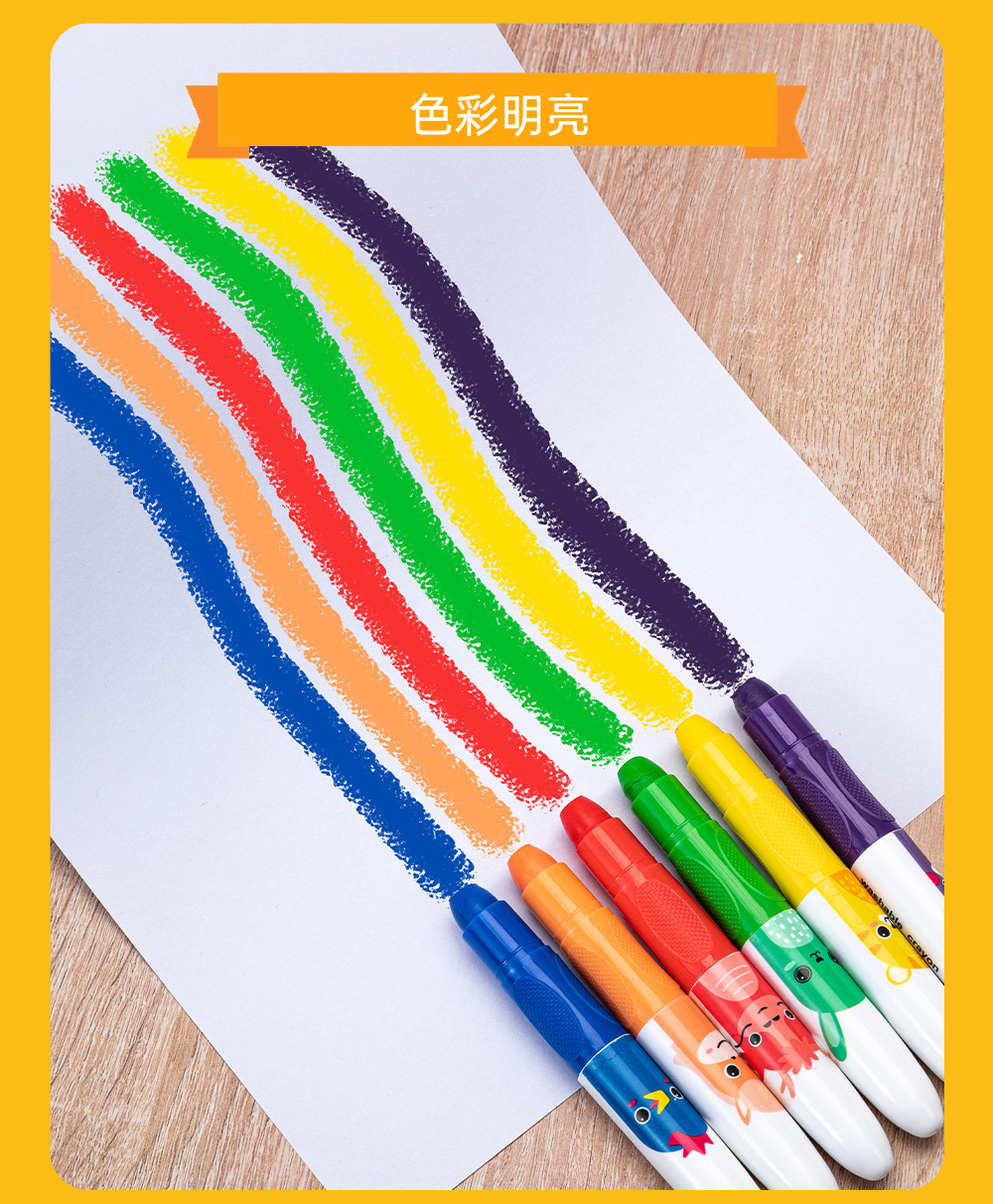 跨境热销水溶性炫彩棒6色12色儿童旋转蜡笔不脏手可擦油画棒定制