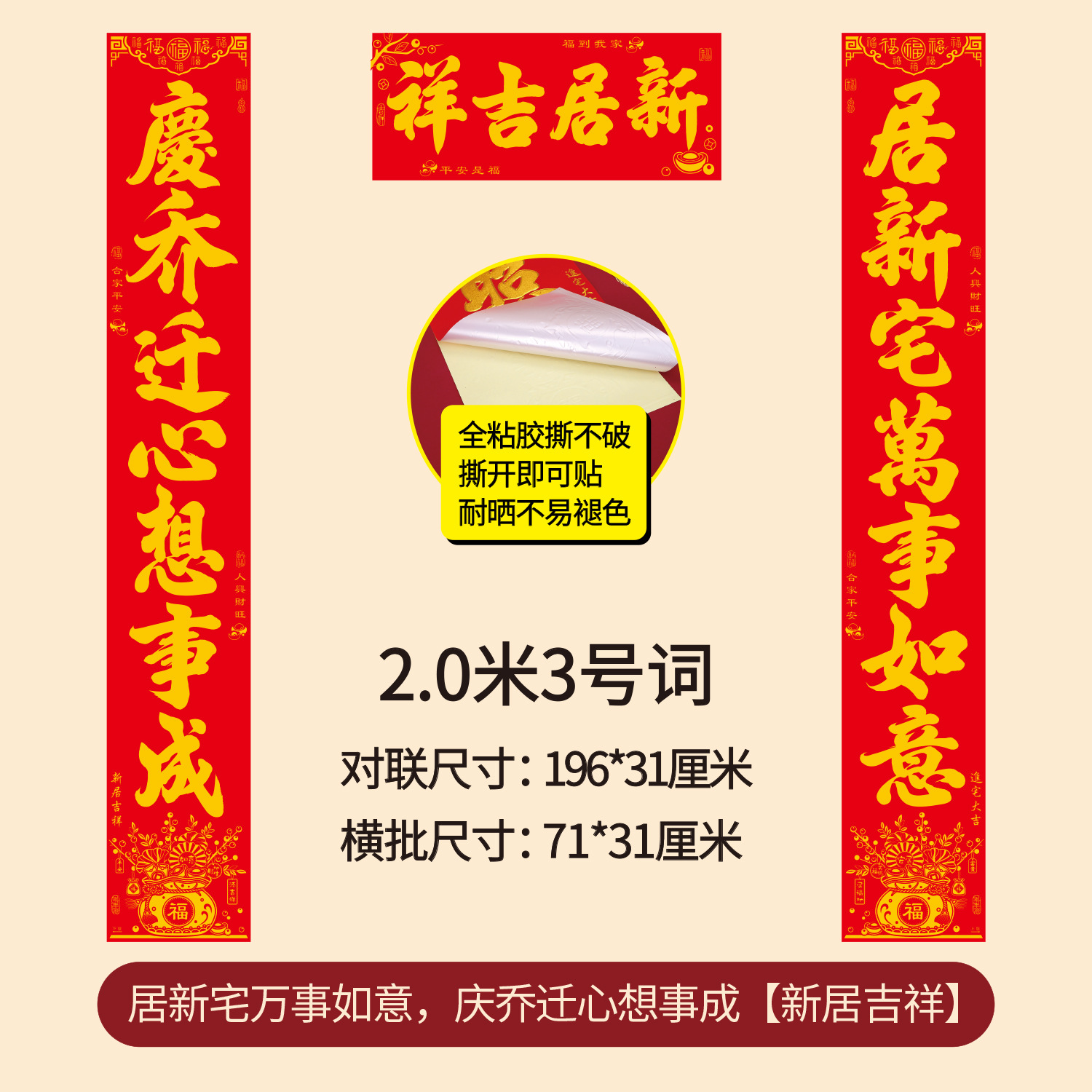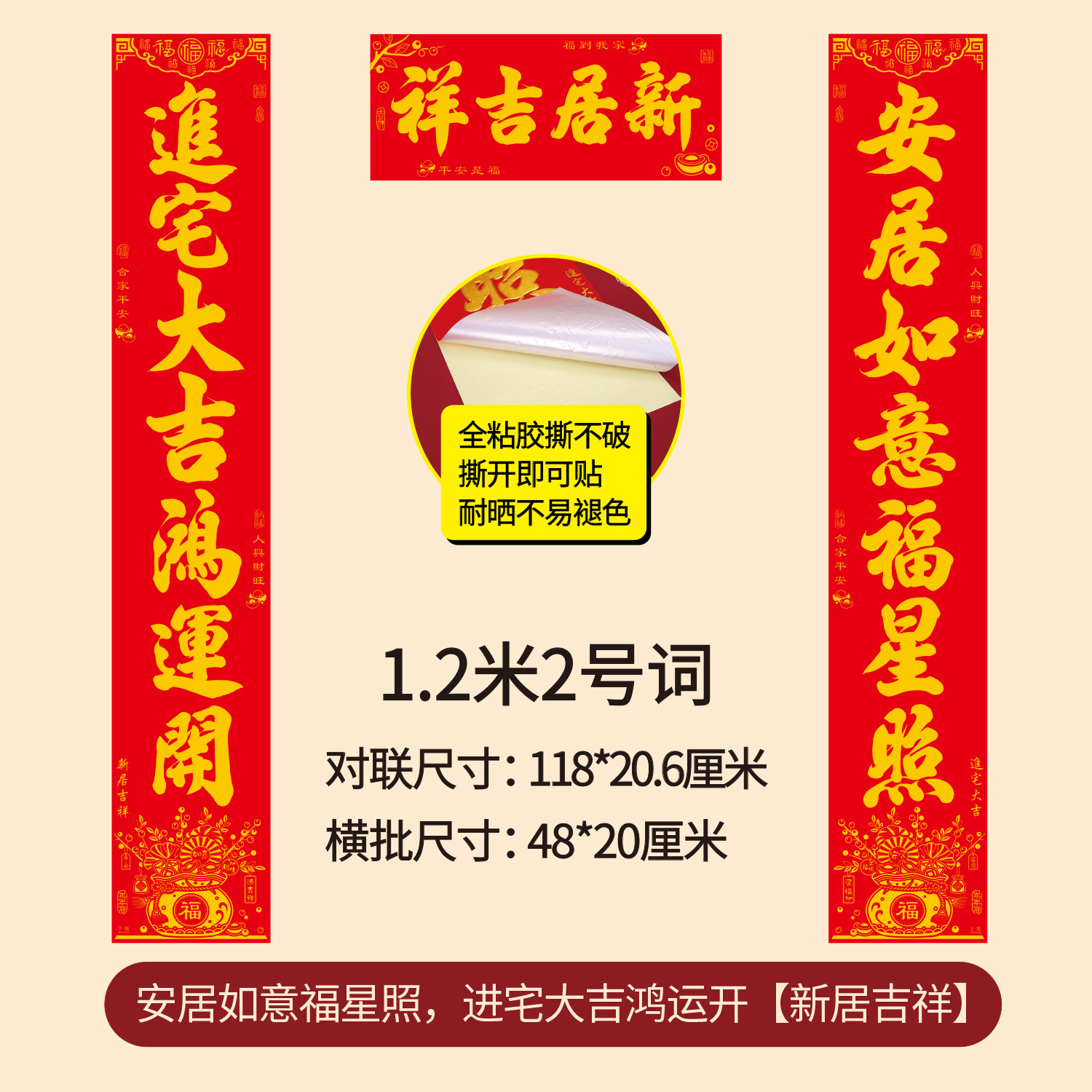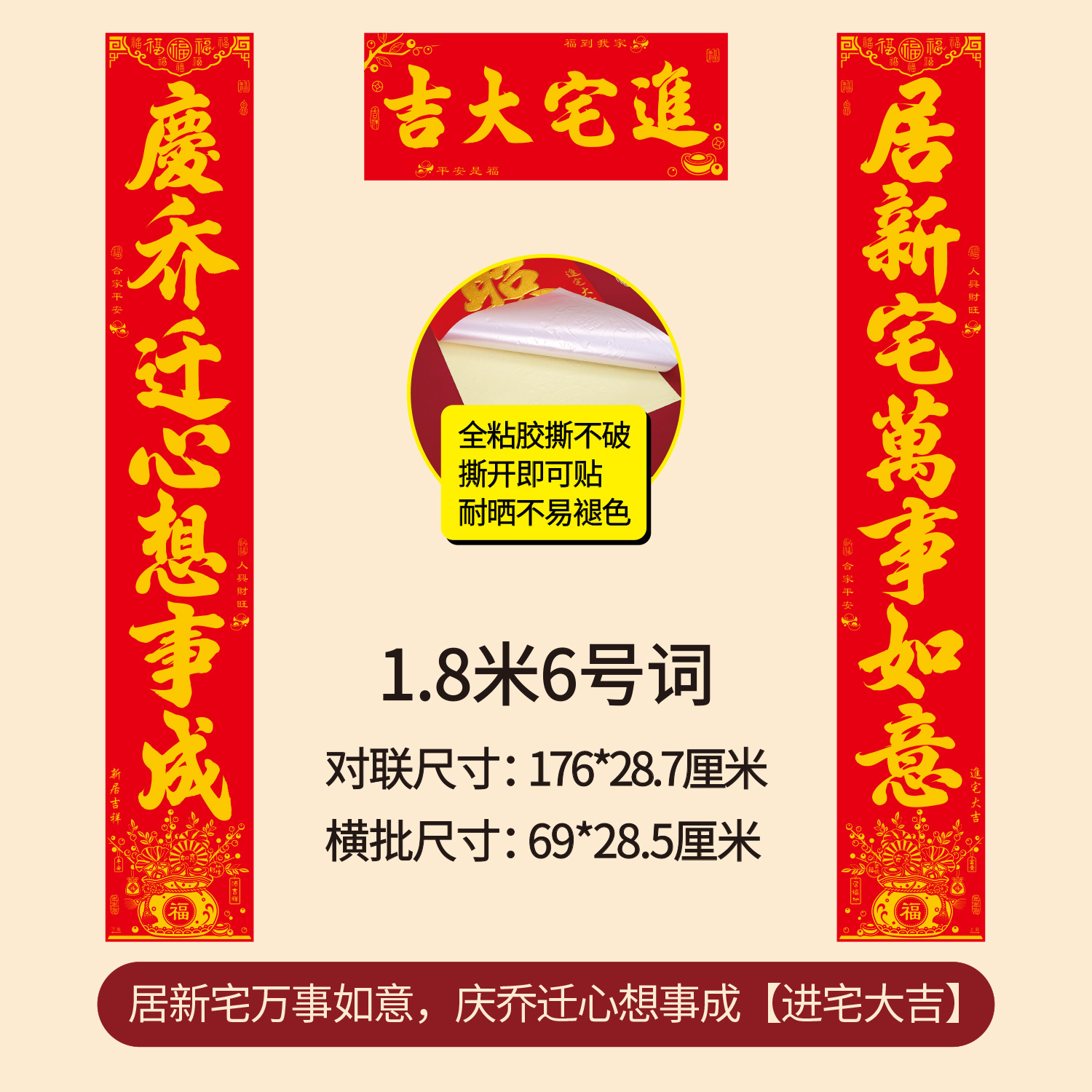 新款年年好烫金乔迁对联全背胶耐撕搬家新房耐晒植绒批发乔迁之喜