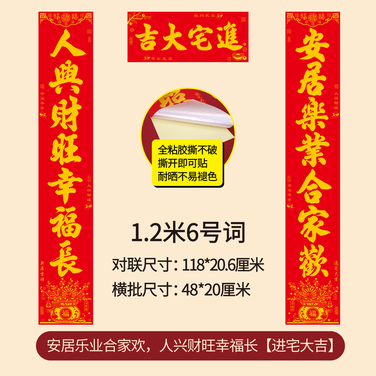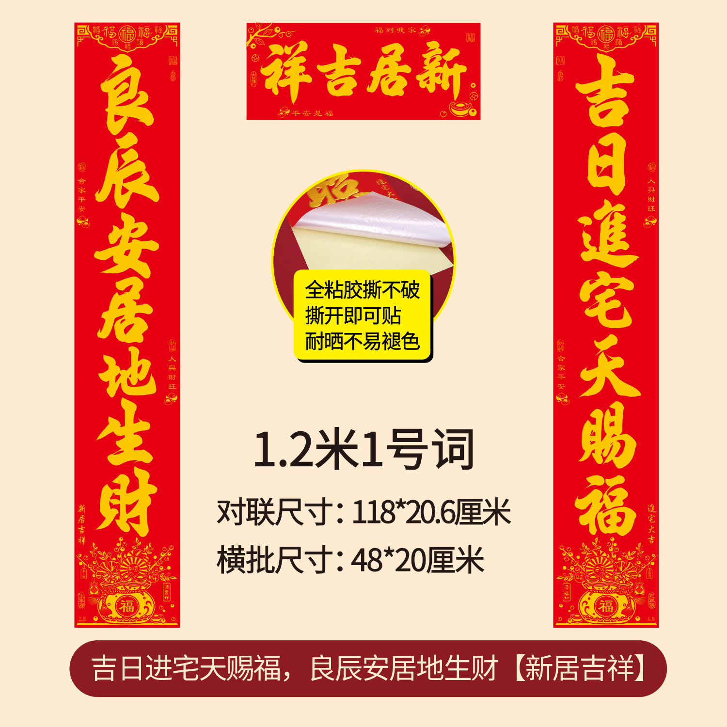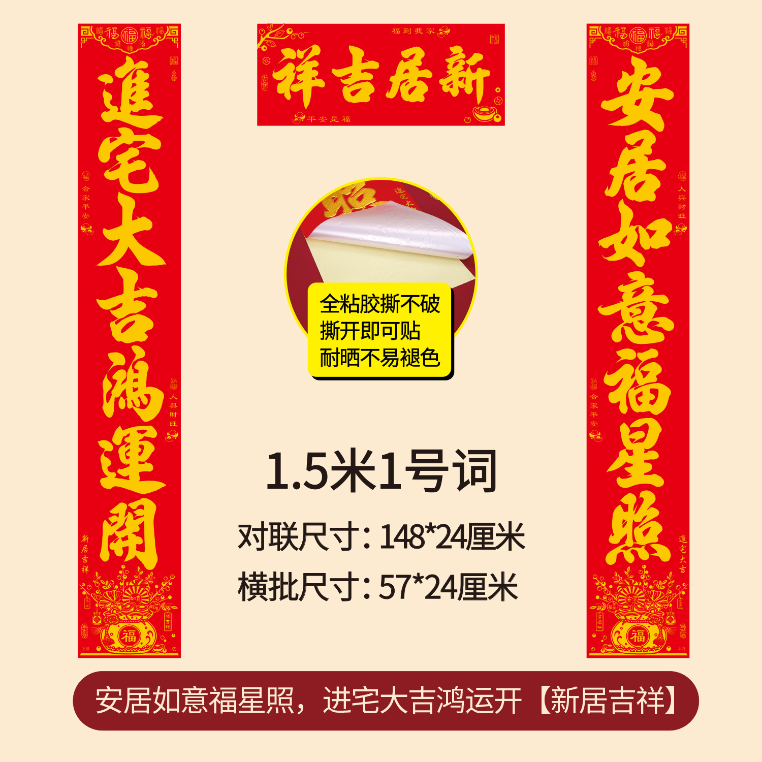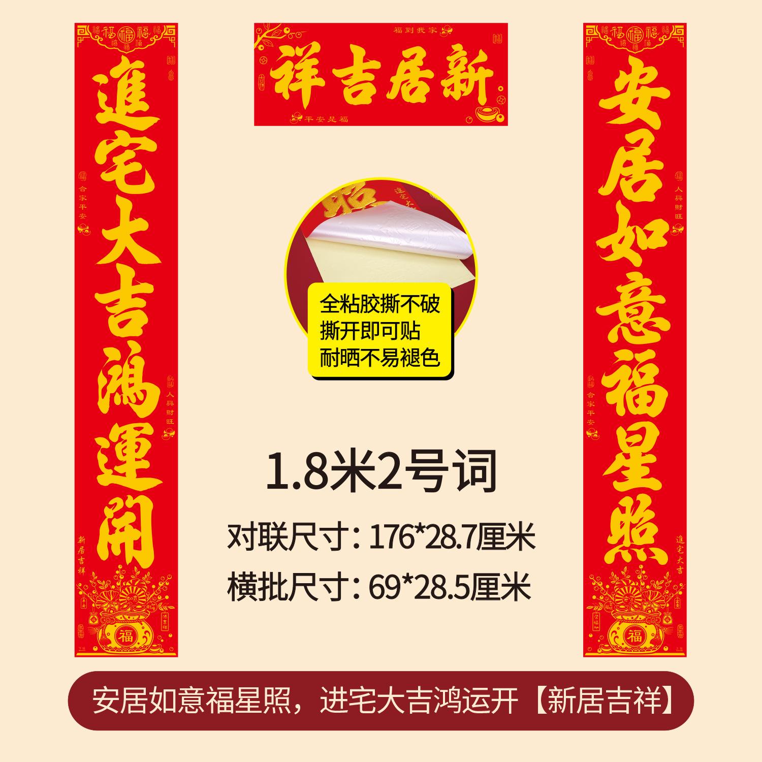 新款年年好烫金乔迁对联全背胶耐撕搬家新房耐晒植绒批发乔迁之喜