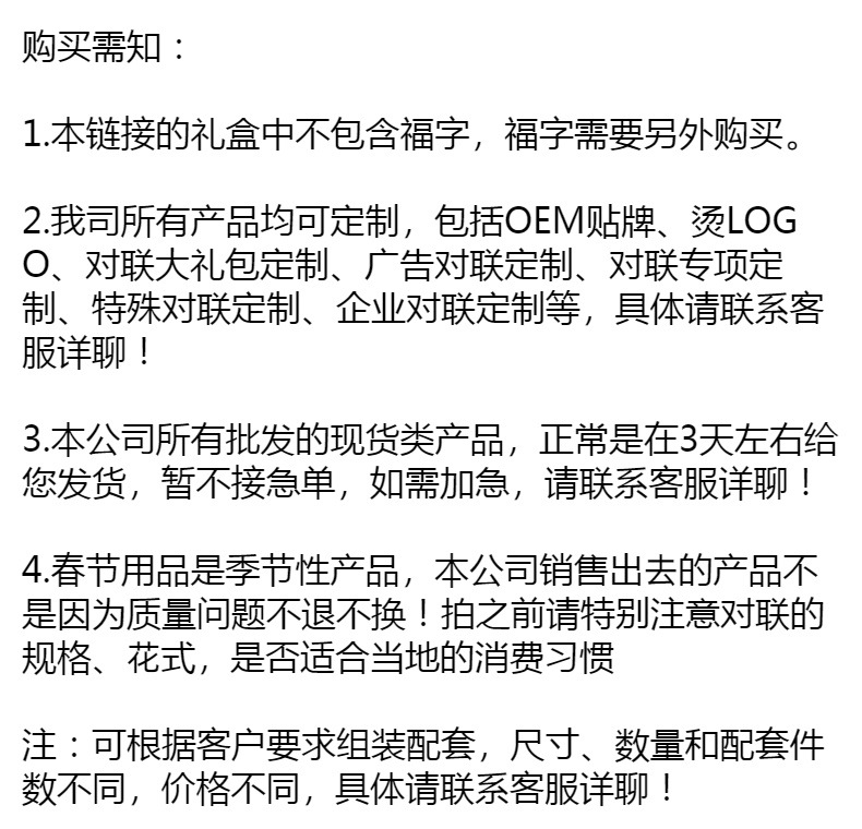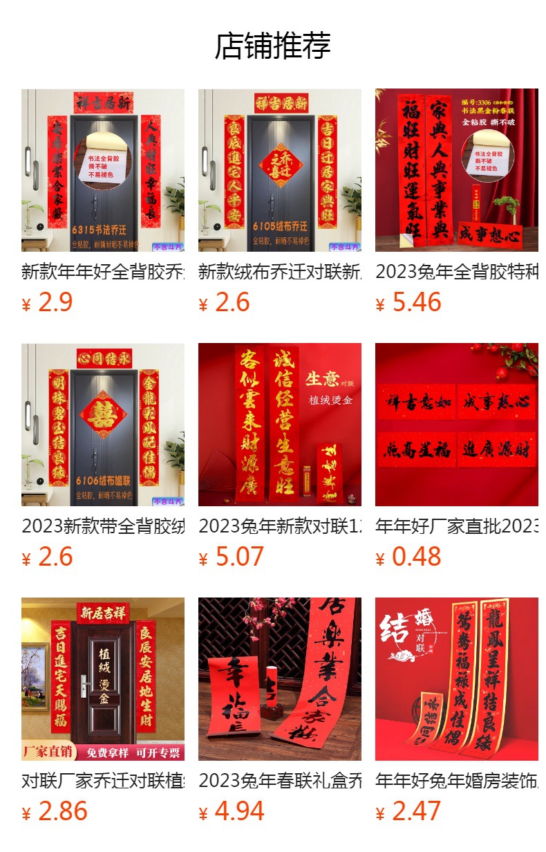 | 6207 wholesale couplet without blessing(6207整件批发 选购对联时不含福字) | USD $2.08 | 1 pay available |