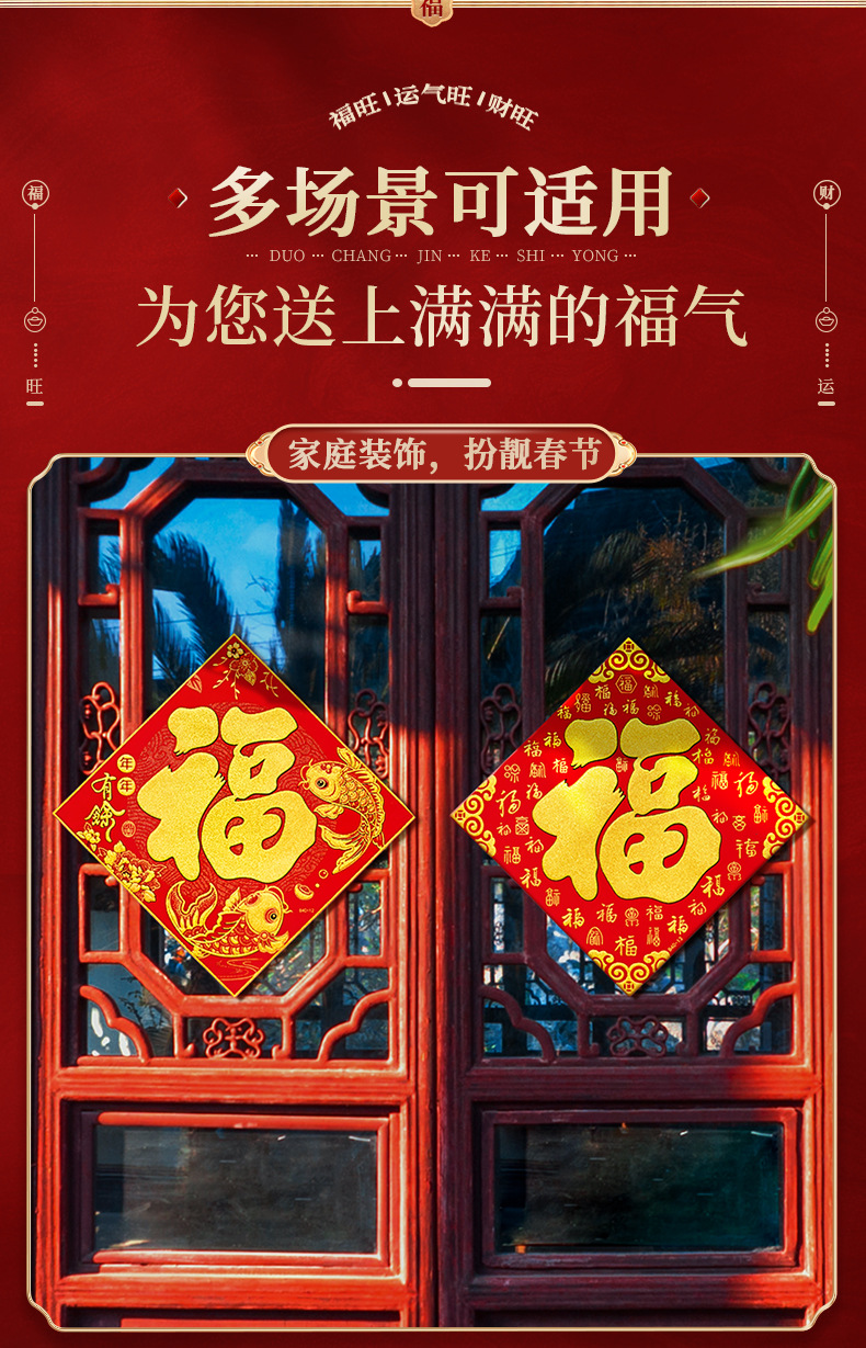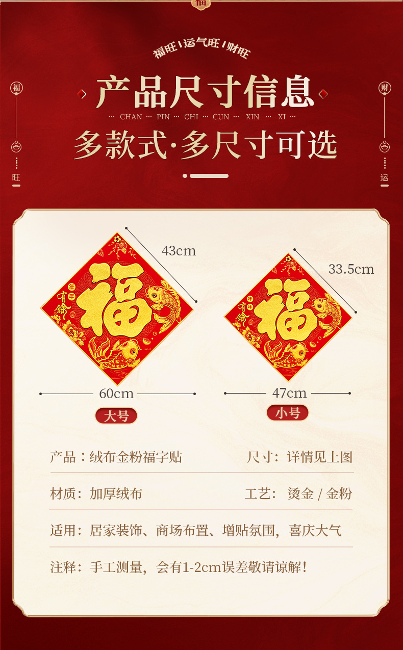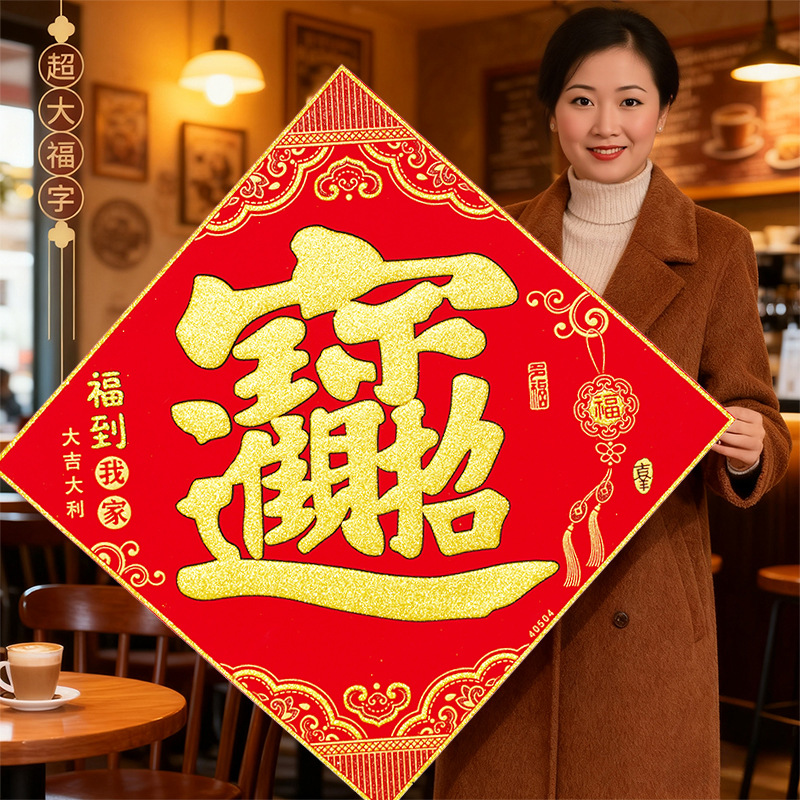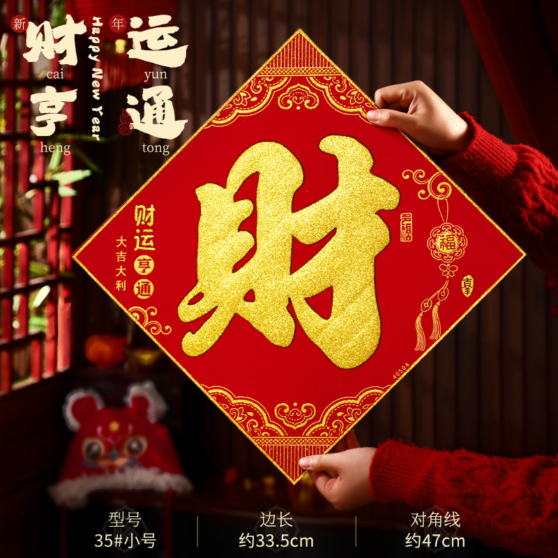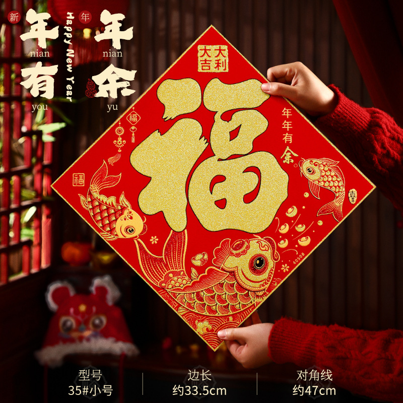 福字门贴2026马年新款绒布带背胶春节大门墙贴过年布置新年装饰品