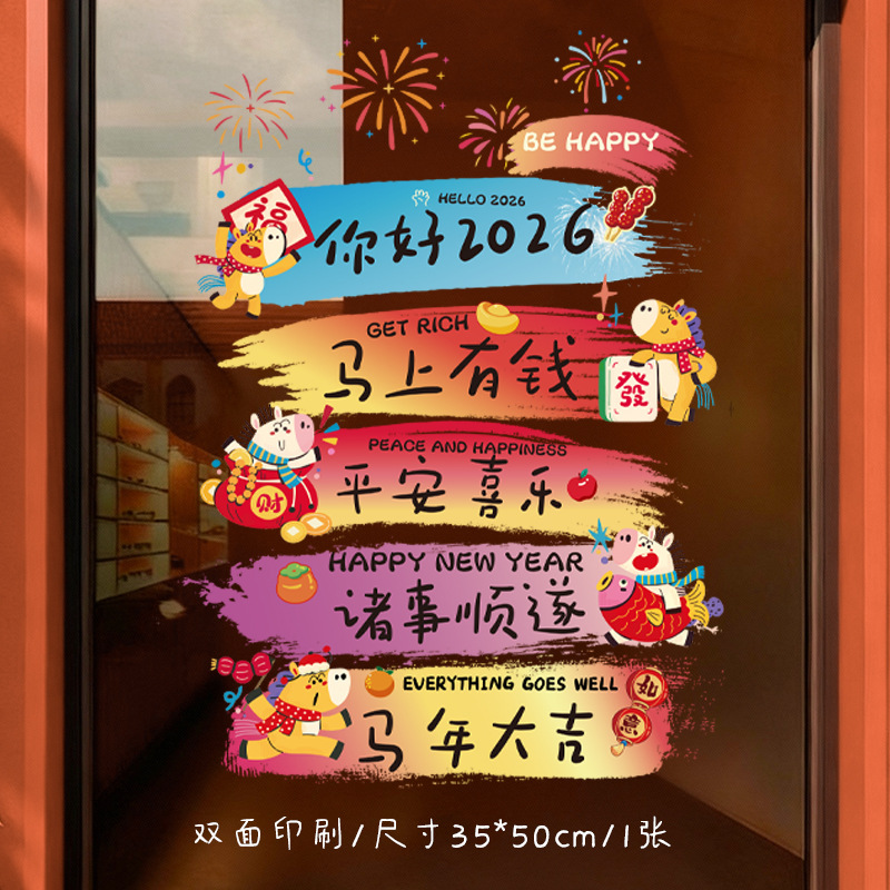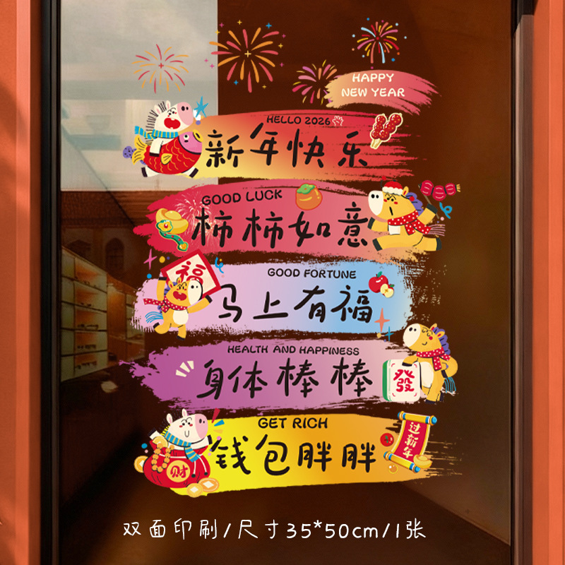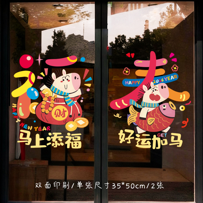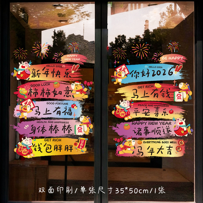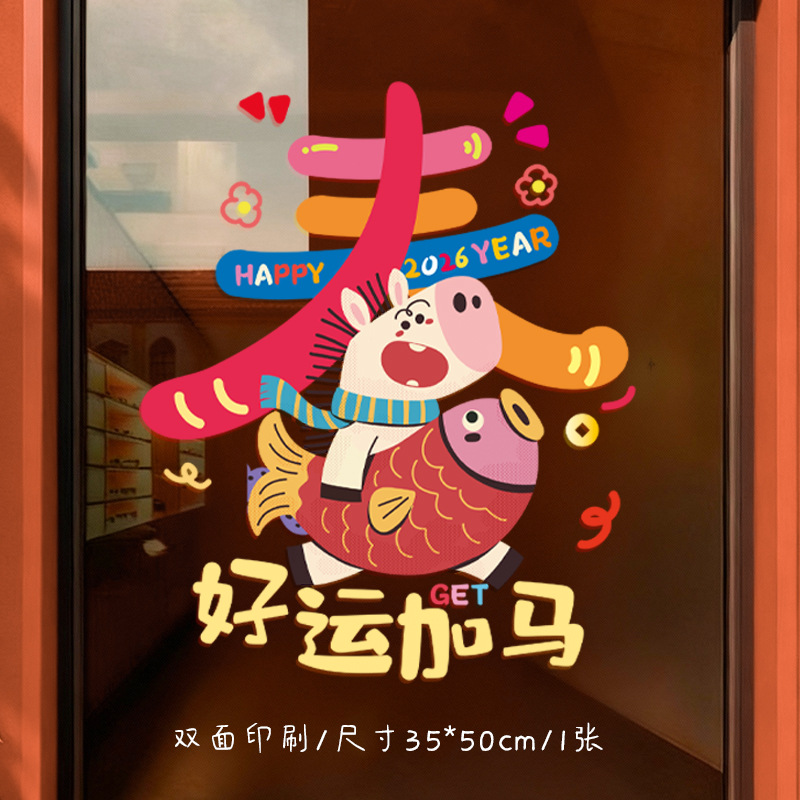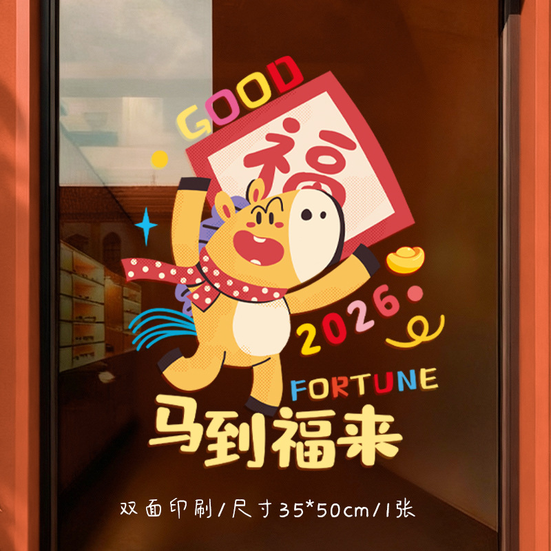 2026马年巴胺卡通窗花贴新年装饰静电贴窗贴窗花贴画春节过年布置