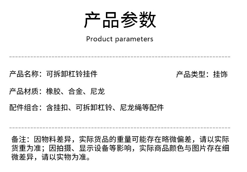 健身系列钥匙扣高颜值可拆装哑铃小挂件情侣随身书包挂件毕业礼物