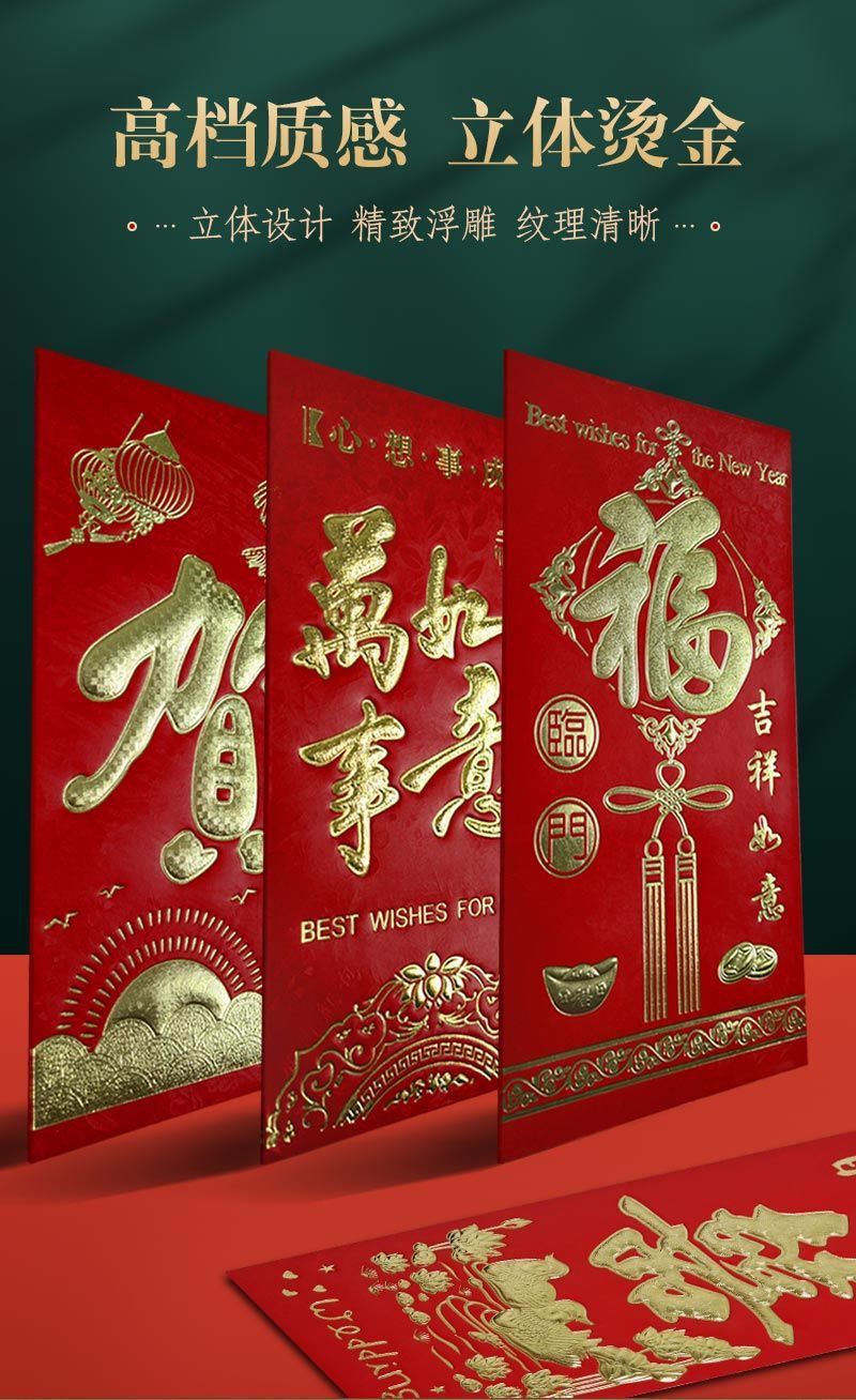 厂家批发红包袋硬卡纸烫金千元大号红包大吉大利是封通用小号新款