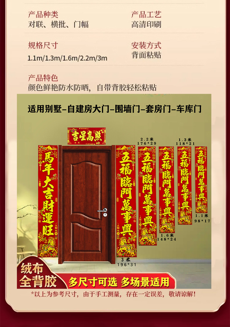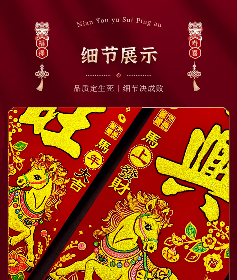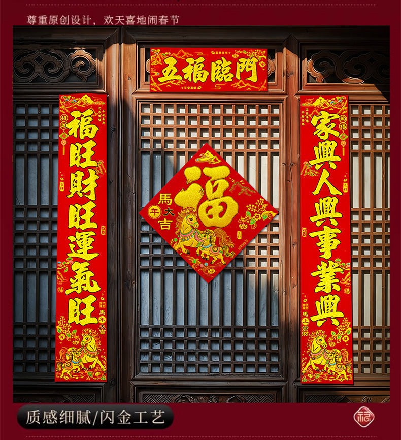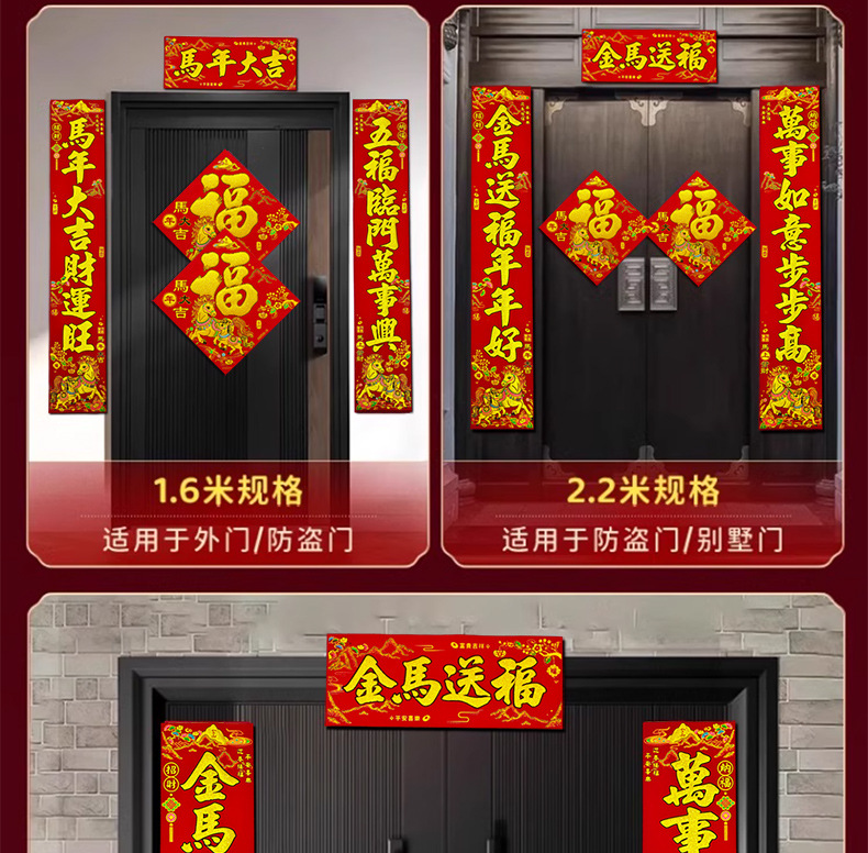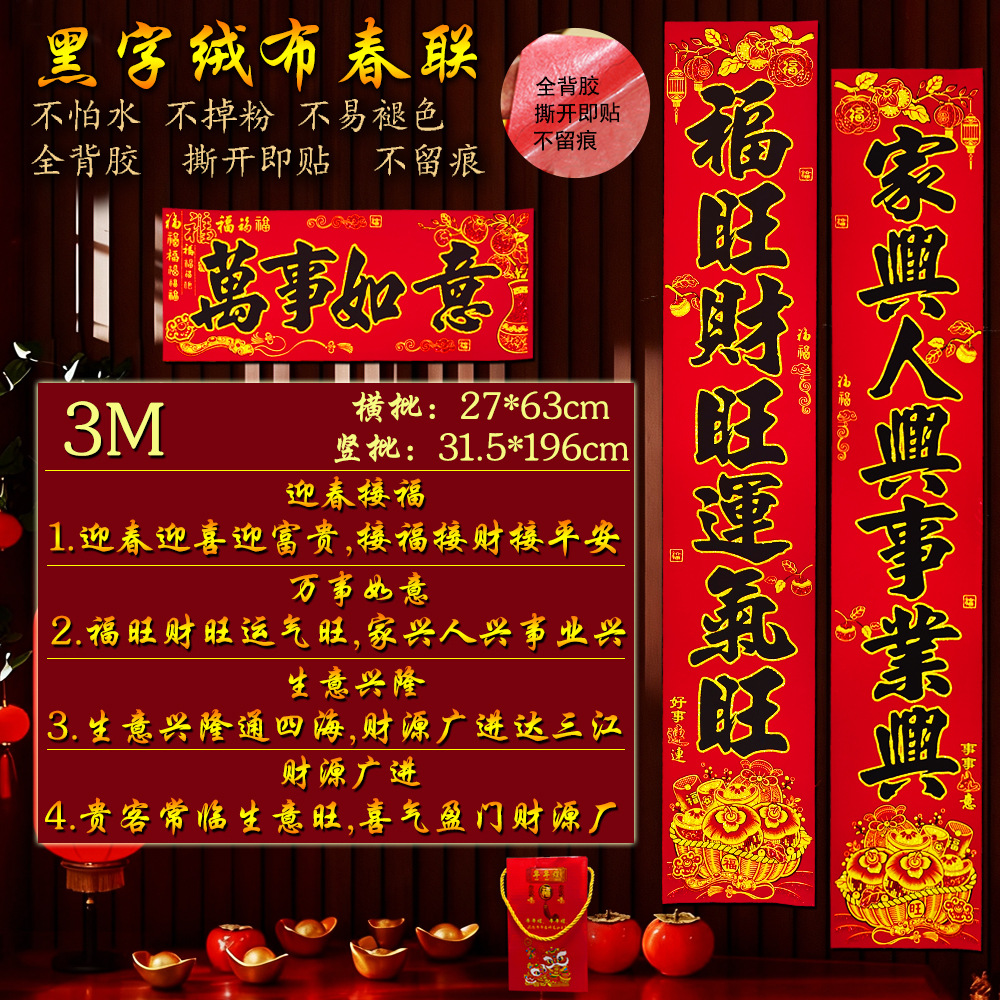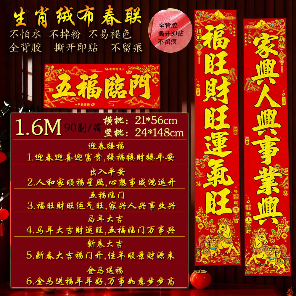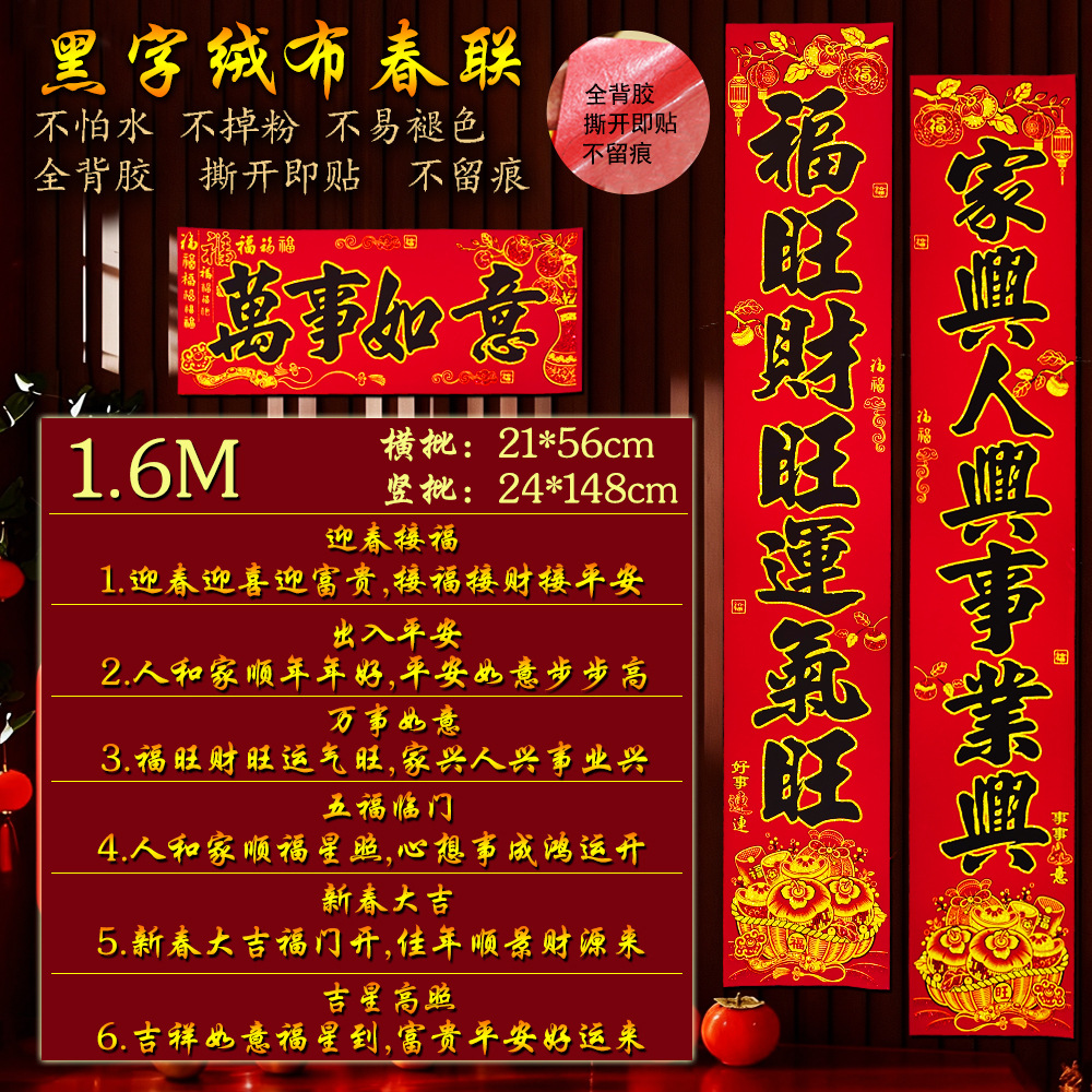 | 2026新款绒布春联-全背胶 | USD $2.4 | 170 pair available |