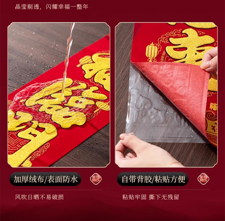 | 2026新款绒布春联-全背胶 | USD $0.4 | 1764 pair available |