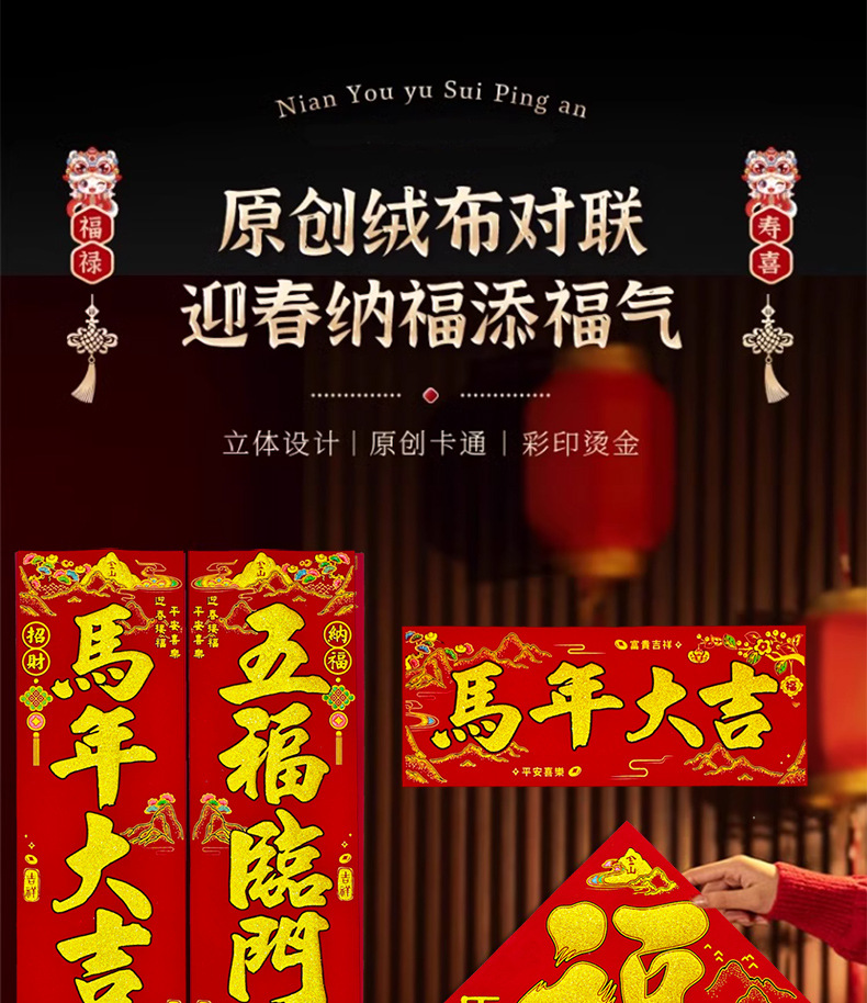 | 2026新款绒布春联-全背胶 | USD $5.1 | 1 pair available |