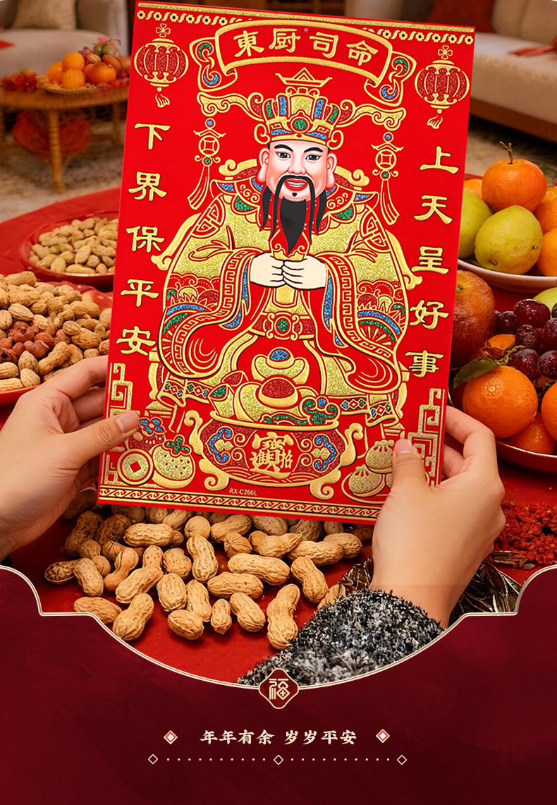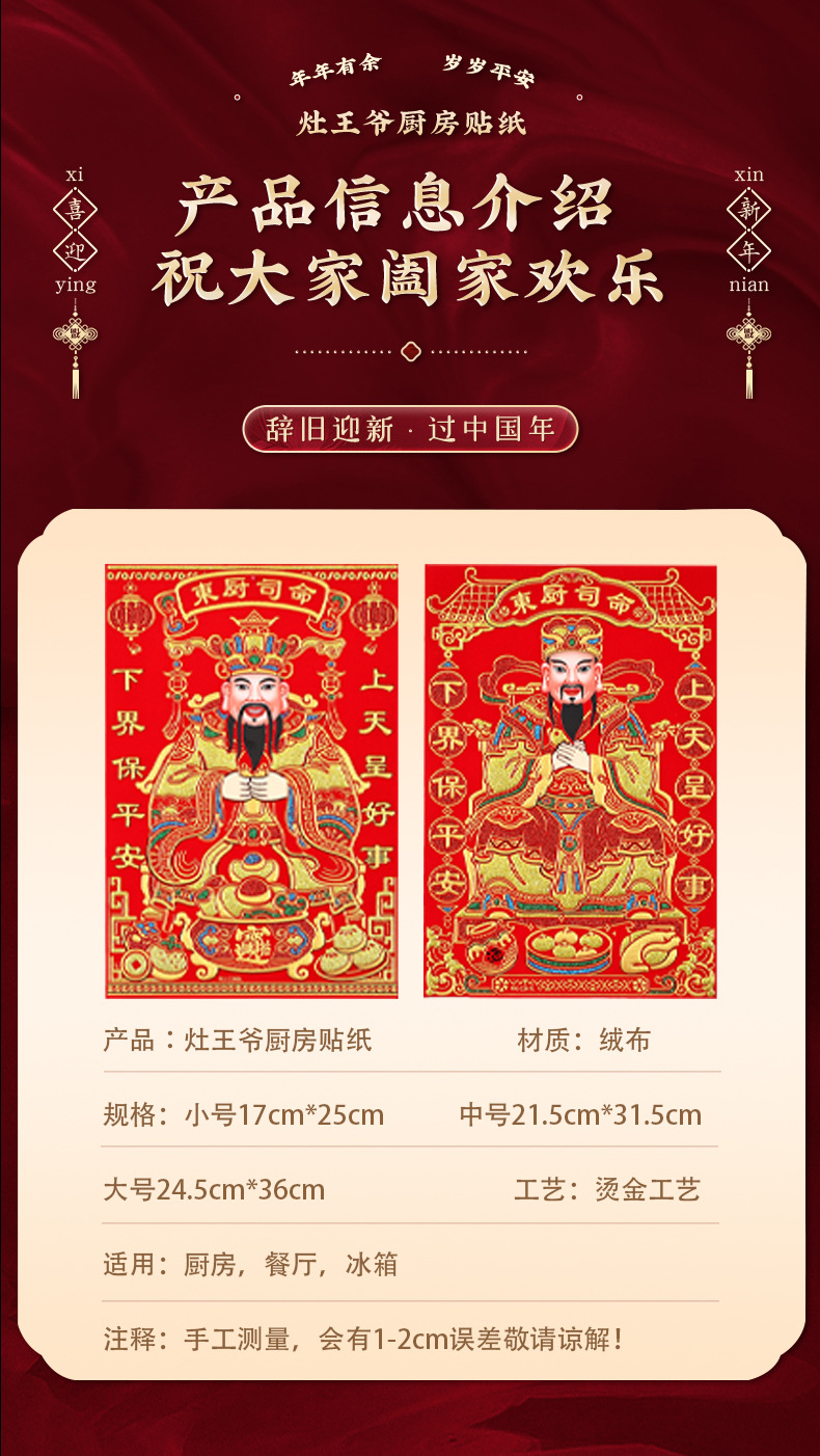 2026新年灶王爷厨房神像东厨司命年画灶君神像年画绒布自粘神位