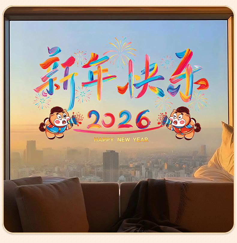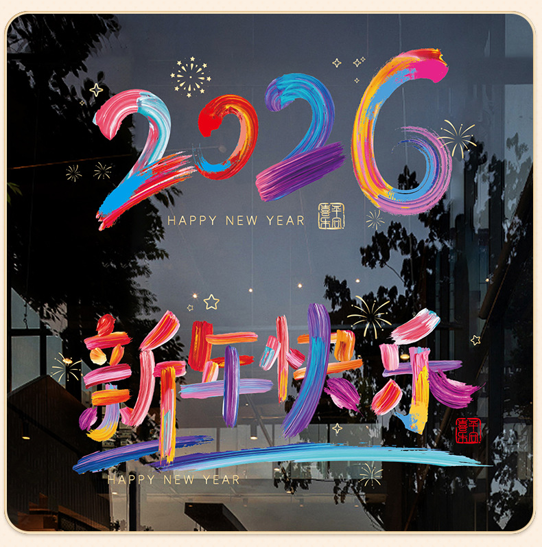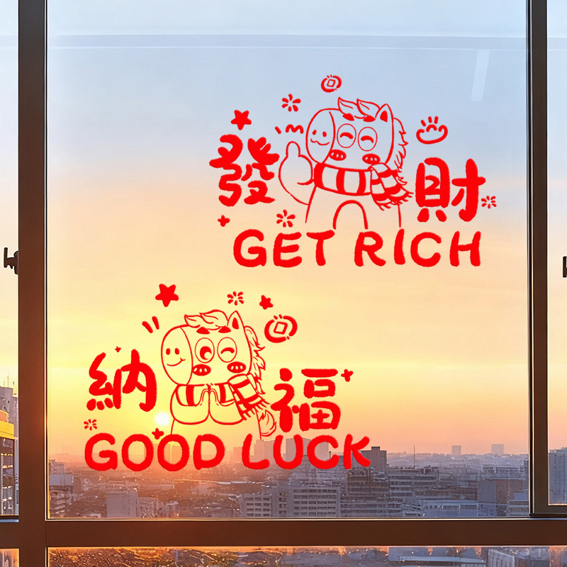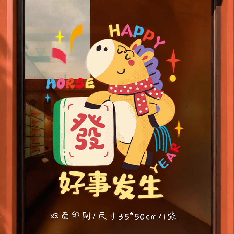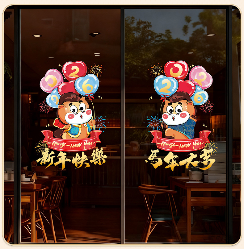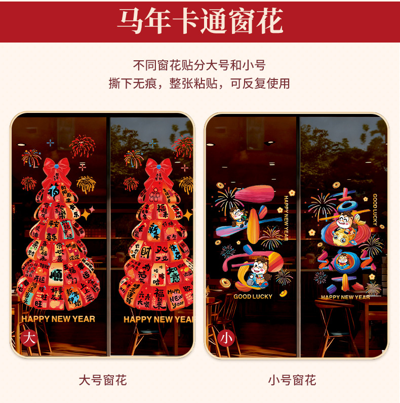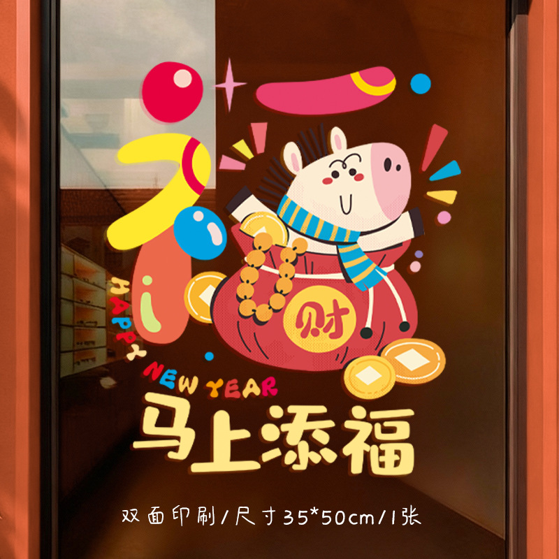 新年马年装饰贴纸2026春节元旦场景布置过年玻璃门贴静电贴福字贴
