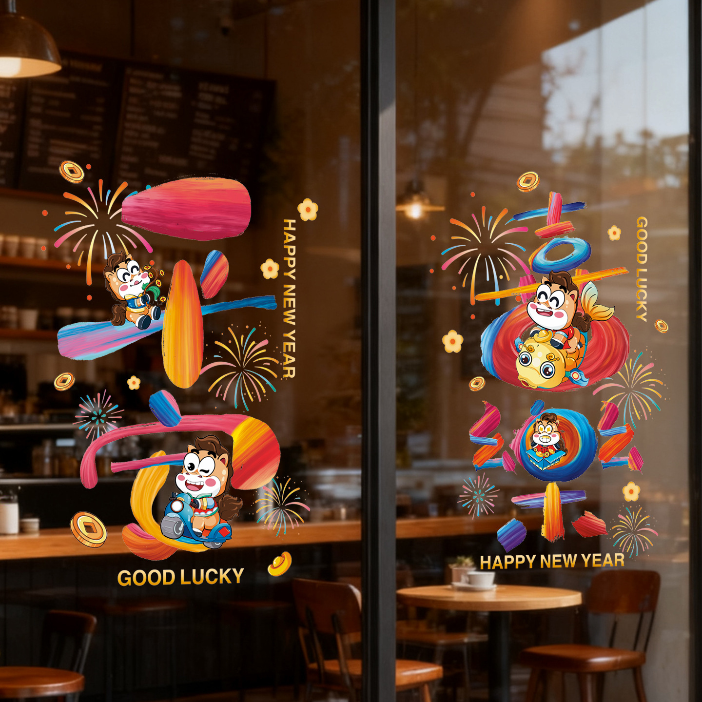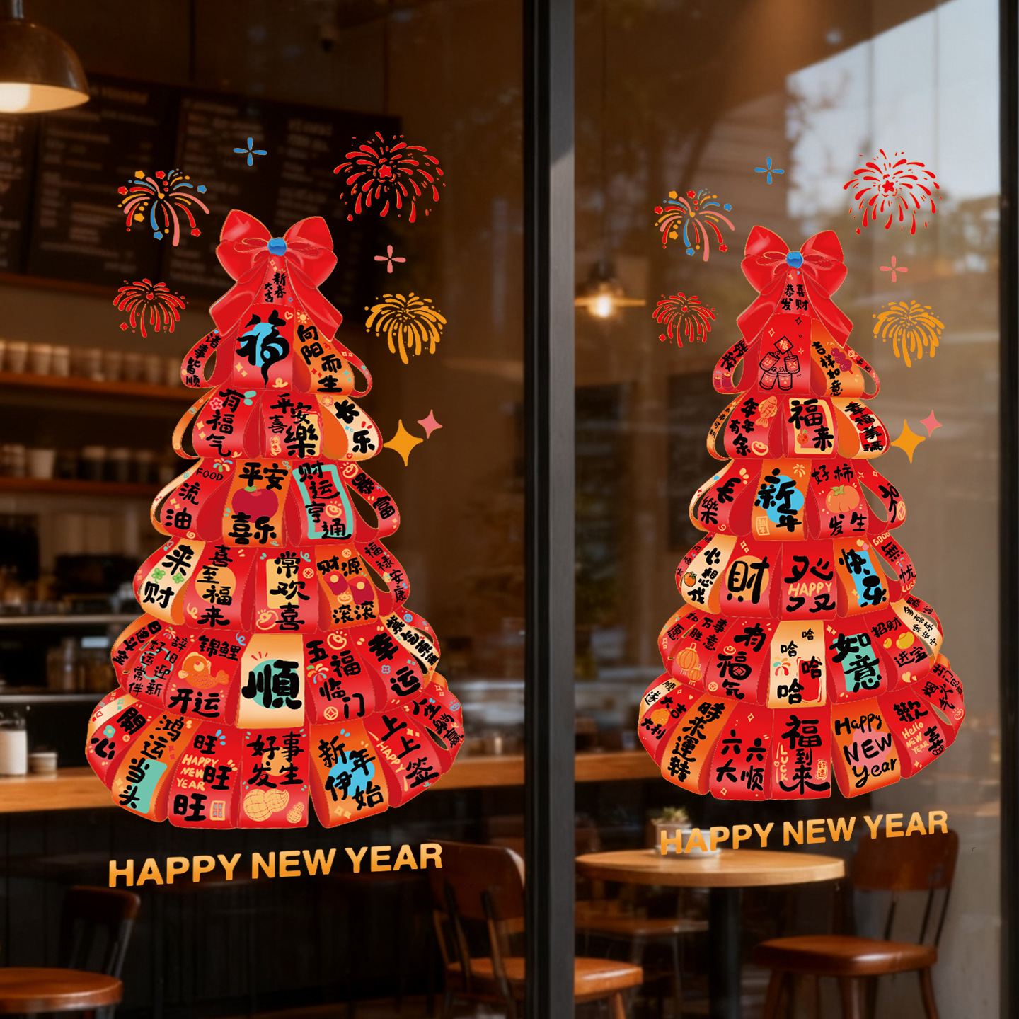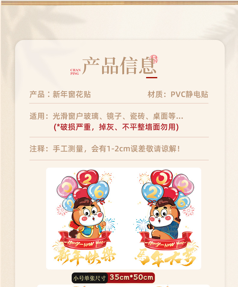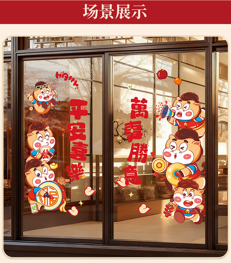新年马年装饰贴纸2026春节元旦场景布置过年玻璃门贴静电贴福字贴