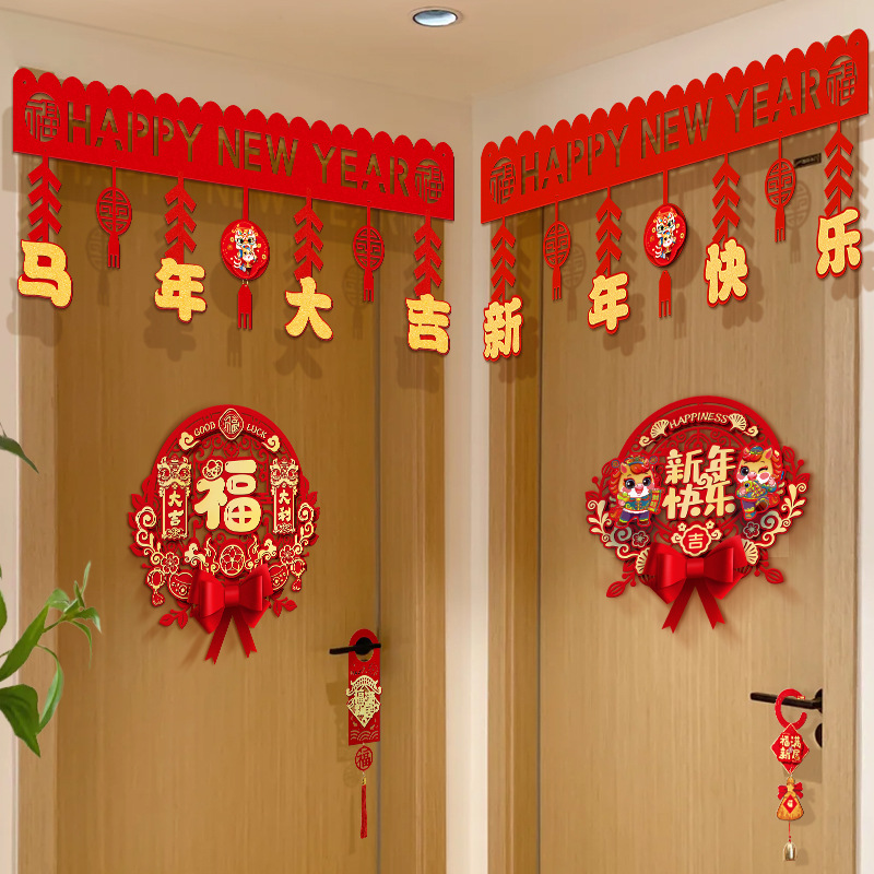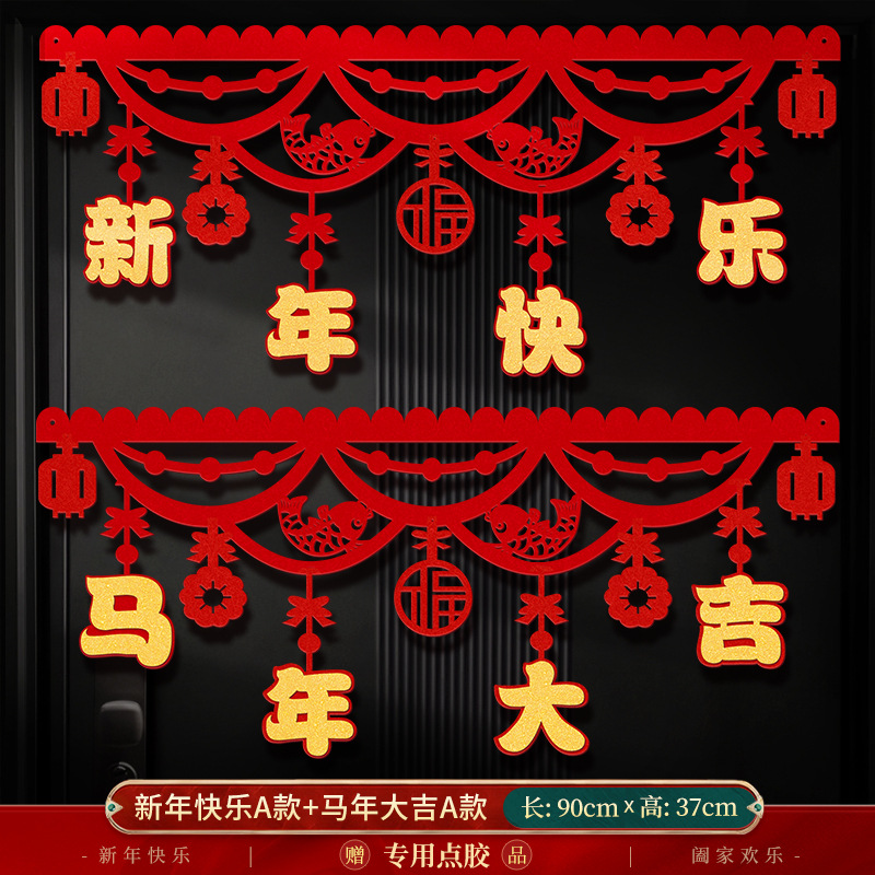 2026马年春节过新年装饰门挂件横彩酒店商场橱窗场景布置用品挂饰