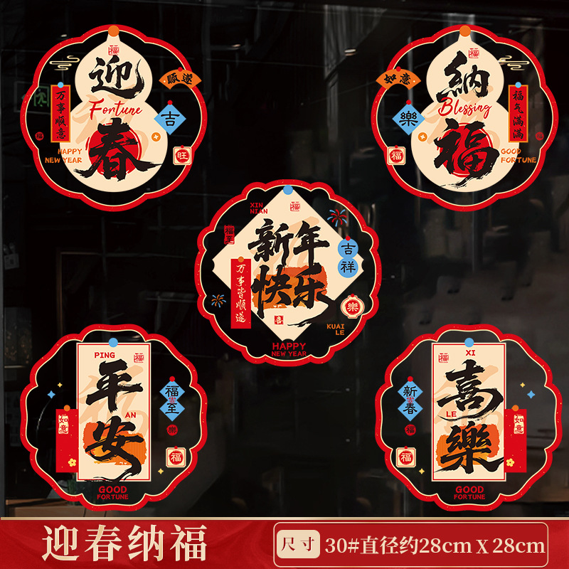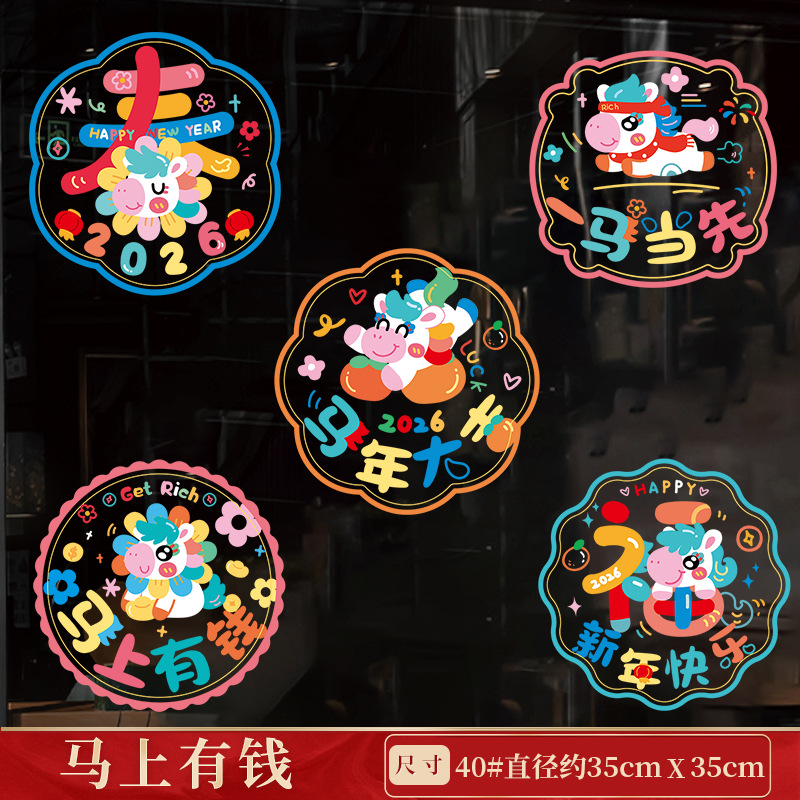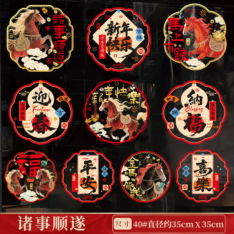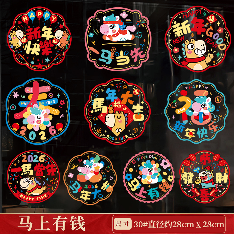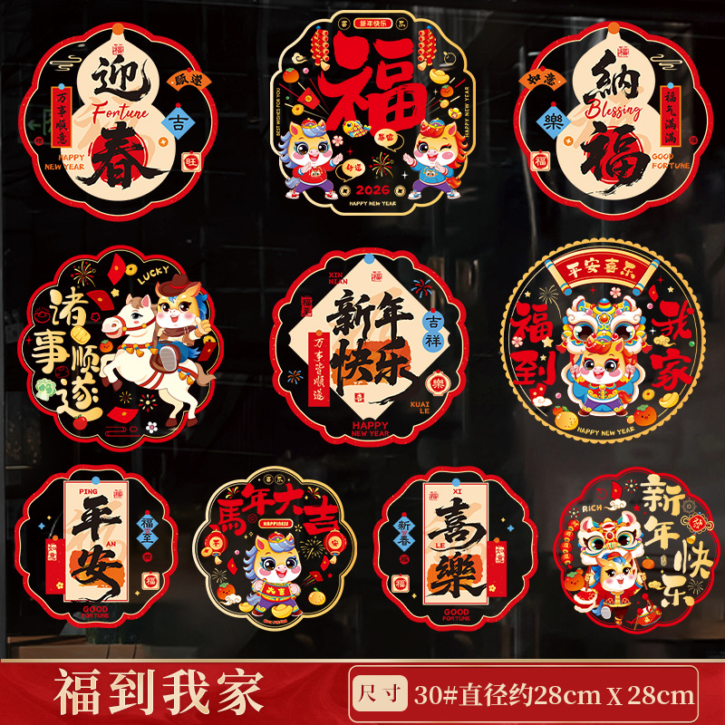 2026马年新年春节装饰窗贴玻璃门静电贴窗花贴喜庆元旦过年布置