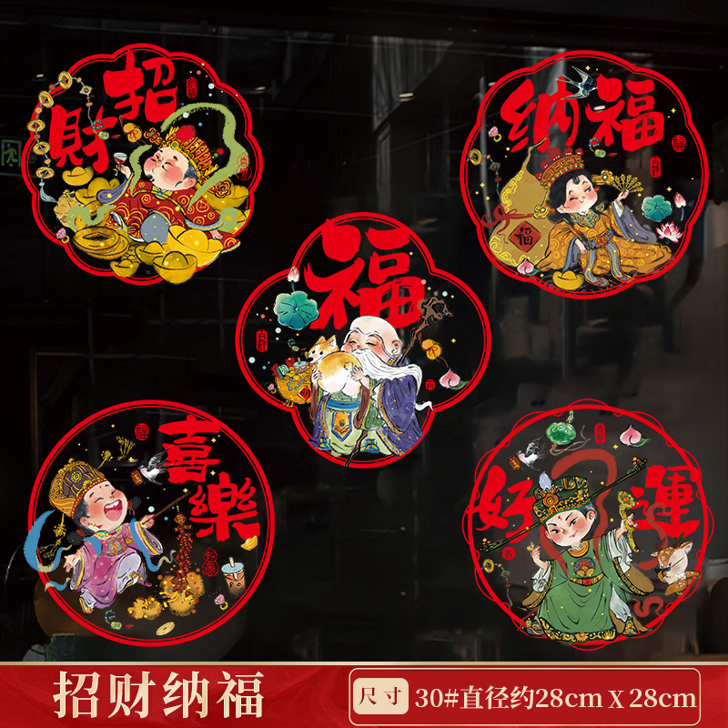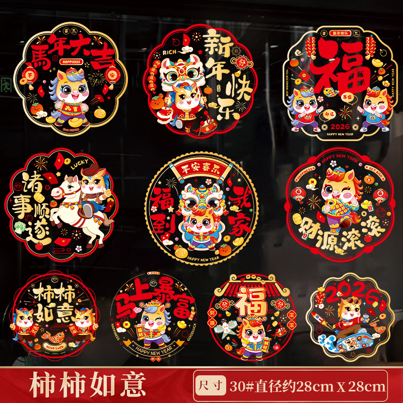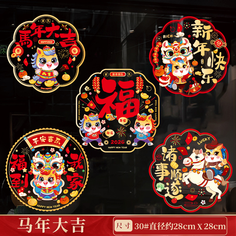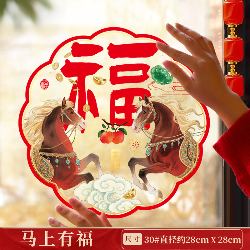 新年窗花2026马年窗贴福字门贴家用静电玻璃贴纸墙贴过年装饰剪纸