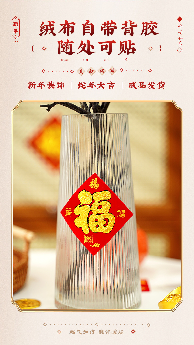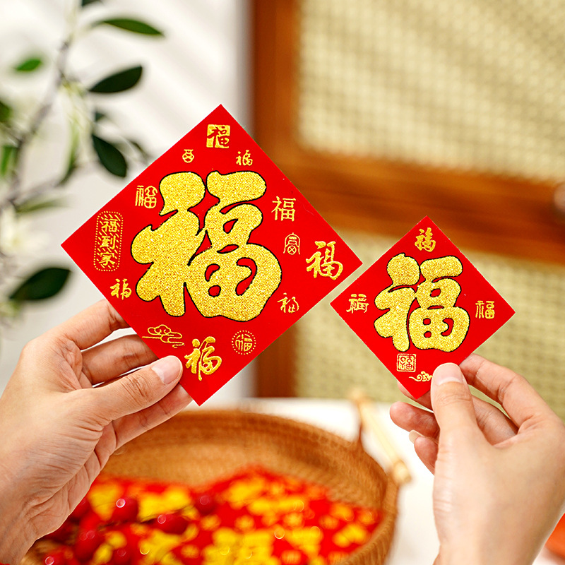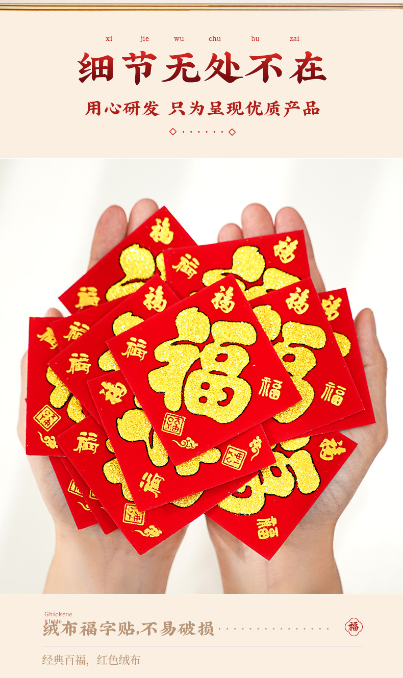 绒布迷你烫金小福字贴自粘背胶2026新款门贴春节装饰新年墙贴纸