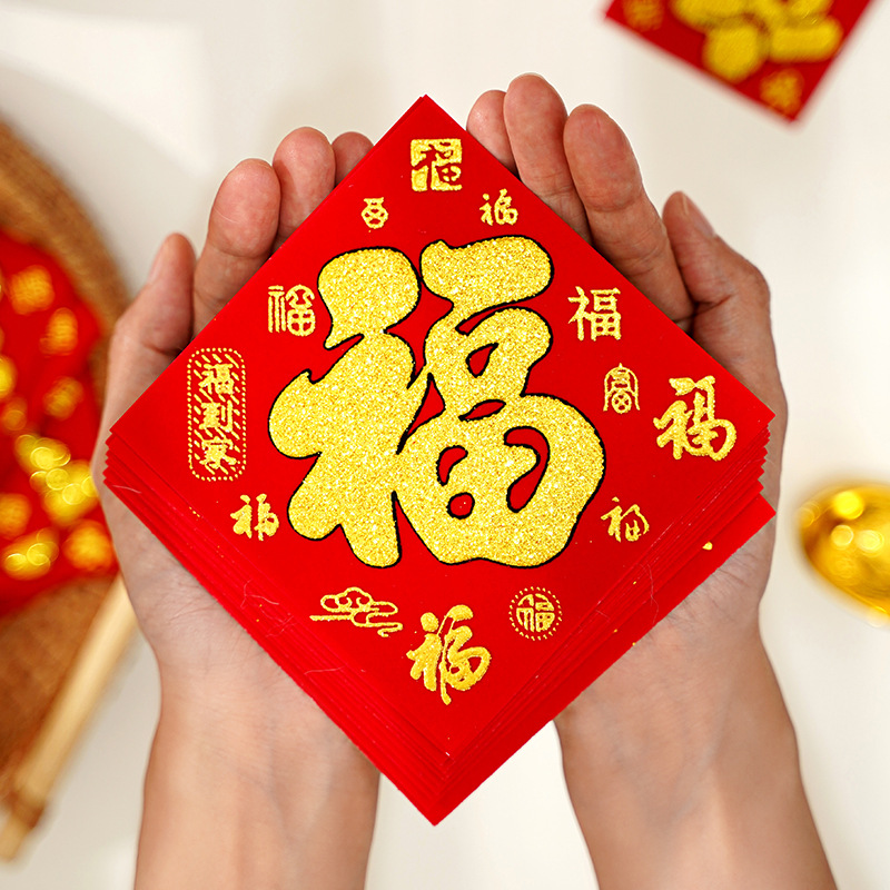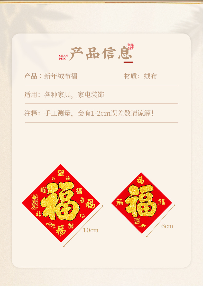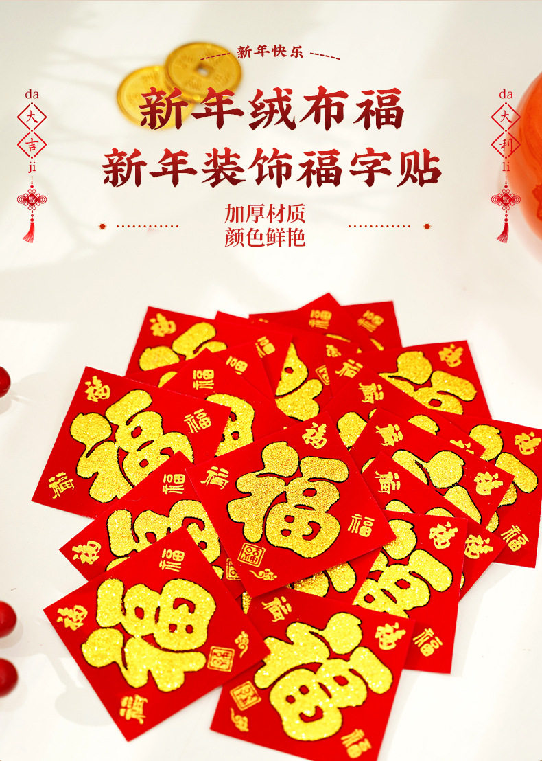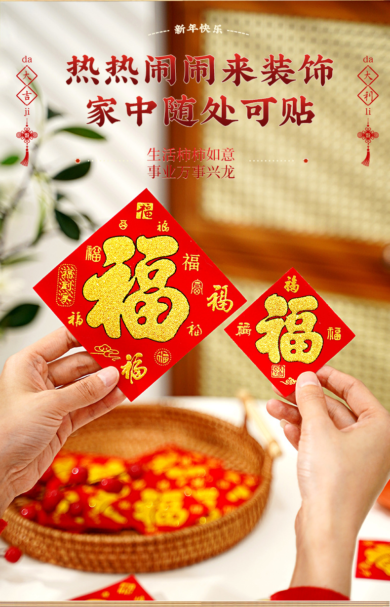 绒布迷你烫金小福字贴自粘背胶2026新款门贴春节装饰新年墙贴纸
