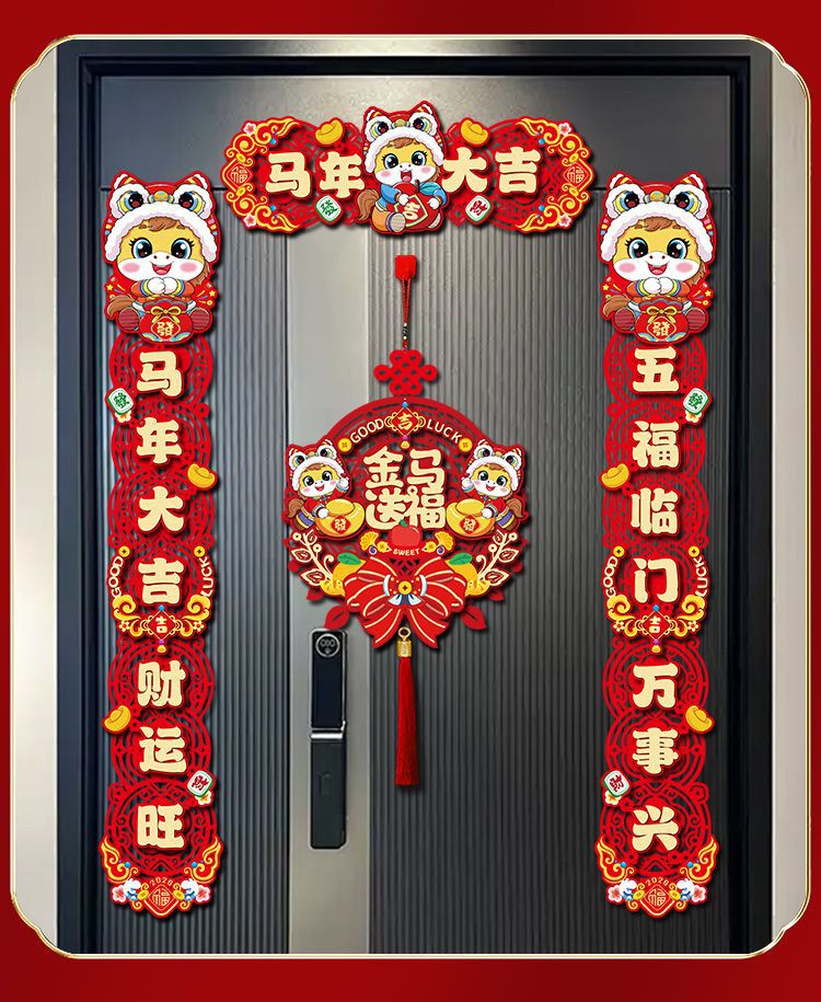 直播爆款毛毡卡通布立体磁吸对联2026年新款植绒春联过年摆摊年货
