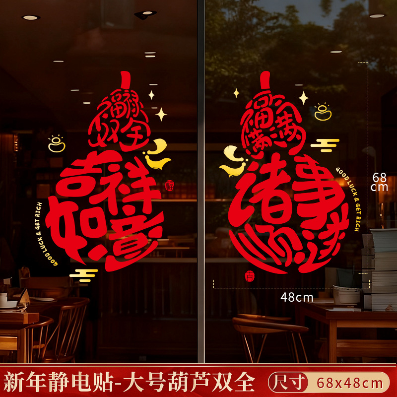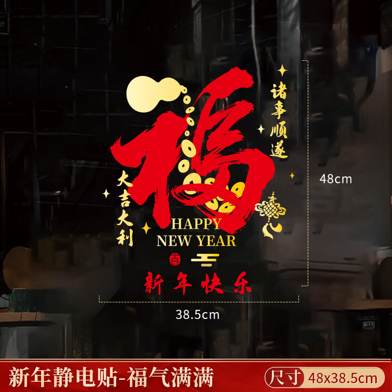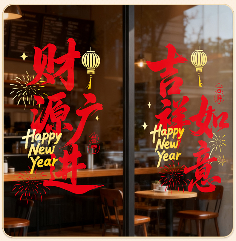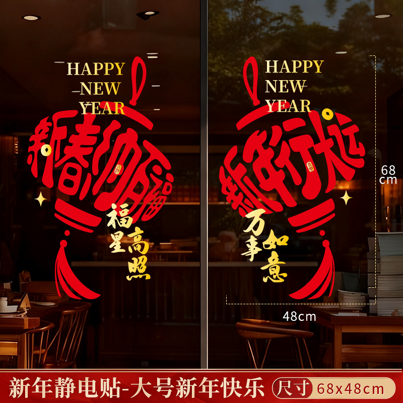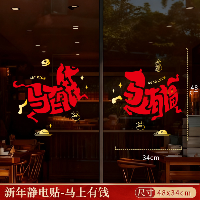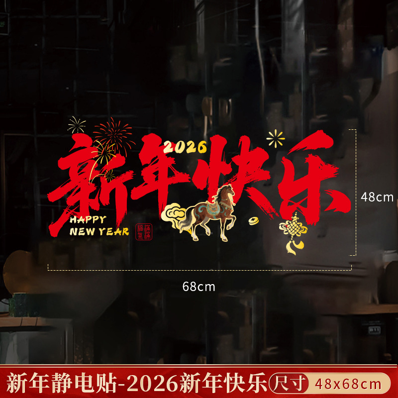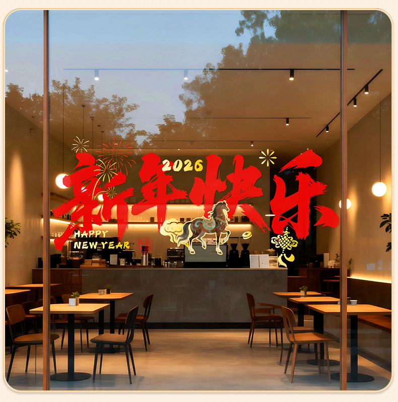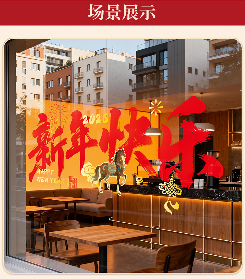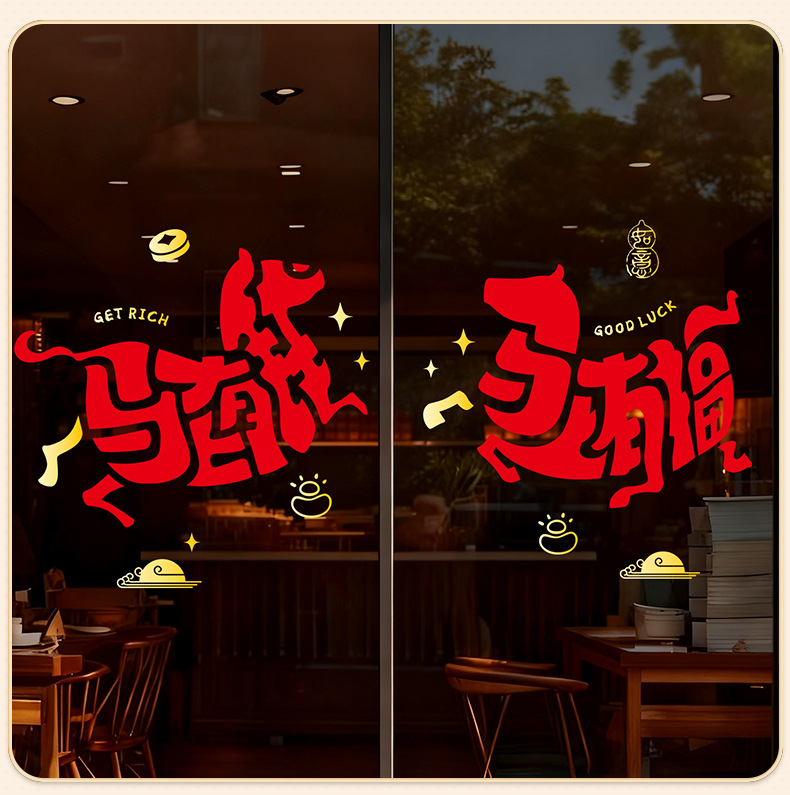 新年马年装饰氛围布置窗花贴窗贴春节装扮橱窗静电玻璃门贴纸2026