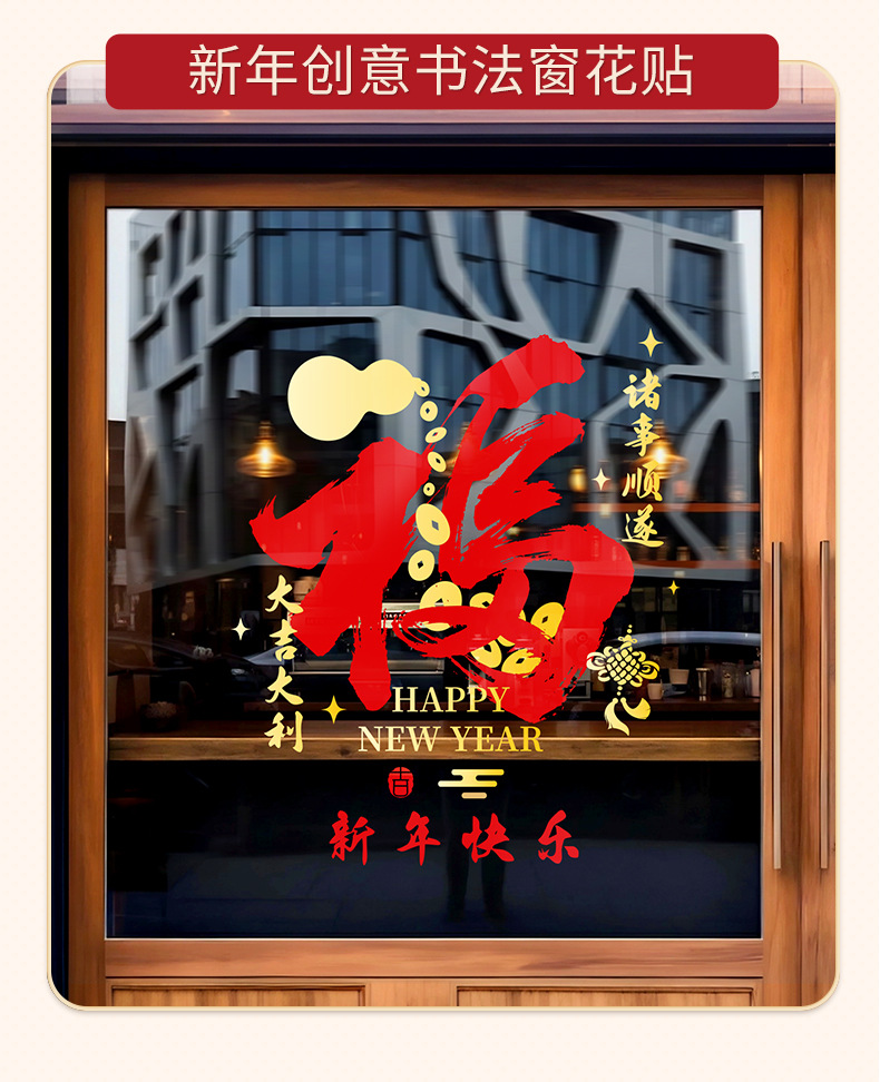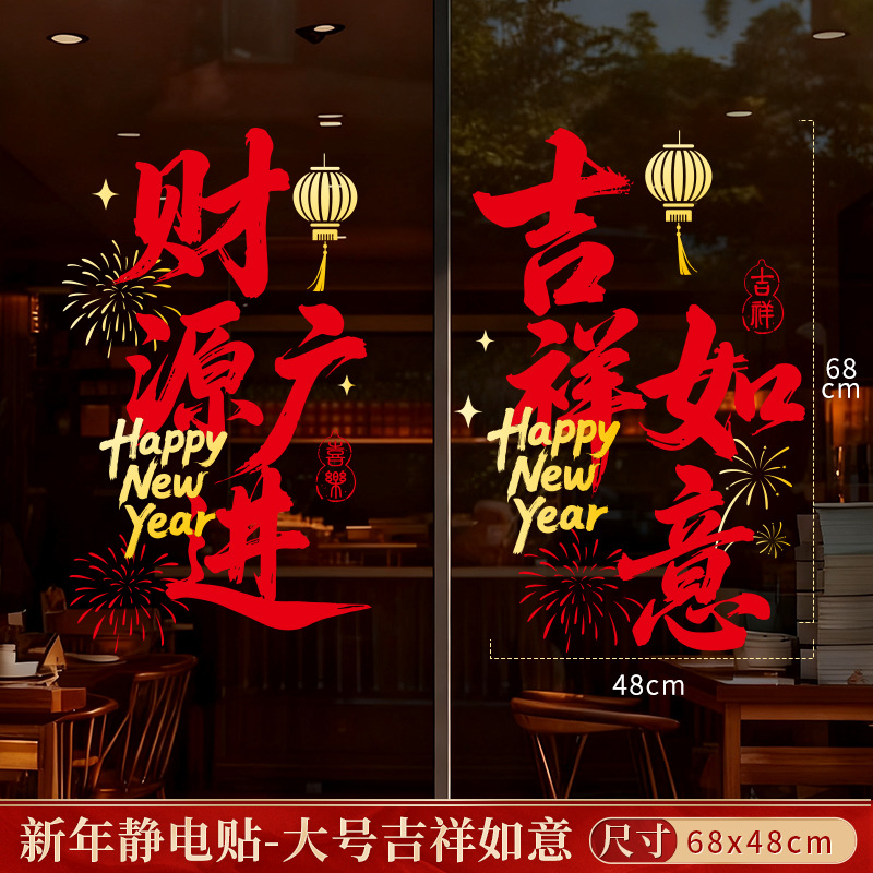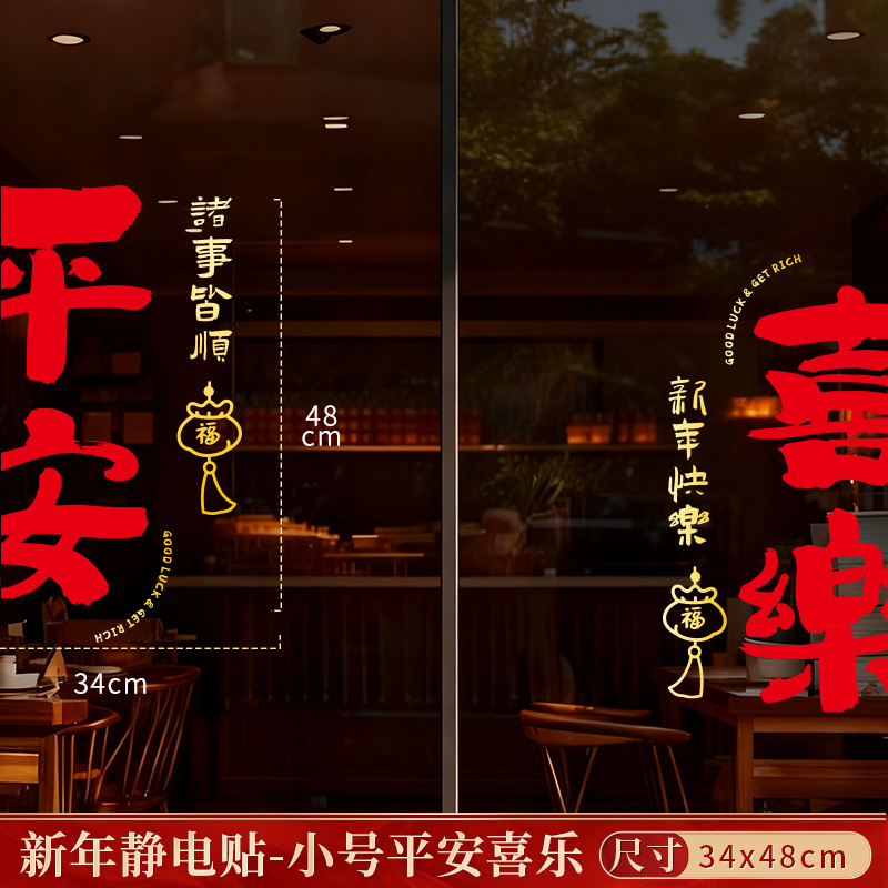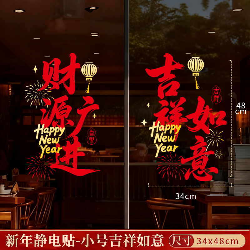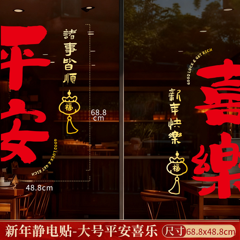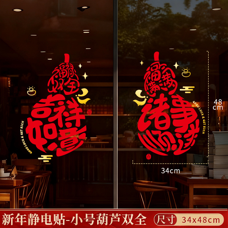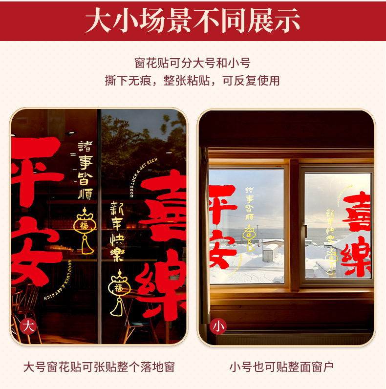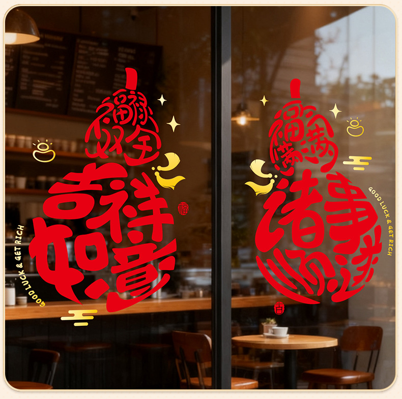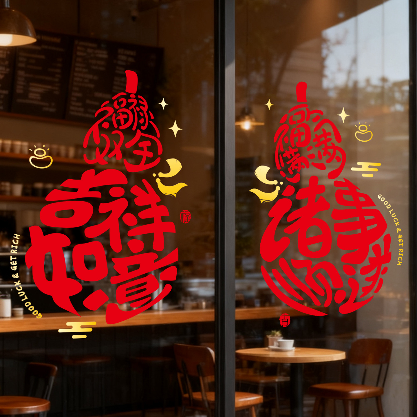 新年马年装饰氛围布置窗花贴窗贴春节装扮橱窗静电玻璃门贴纸2026